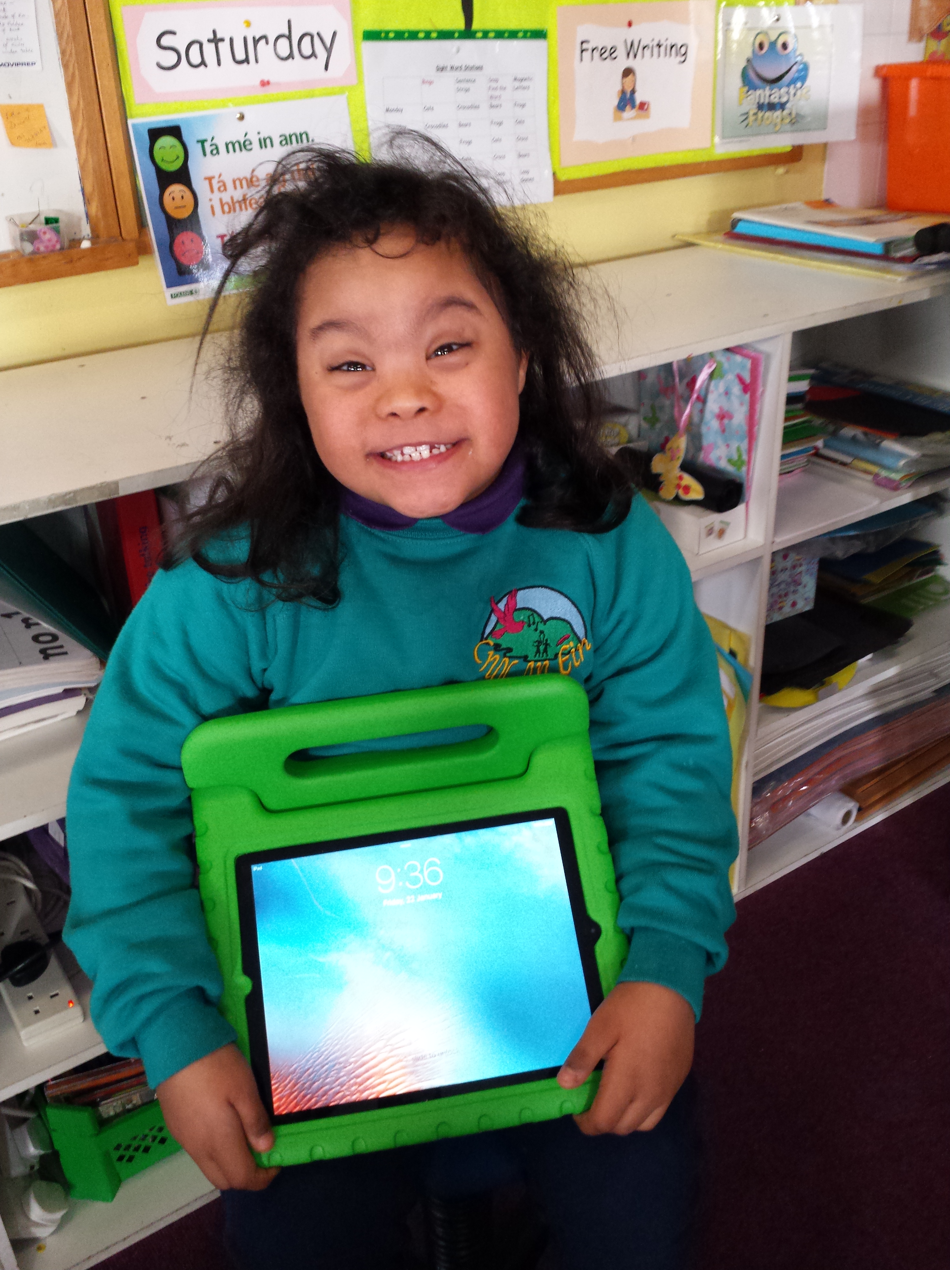 Thanks to all the kind boys and girls and mams and dads who collected the mobile phones so I could get an iPad. It will help me to learn lots of new things 🙂