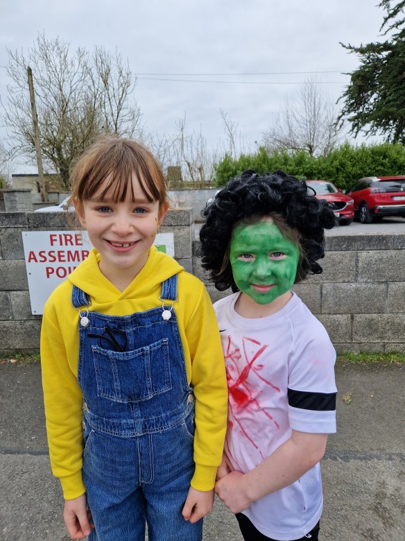 On March 3rd, our school had world book day. Everyone dressed up as a character from a book such as soccer players, Shrek, Puss in Boots, the Tin man Alice in Wonderland and Harry Potter. Anne dressed up as Wednesday, Amy, and Tina dressed up as the Trunchbull and Mr Curran dressed up as the Mad Hatter. On both lunch breaks, we had a disco. All the songs we played were from movies and everyone did a lot of dancing. Everybody got a chance to listen to a song they liked.