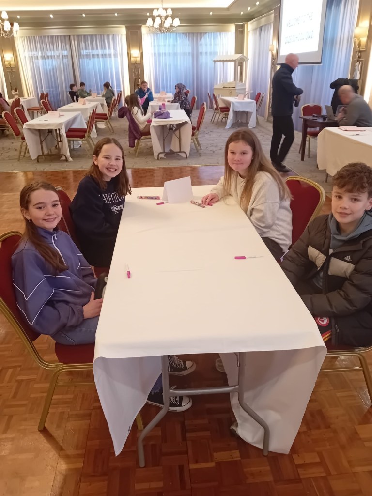 On Friday the 7th of February a junior quiz team and a senior quiz team from the school travelled to the Inn at Dromoland for the Credit Union Schools Quiz competition. The senior team was made up of Abi, Aoife, Eve and James. The junior team was made up of Ciara, Katelyn, Oisín, and Adam. We arrived at around half five and found our tables for our teams. Colm came with us on the night and our families came along too to support us. They gave us mentos before the quiz began to get our brains going! There were twelve rounds in the quiz in total, and six questions per round. The questions were about a lot of topics, some about sport and a lot of general knowledge ones also. We noticed that the questions became more challenging as the rounds went on!
