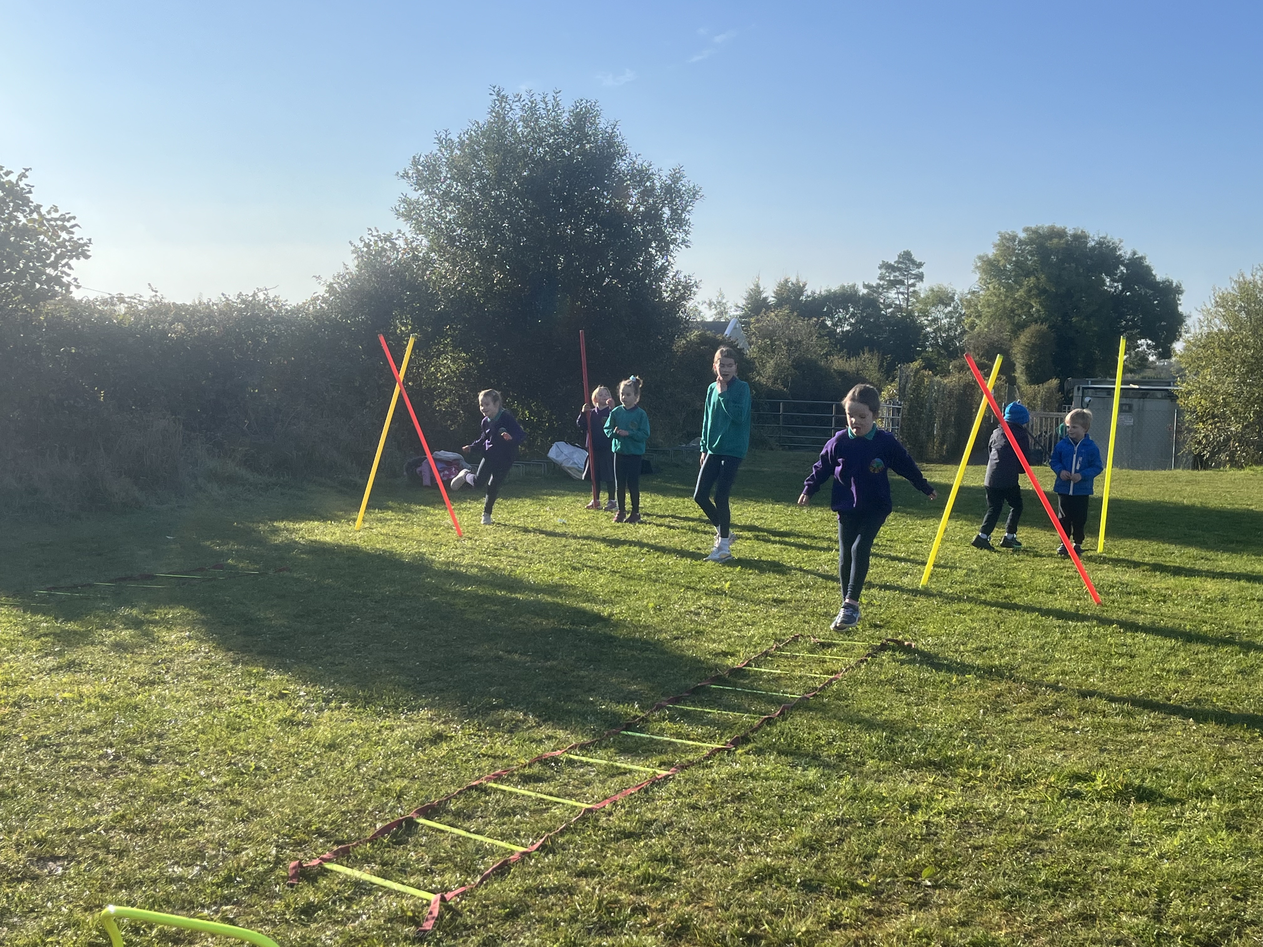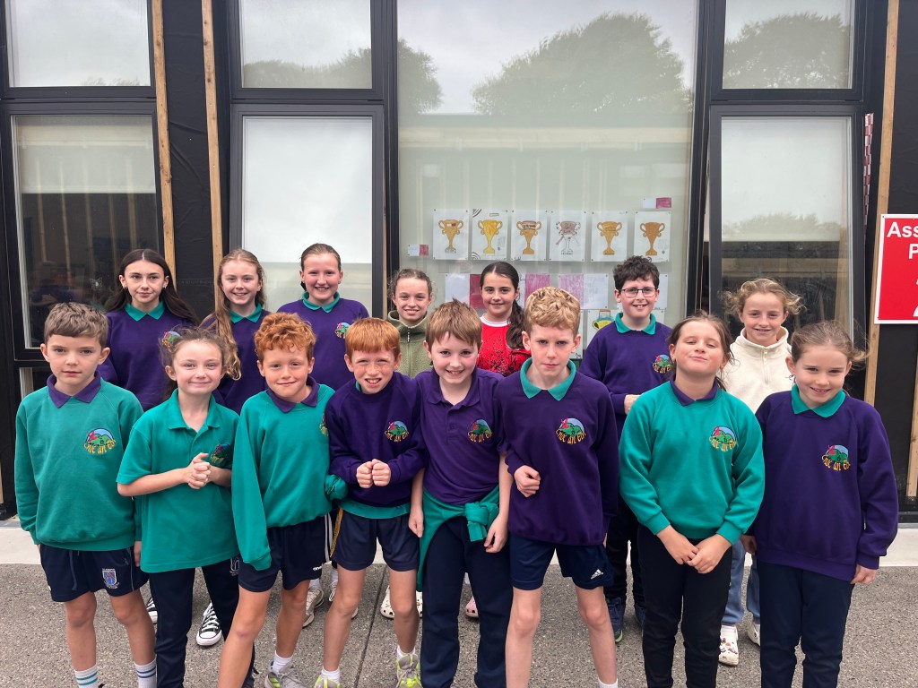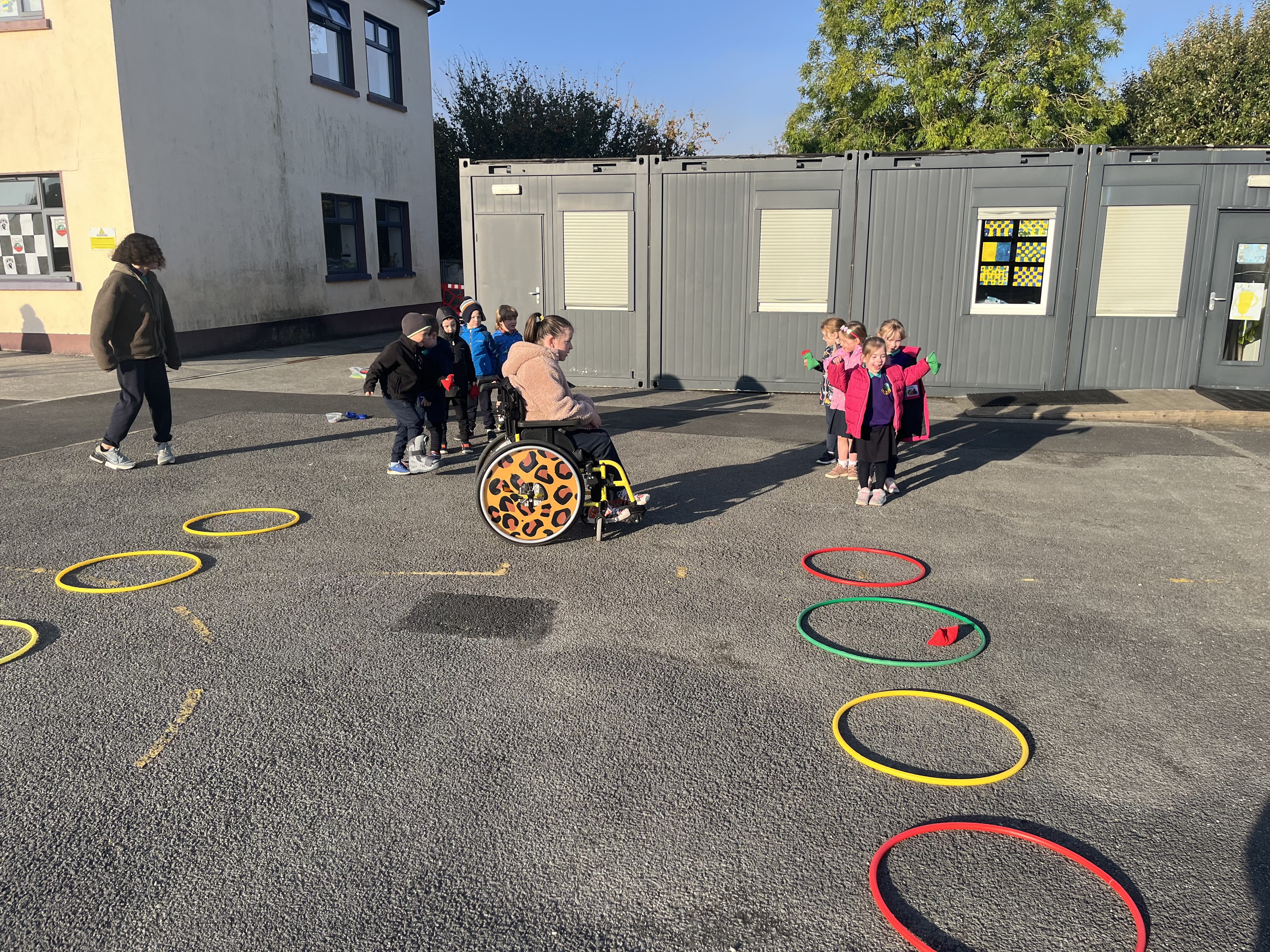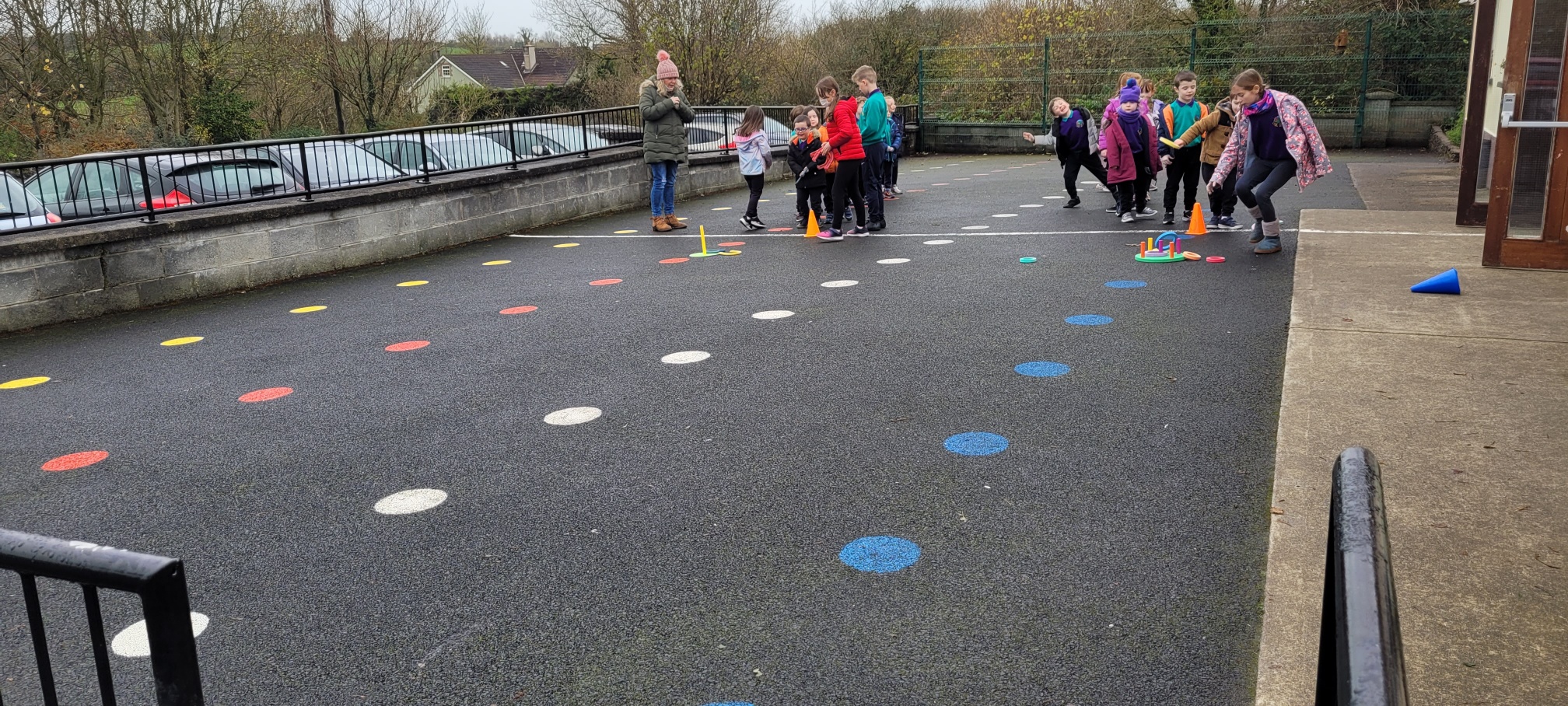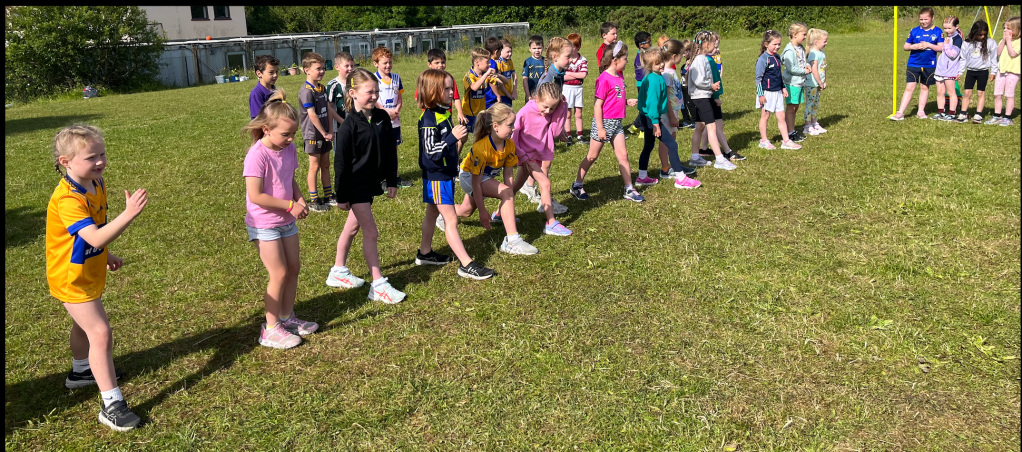 Active Schools Week took place in our school during the week of the 10th of June. The Active Schools committee came together with Shona to decide what activities we would do for Active Schools Week and on Sports Day. Some of the activities we decided to organise were rugby, hurling, dance, yoga, and many more. Several coaches and parents also got involved in the activities during the week. We also did Wake Up Shake Up every morning with the whole school. During Wake Up Shake Up we did activities like movement skills and exercises. We also organised two Sports Days for the school. The first Sports Day for the senior classes was on Monday the 17th of June, and the second Sports Day for junior classes was on Wednesday the 19th of June. On each Sports Day the sixth class pupils organised many stations for the rest of the school to participate in. The stations included three-legged races, wheelbarrow races, dodgeball, basketball, beanbag throwing, obstacle courses and more. There were also sprints and long races at the start of the day. Overall, we had a great time during Active Schools week, and our favourite parts included the races and the rounders station.