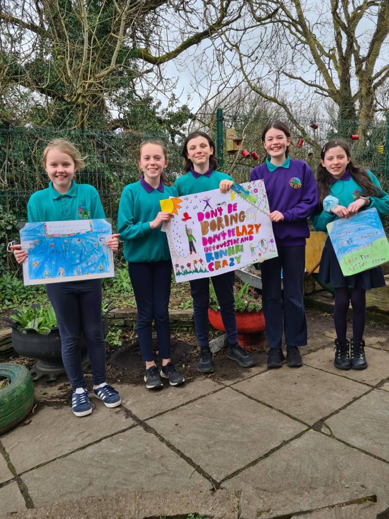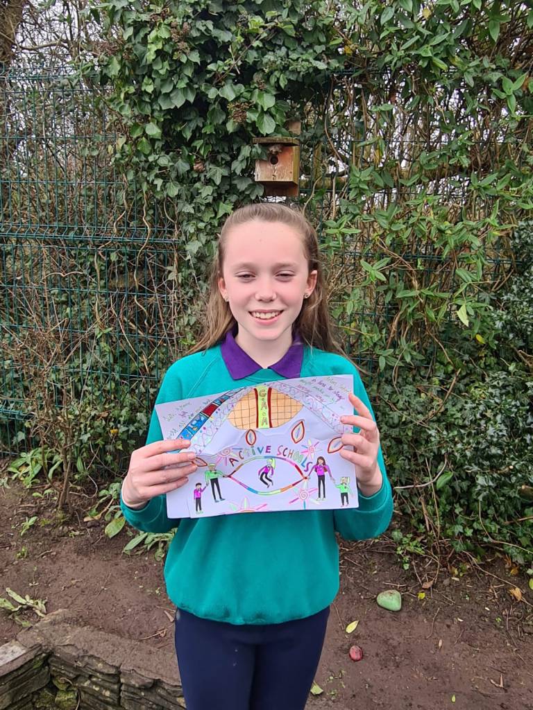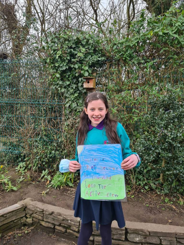 The winning imagery to match the slogan was created by Ailbhe Curran (6th) and Andrea Barry (6th). Connla, Ailbhe and Andrea combined their entries to make the finished slogan which we think represents Knockanean beautifully. Our other prize winners, Abi O’ Donnell (3rd) and Róisín McInerney (3rd) both had lovely messages to share in their slogans – Abi ‘’Put down your phone, put down your devices, pick up a ball and start your exercises’’. Róisín ‘’Believe in sport, believe in you and join the active crew’’