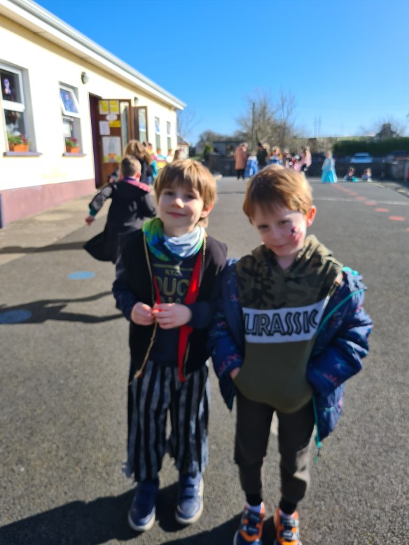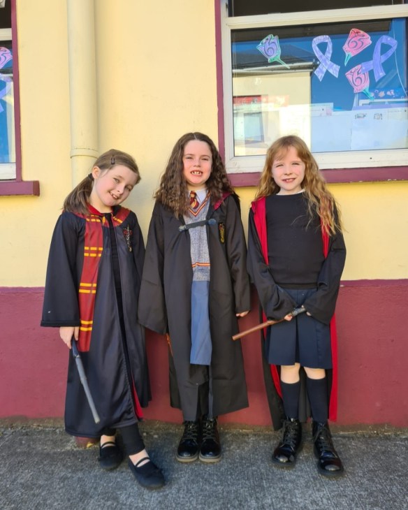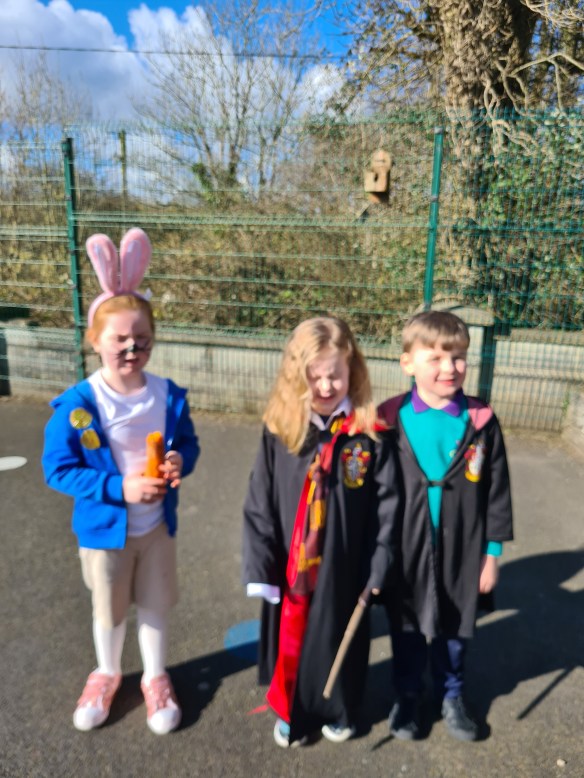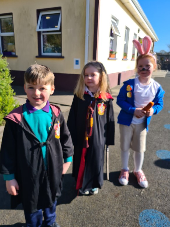 Over the past 5 weeks, both 4th classes visited the Forest School in Lees Road. It was run by Veronica and Grainne. They gave us nature names such Swallow, Jackdaw, Hare, Kestrel etc. We did lots of crafts like good luck charms, and coins, which we put our nature names on and we also made clackers. We played loads of games like Hide and Seek, Capture the Flag and Tip the Tree. On the last day, we got porridge oats and spread around in three different places where we had fun thanking the animals. Every day before we went into the woods, Veronica and Grainne had to ask a beech tree if they had permission to enter the woods. Every day when we were leaving we sang a song. There was also a “Talking Stick”. Every day we’d sit in a circle and pass the talking stick around and say our name and nature name. We have all the facts about our Nature name on a laminated sheet.