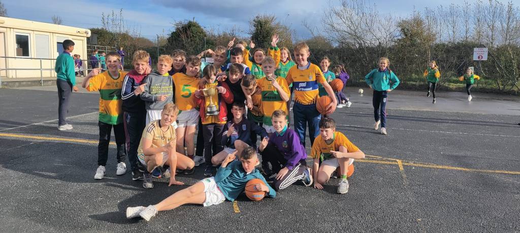 On Wednesday the 15th of November, the boys’ football team traveled to Cusack Park for the football final against Lissycasey N.S. We left early at 9:10 for the match which started at 10. Classes from 3rd to 6th came to support us on the day. When we arrived we went into the dressing rooms and got changed, and then we made the team. After this, we went out onto the pitch and did our warm-up. We went back into the dressing rooms for a pep talk from Mr. Curran, Colm, and Cillian. We then took the team photo before the match began. Our captains Daire and Conor went to the referee, along with the Lissycasey N.S. team captain. Then the match was finally underway. We scored the first two points and they came back and scored a point. After this, they scored a goal and we knew we had to come back from this. We then scored two more points and the score stood at 1.1 to 0.4.