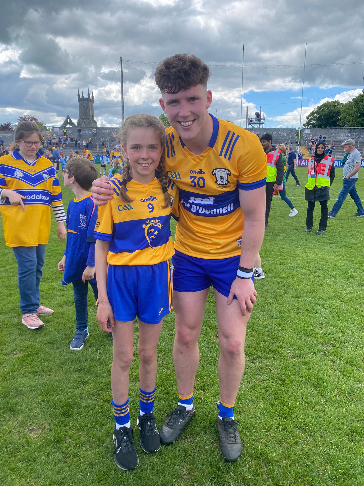 Daire Cullinan represented the school in the primary game at halftime in Dungarvan in the Munster Senior Football Championship between Clare and Waterford. Isabella Mangan represented the school in the primary game at halftime in Cusack Park in the Munster Senior Football Championship Final between Clare and Kerry.
