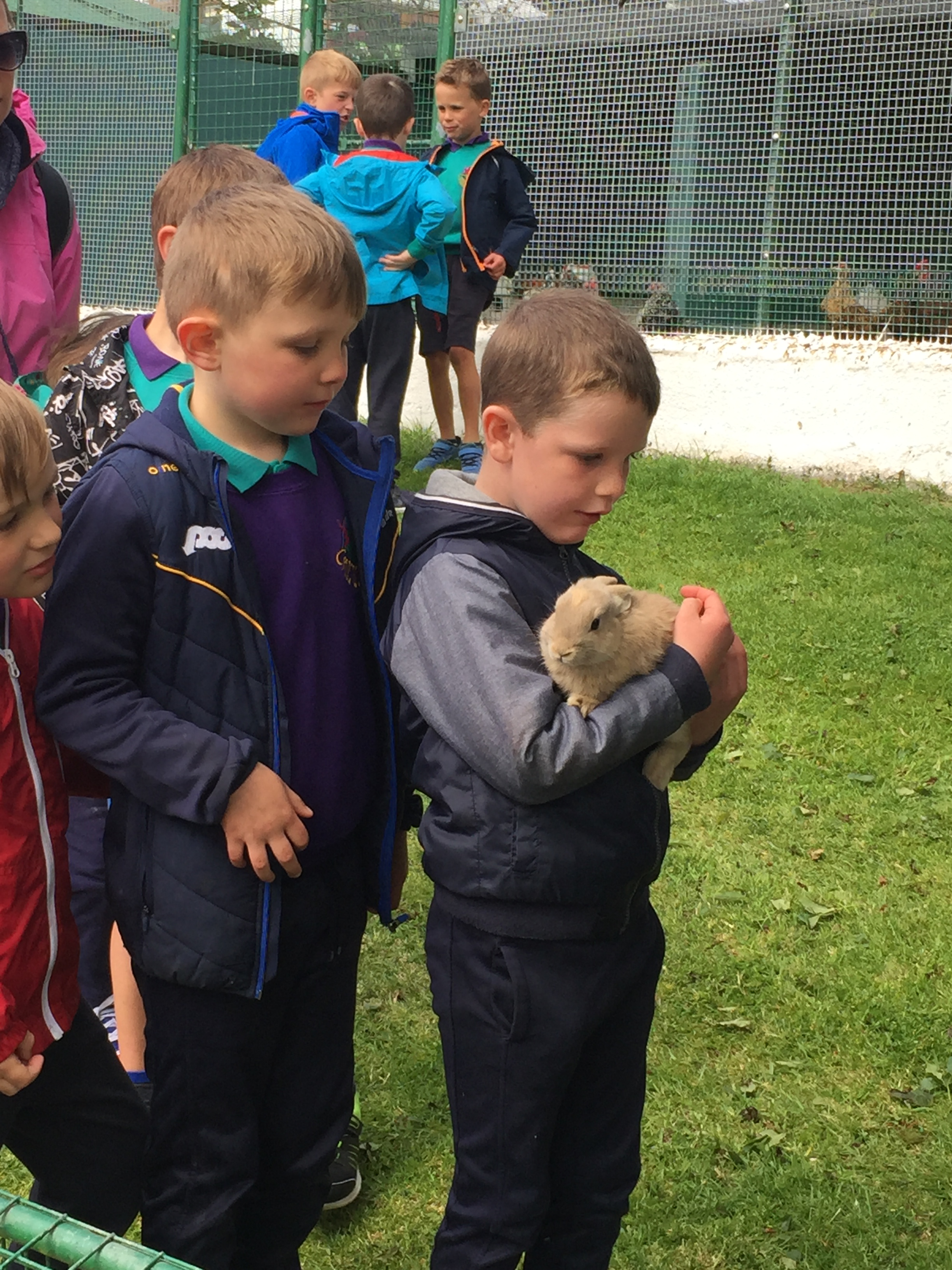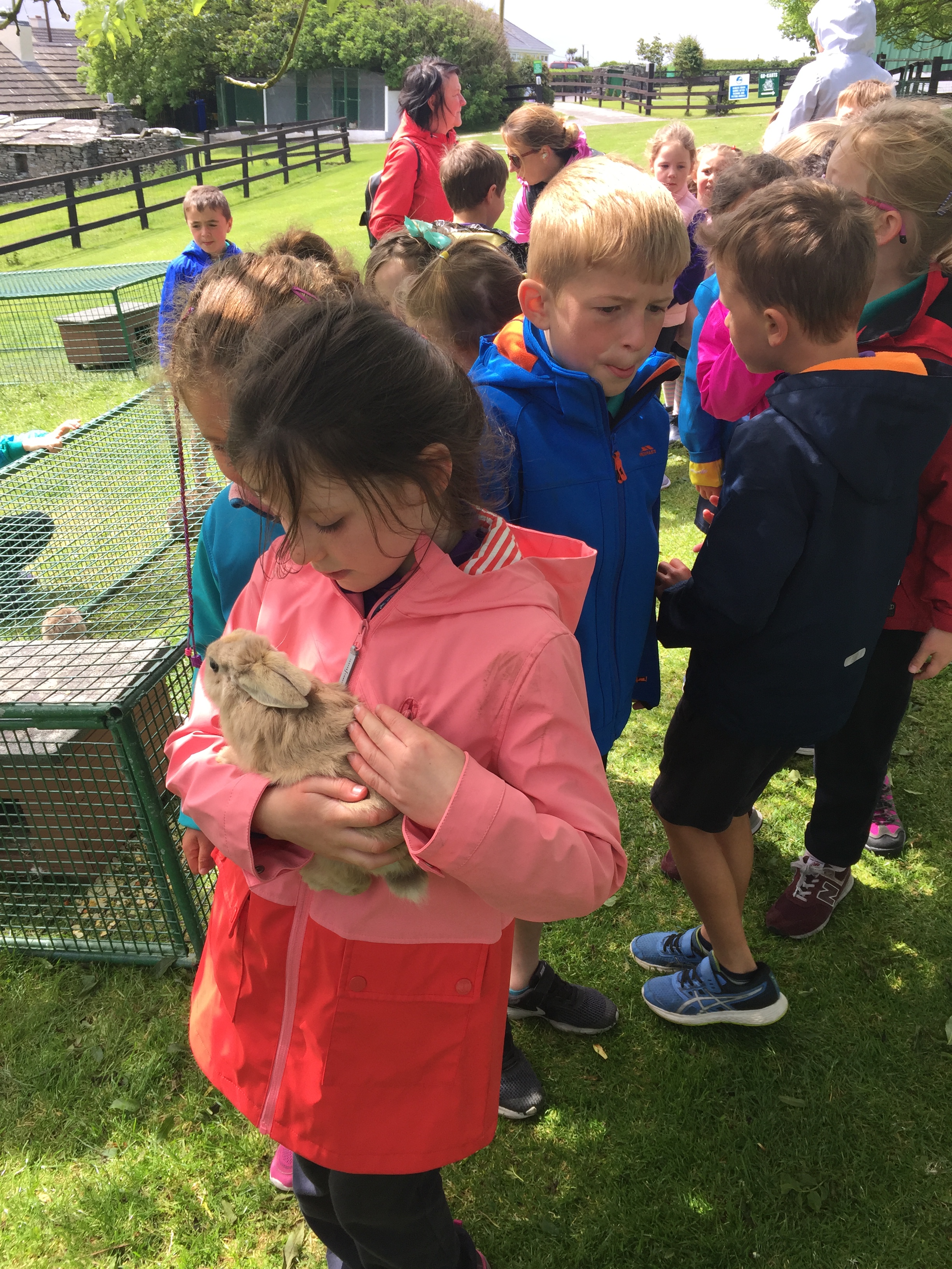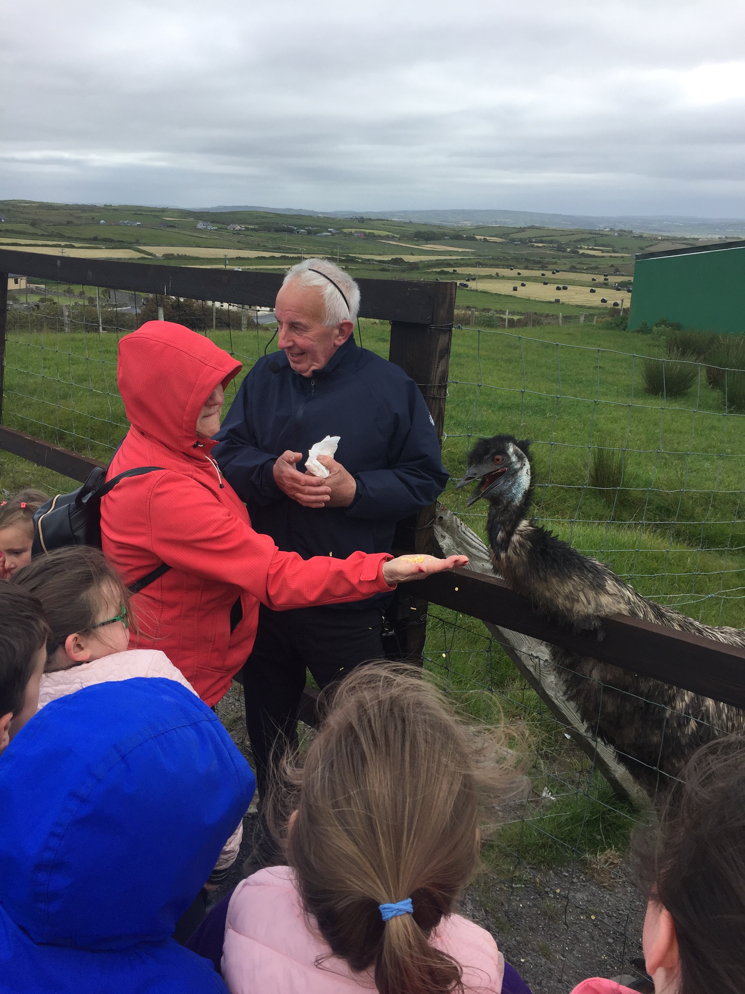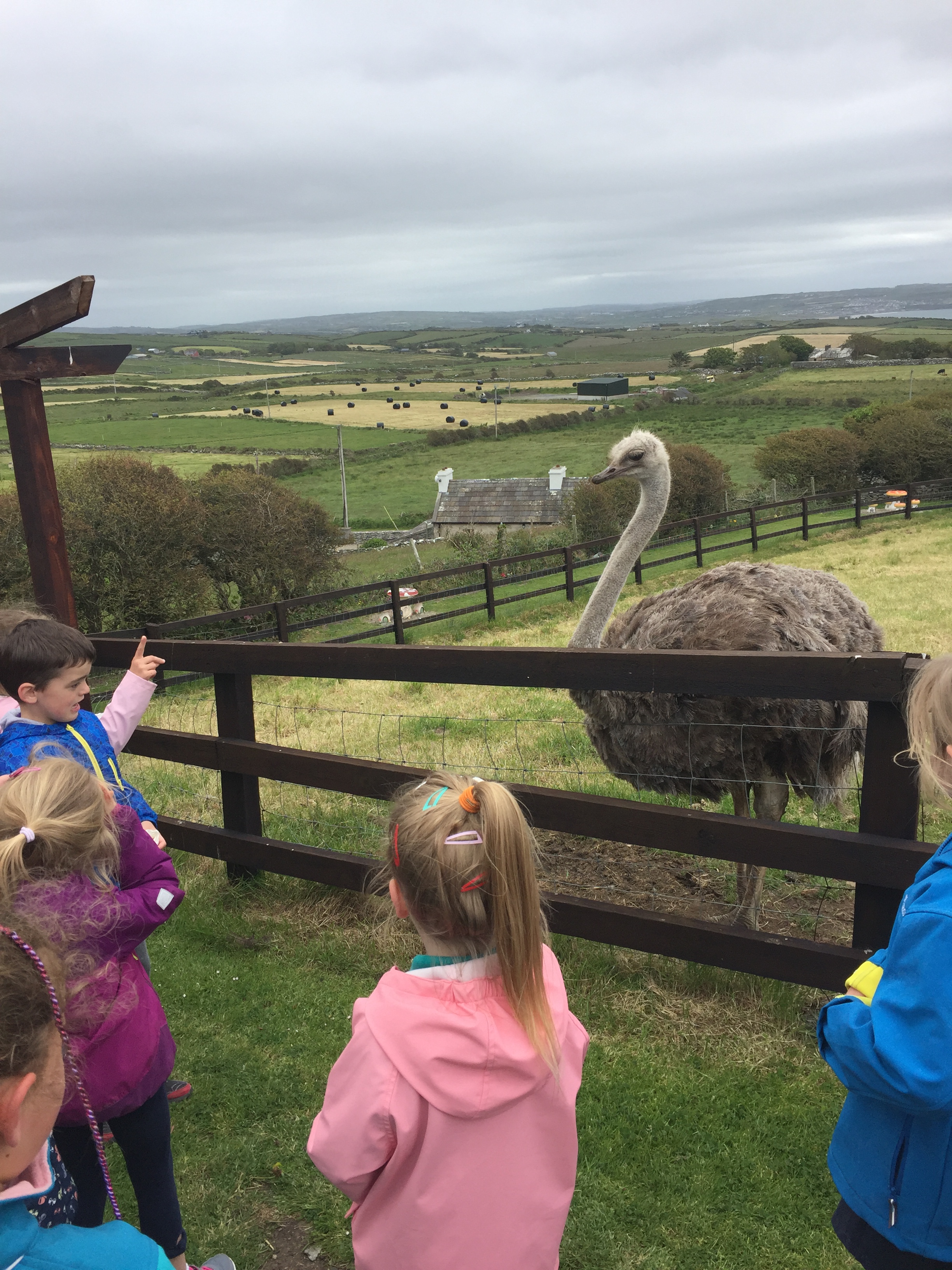 We went to Moher Hill farm on our school tour. When we got there we had lunch. After lunch we fed the animals such as sheep, goats, pigs, llamas, peacocks, Shetland ponies, ostriches and deer. We then we went back and had something to eat. Afterwards we went to the play area. Here we played on the bouncy castle and the ball pit. Then we went to the sandpit. After that we went Go Karting. We also got to hold a bunny and an ostrich egg. We fed the goats some milk. We had a really good day.