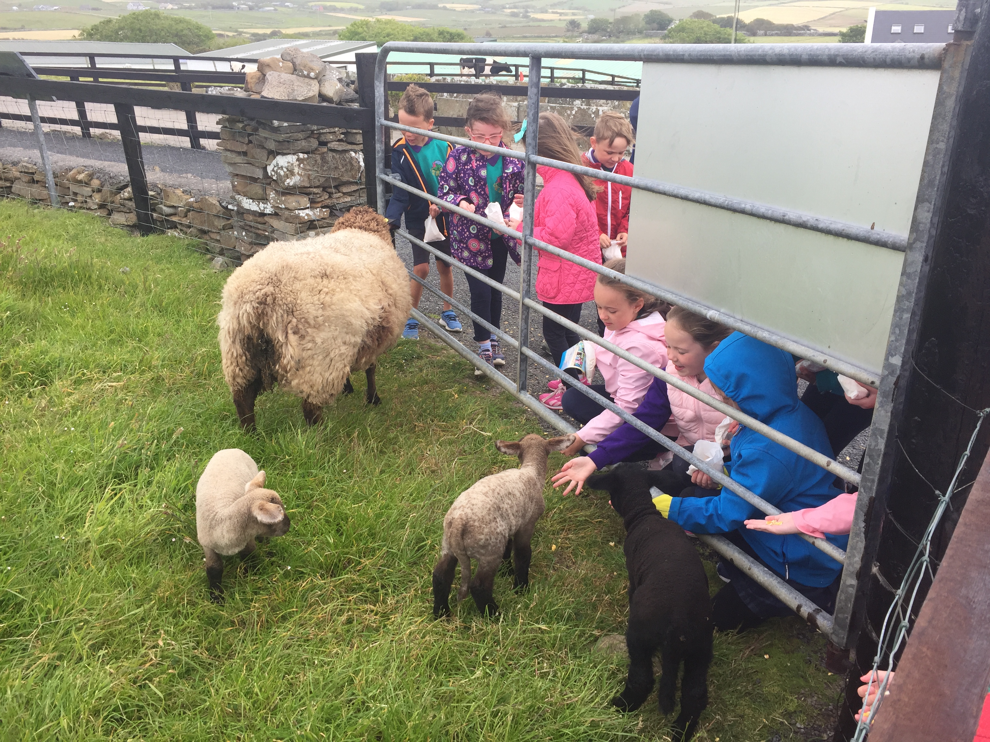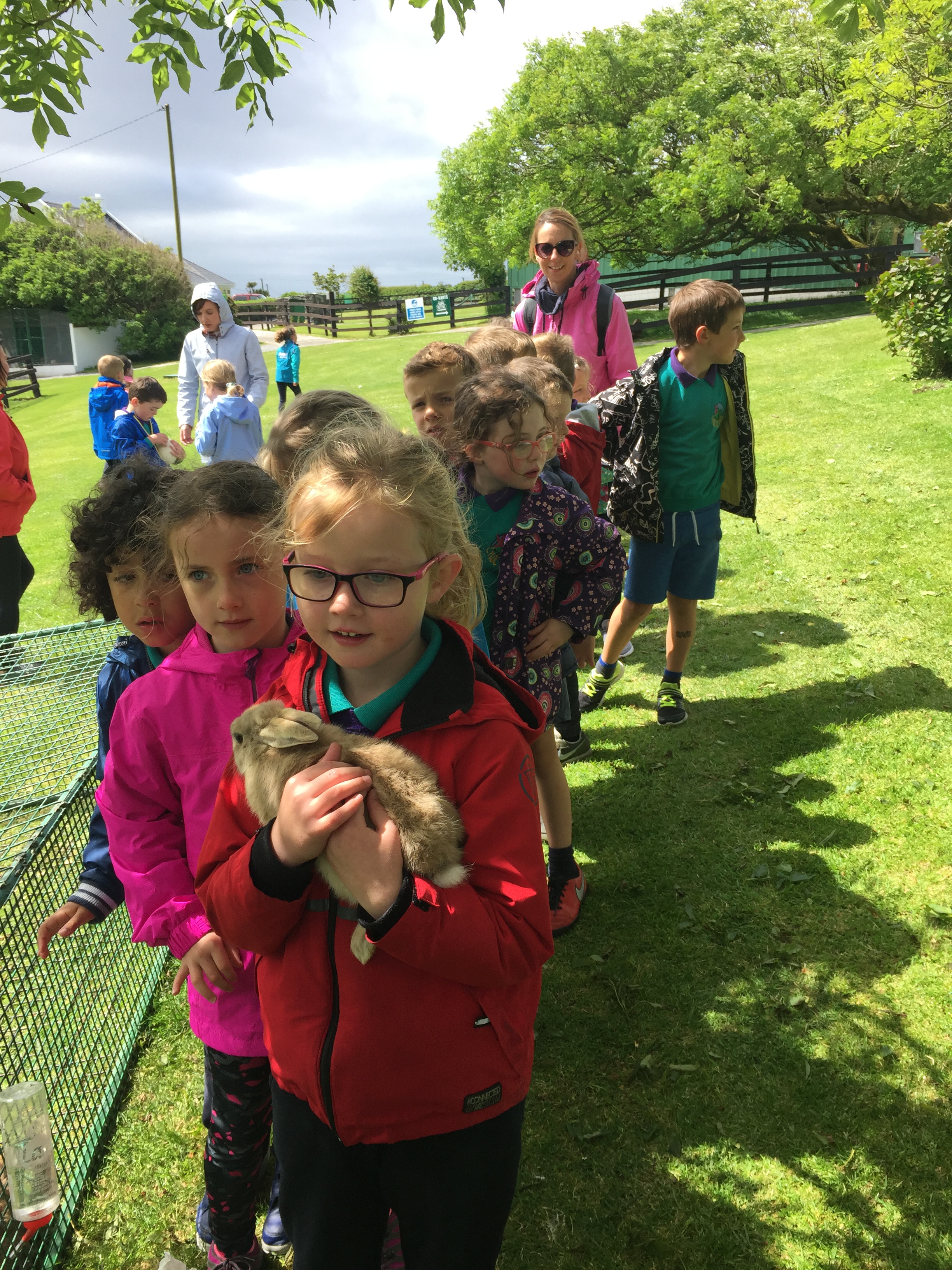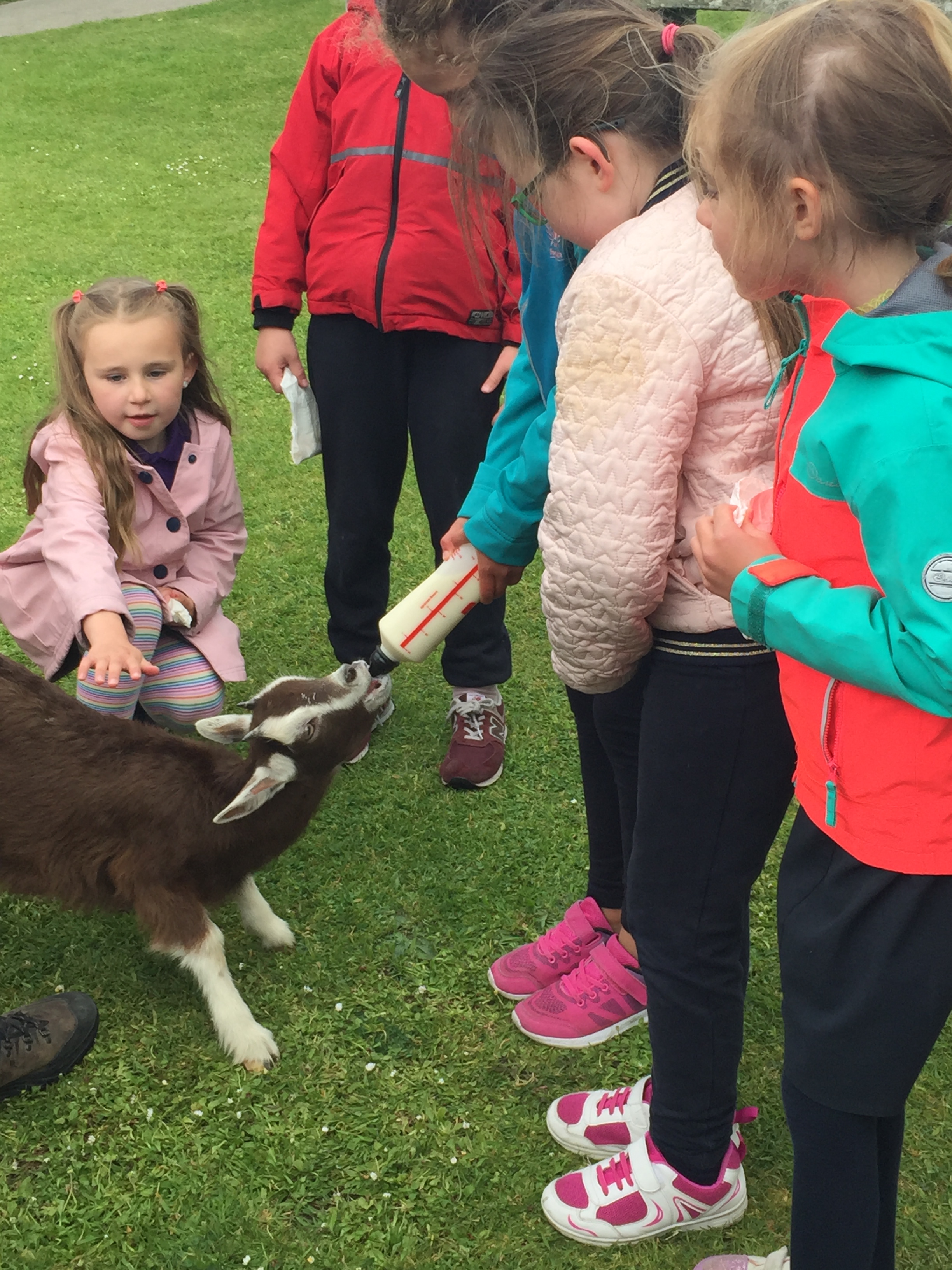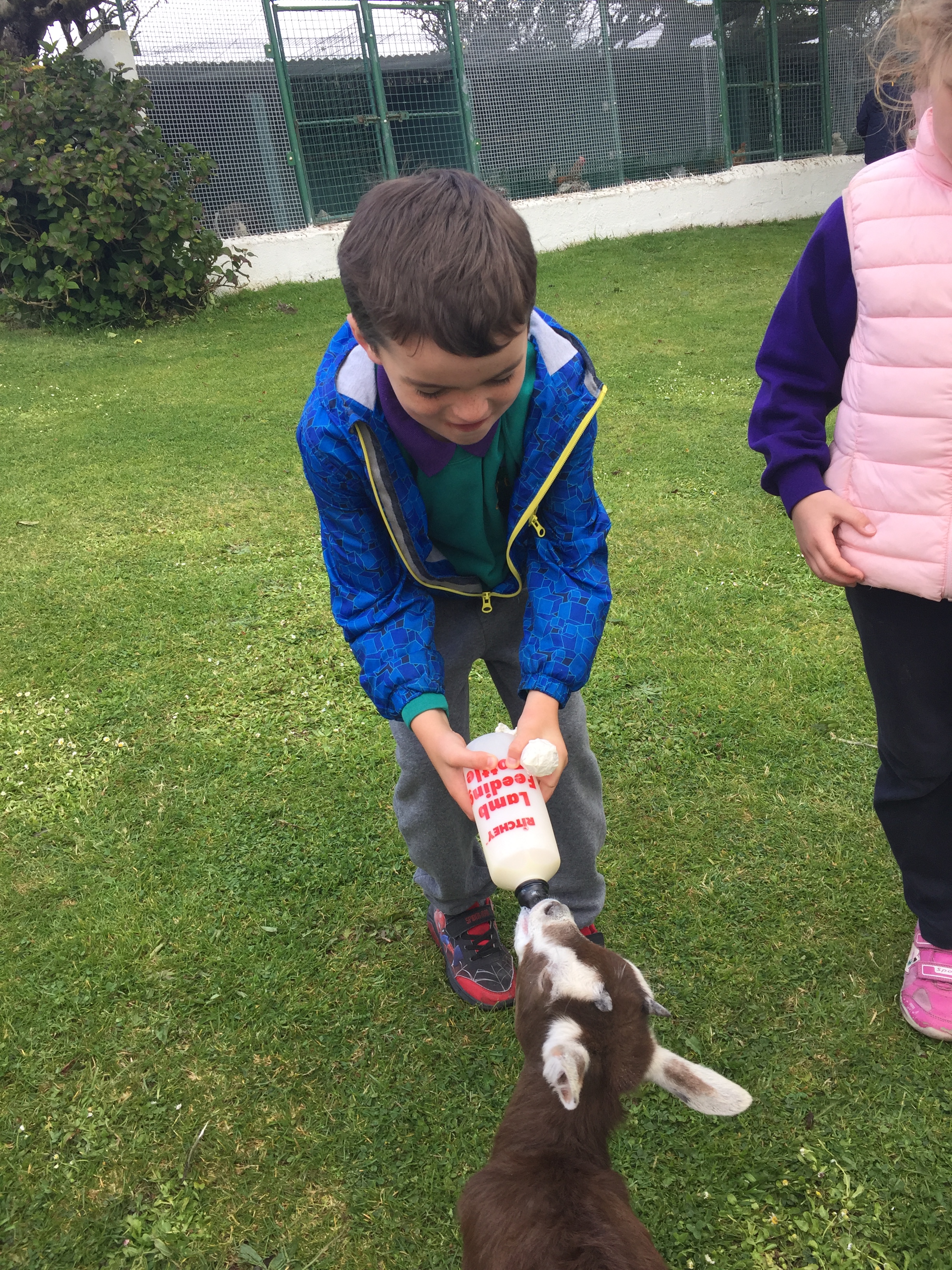 We went to Moher Hill farm on our school tour. When we got there we had lunch. After lunch we fed the animals such as sheep, goats, pigs, llamas, peacocks, Shetland ponies, ostriches and deer. We then we went back and had something to eat. Afterwards we went to the play area. Here we played on the bouncy castle and the ball pit. Then we went to the sandpit. After that we went Go Karting. We also got to hold a bunny and an ostrich egg. We fed the goats some milk. We had a really good day.