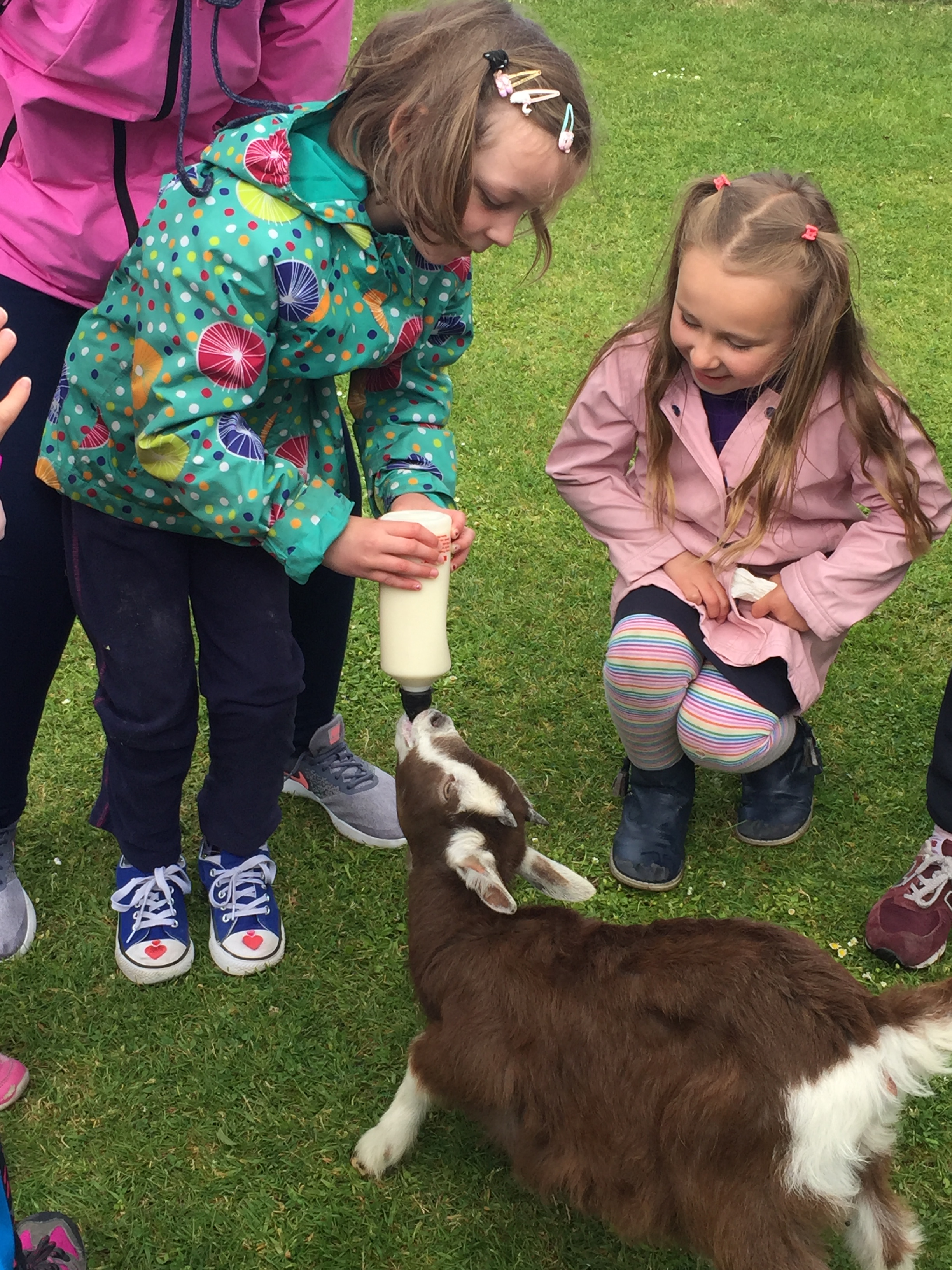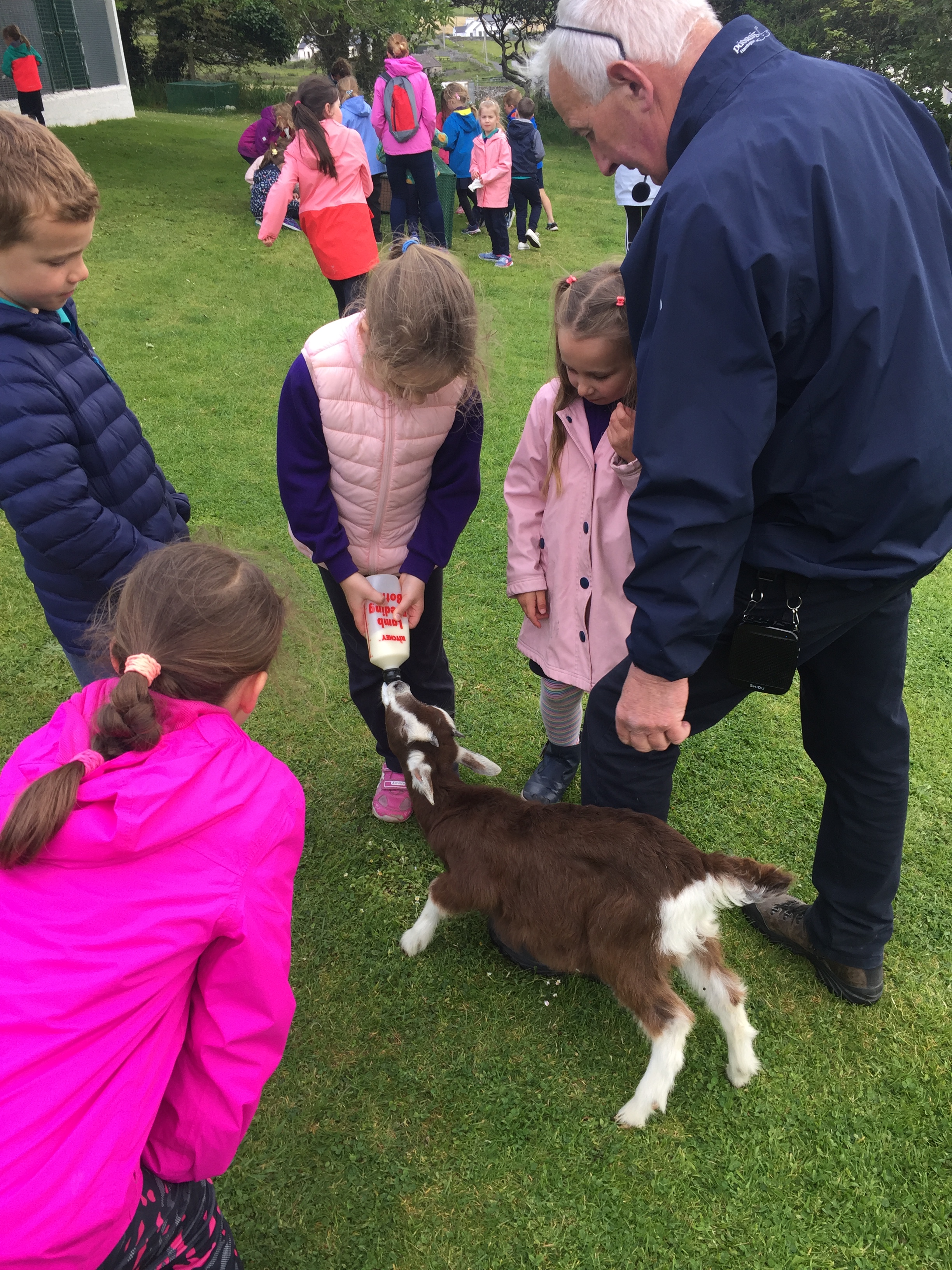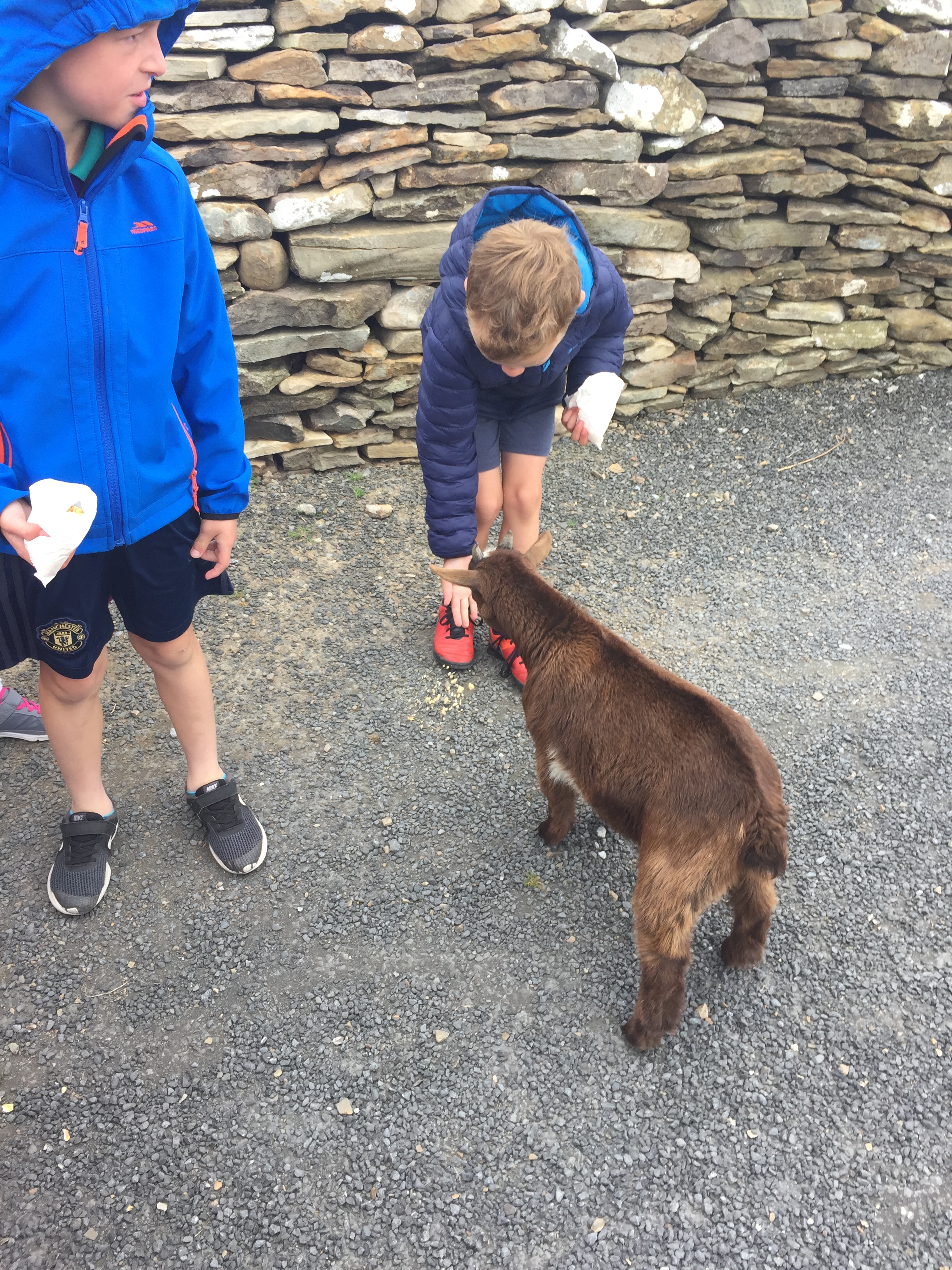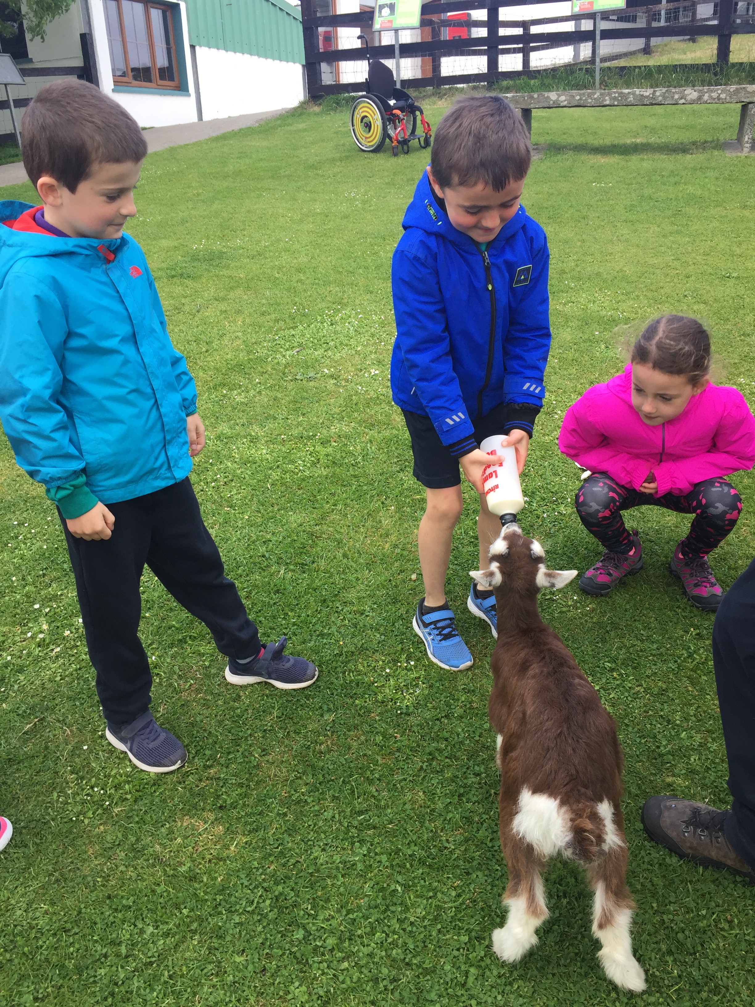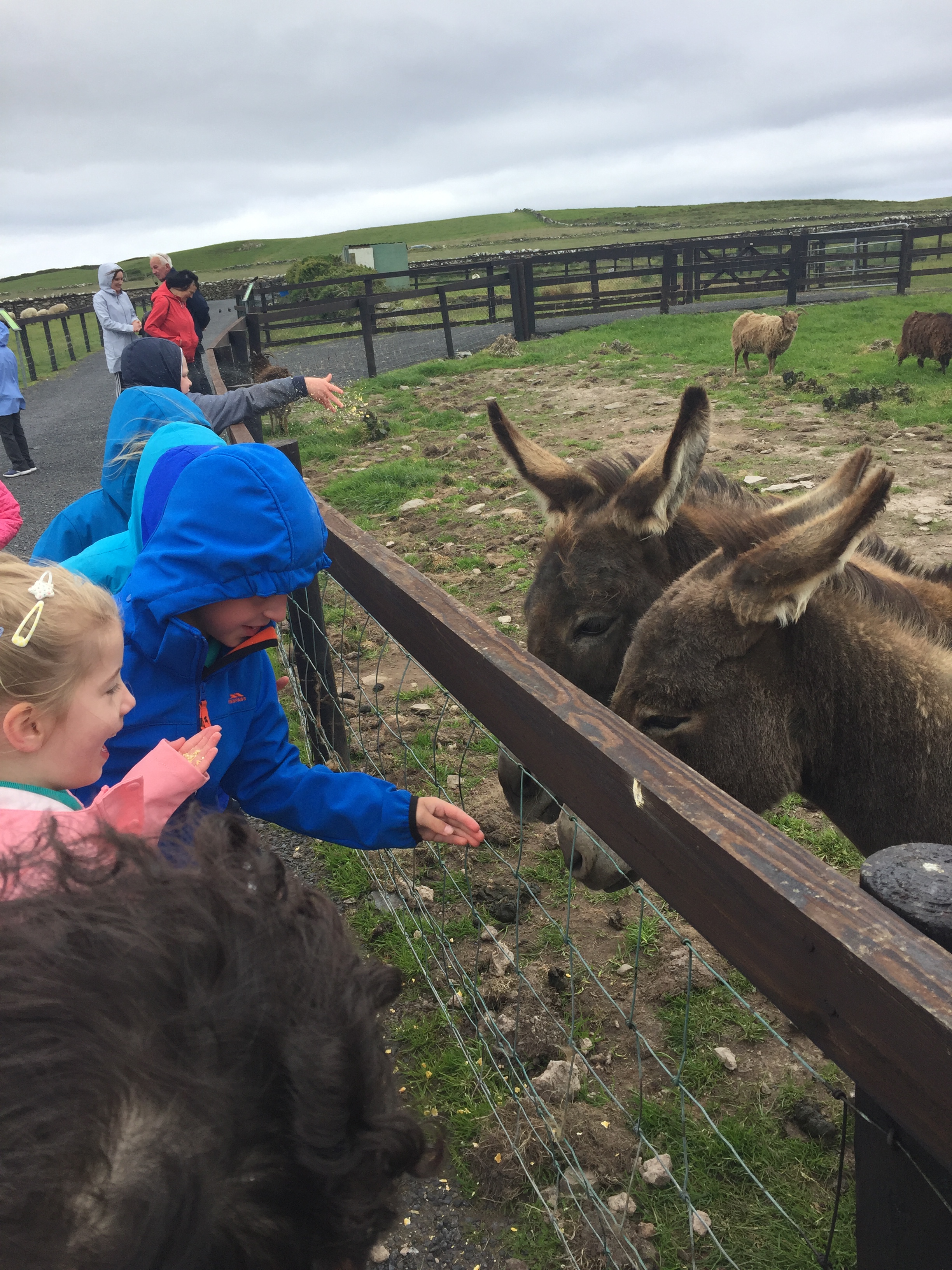 We went to Moher Hill farm on our school tour. When we got there we had lunch. After lunch we fed the animals such as sheep, goats, pigs, llamas, peacocks, Shetland ponies, ostriches and deer. We then we went back and had something to eat. Afterwards we went to the play area. Here we played on the bouncy castle and the ball pit. Then we went to the sandpit. After that we went Go Karting. We also got to hold a bunny and an ostrich egg. We fed the goats some milk. We had a really good day.