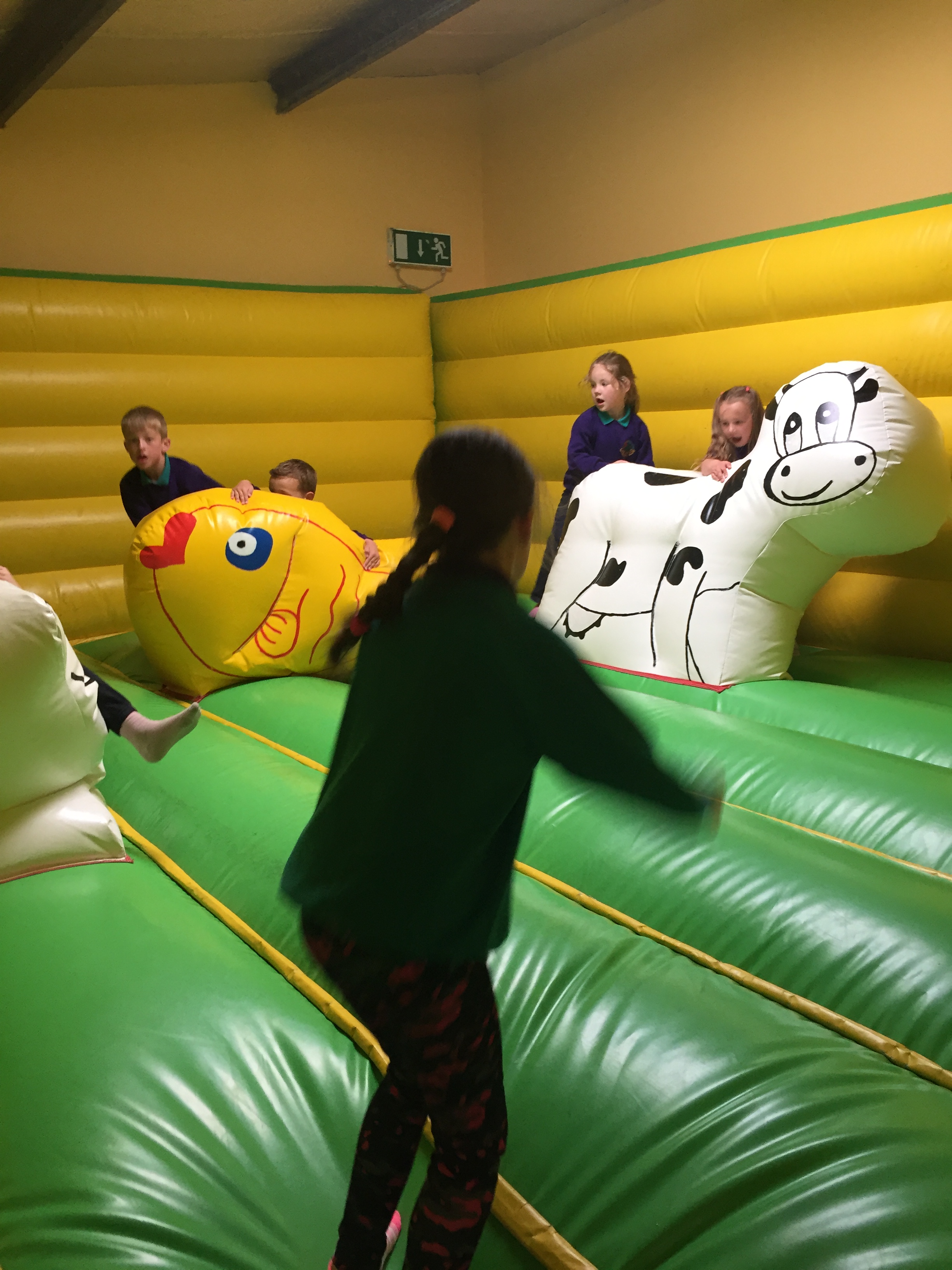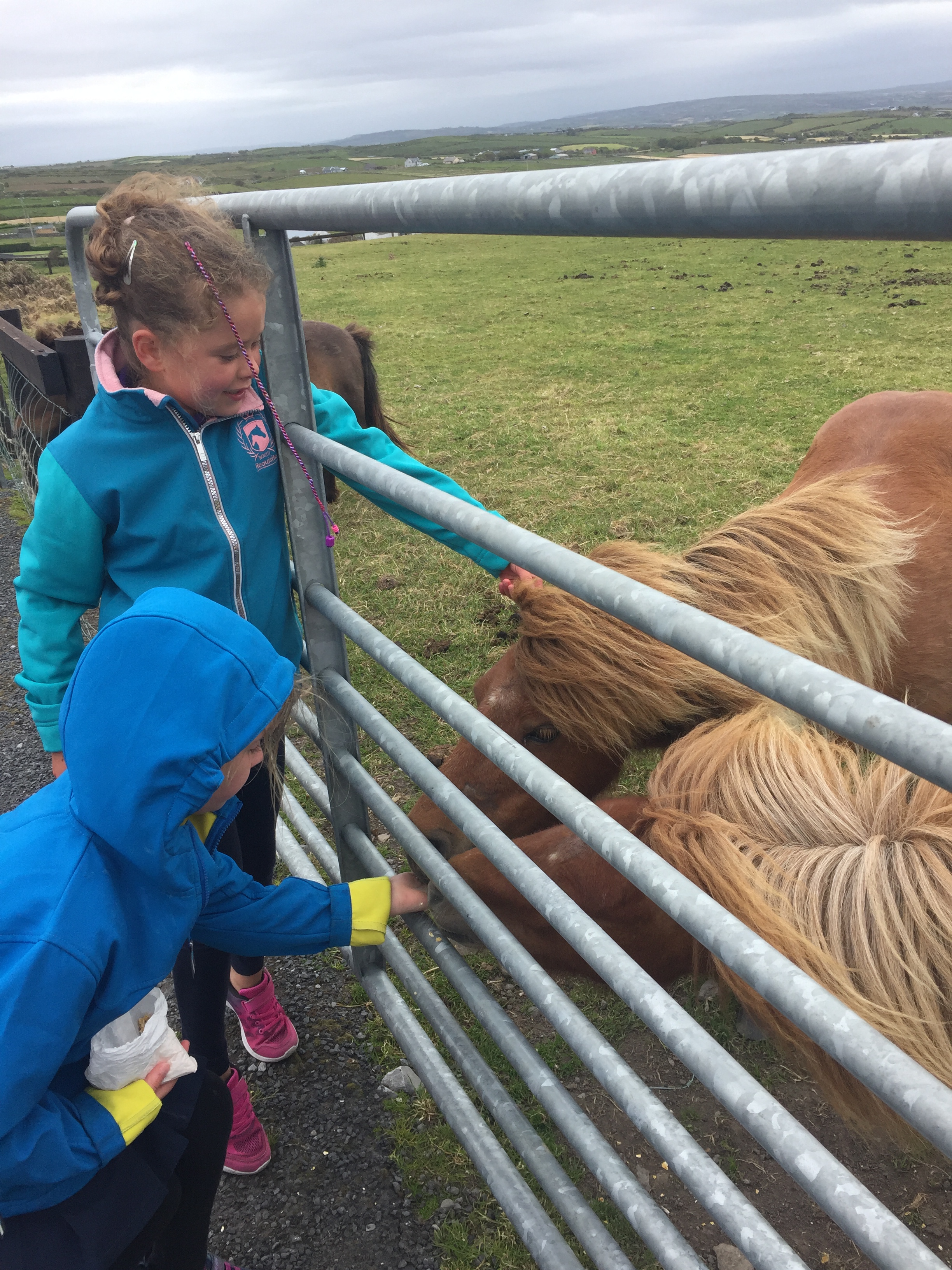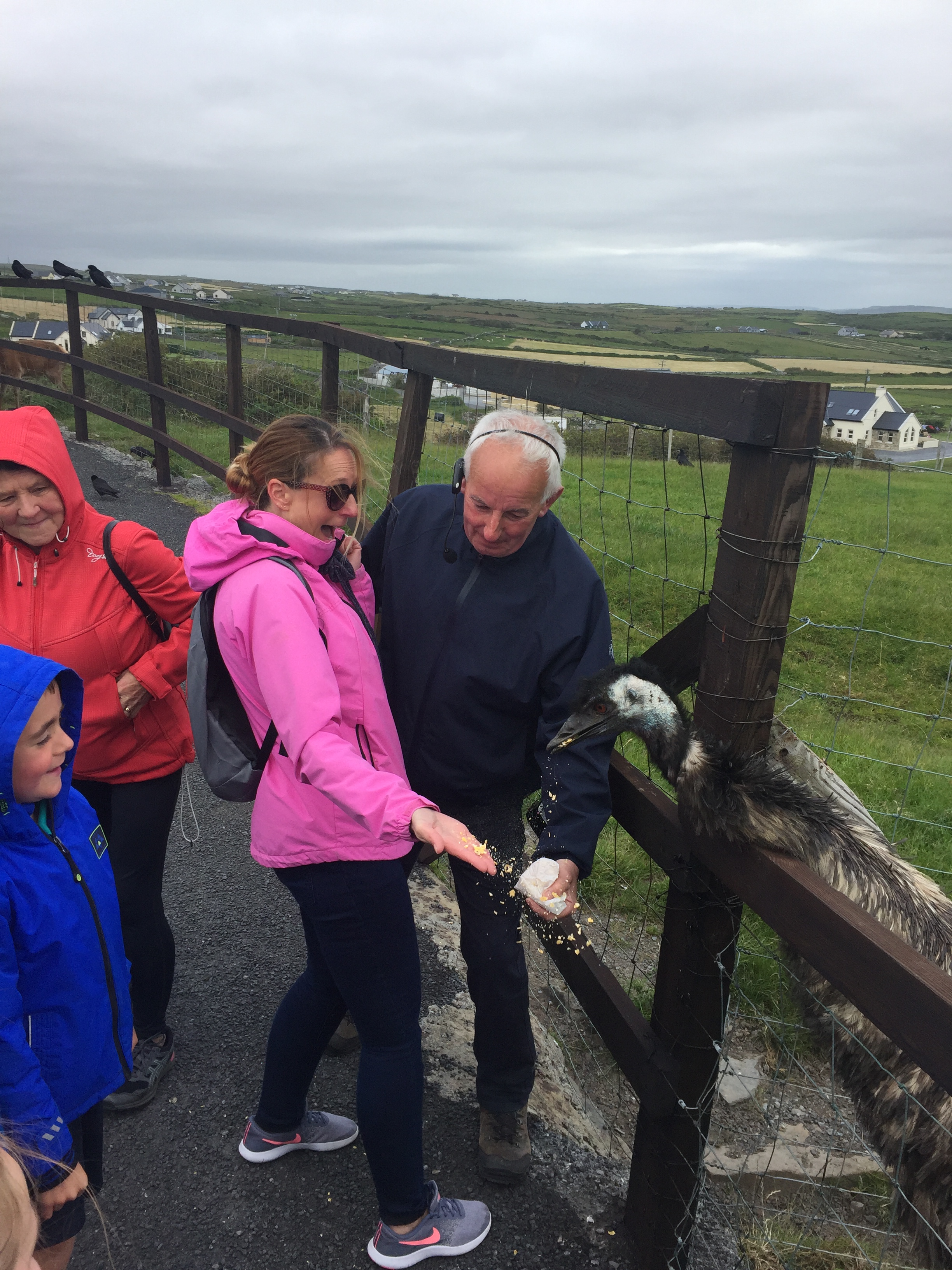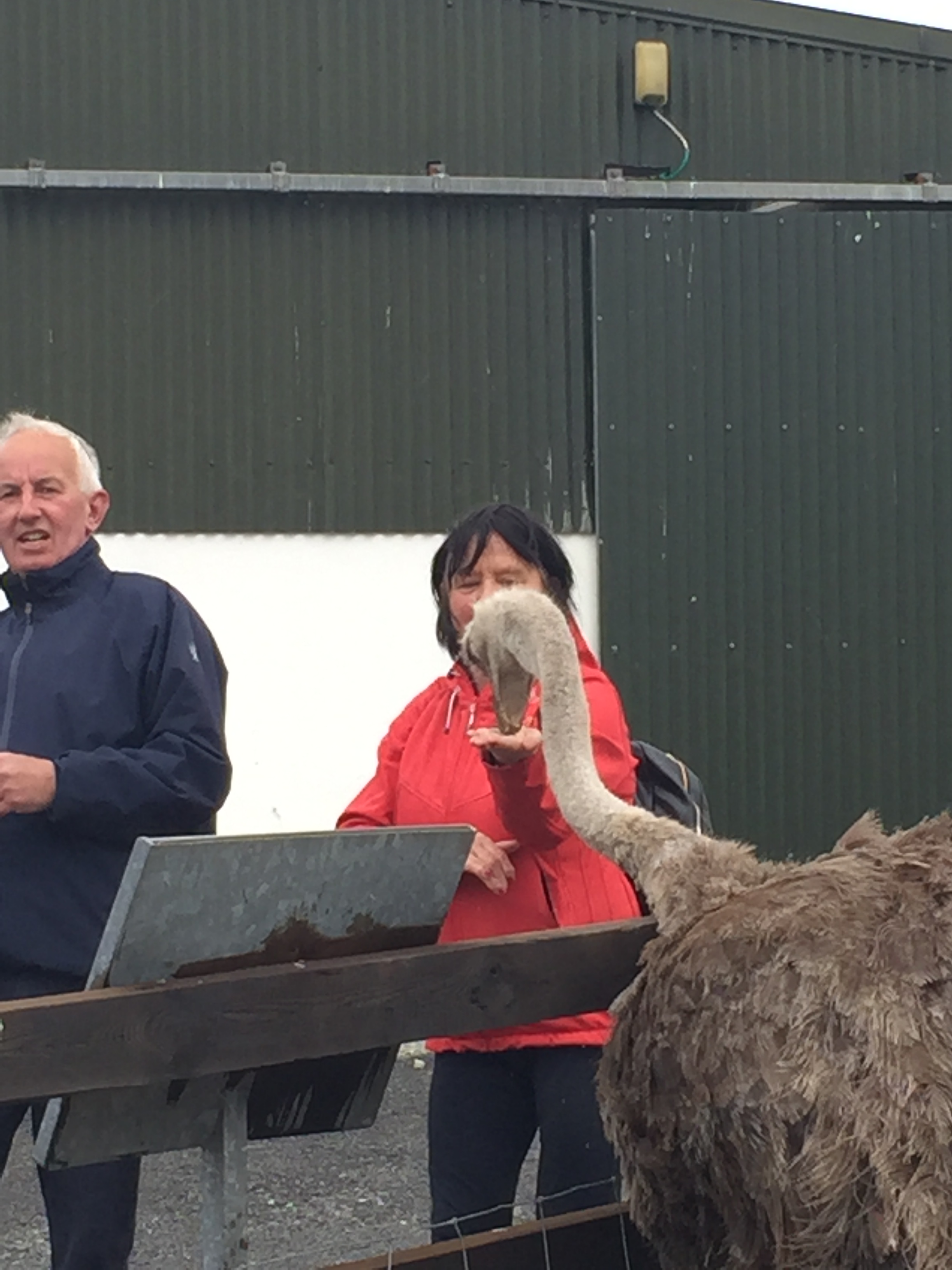 We went to Moher Hill farm on our school tour. When we got there we had lunch. After lunch we fed the animals such as sheep, goats, pigs, llamas, peacocks, Shetland ponies, ostriches and deer. We then we went back and had something to eat. Afterwards we went to the play area. Here we played on the bouncy castle and the ball pit. Then we went to the sandpit. After that we went Go Karting. We also got to hold a bunny and an ostrich egg. We fed the goats some milk. We had a really good day.