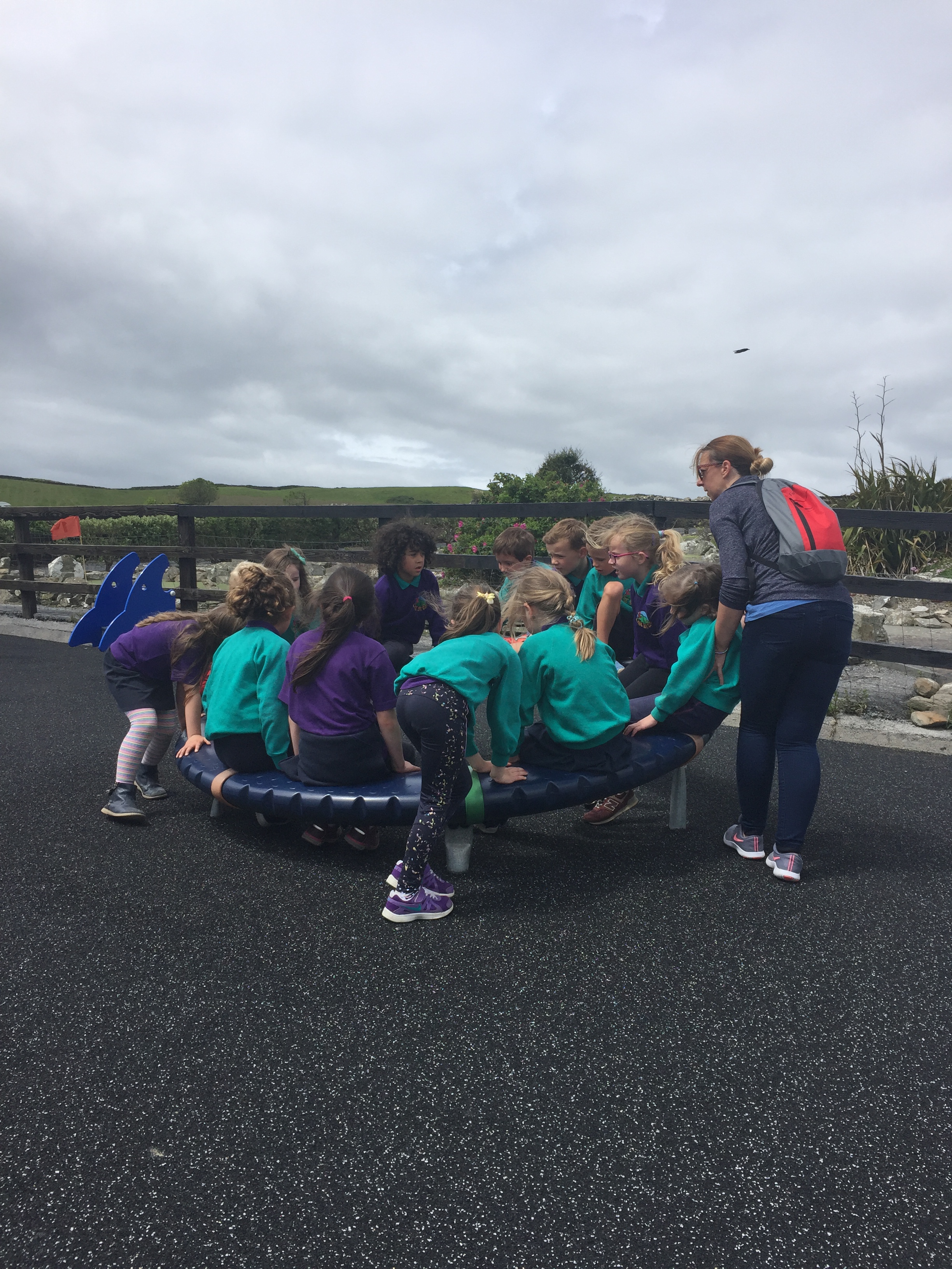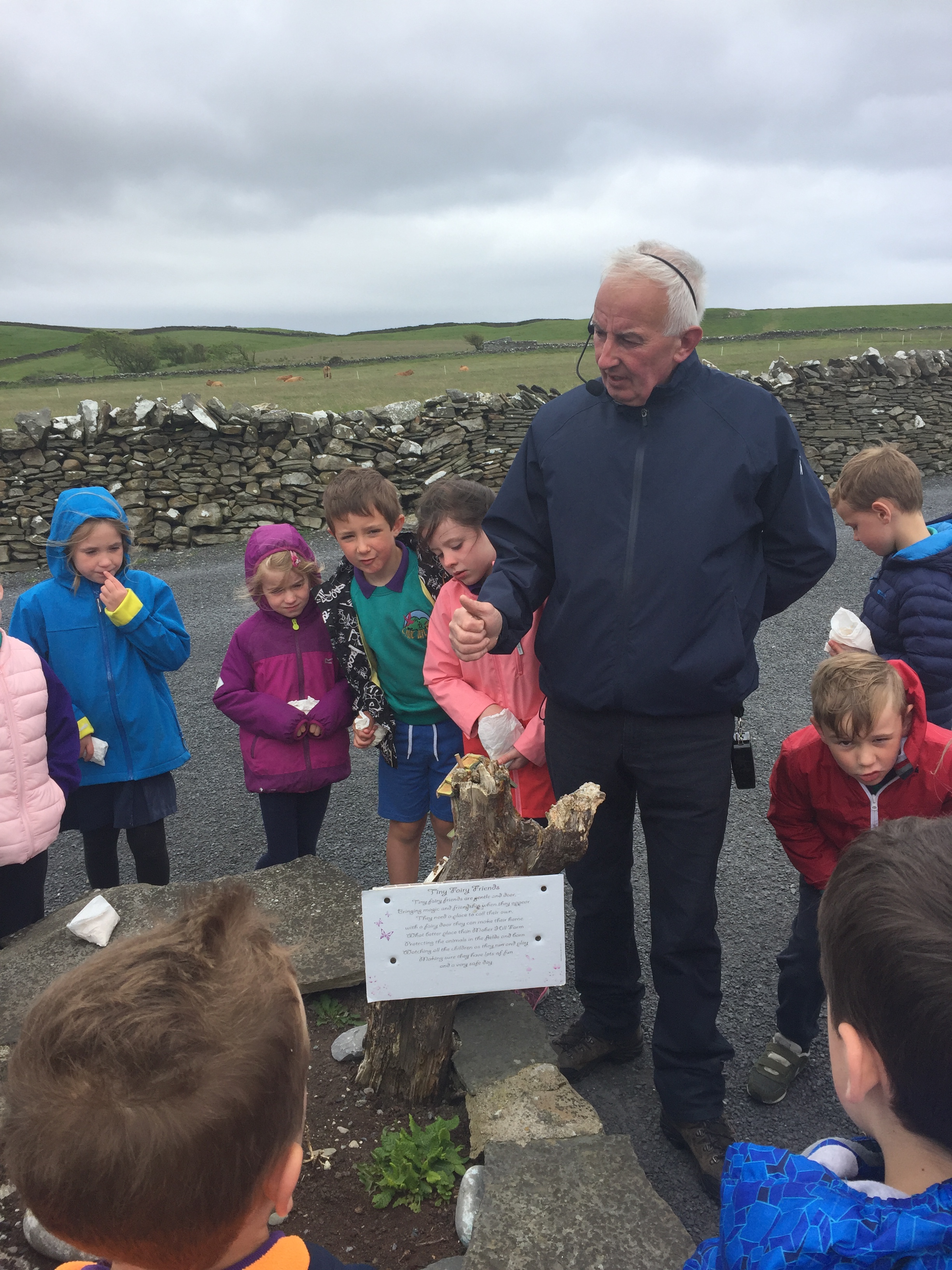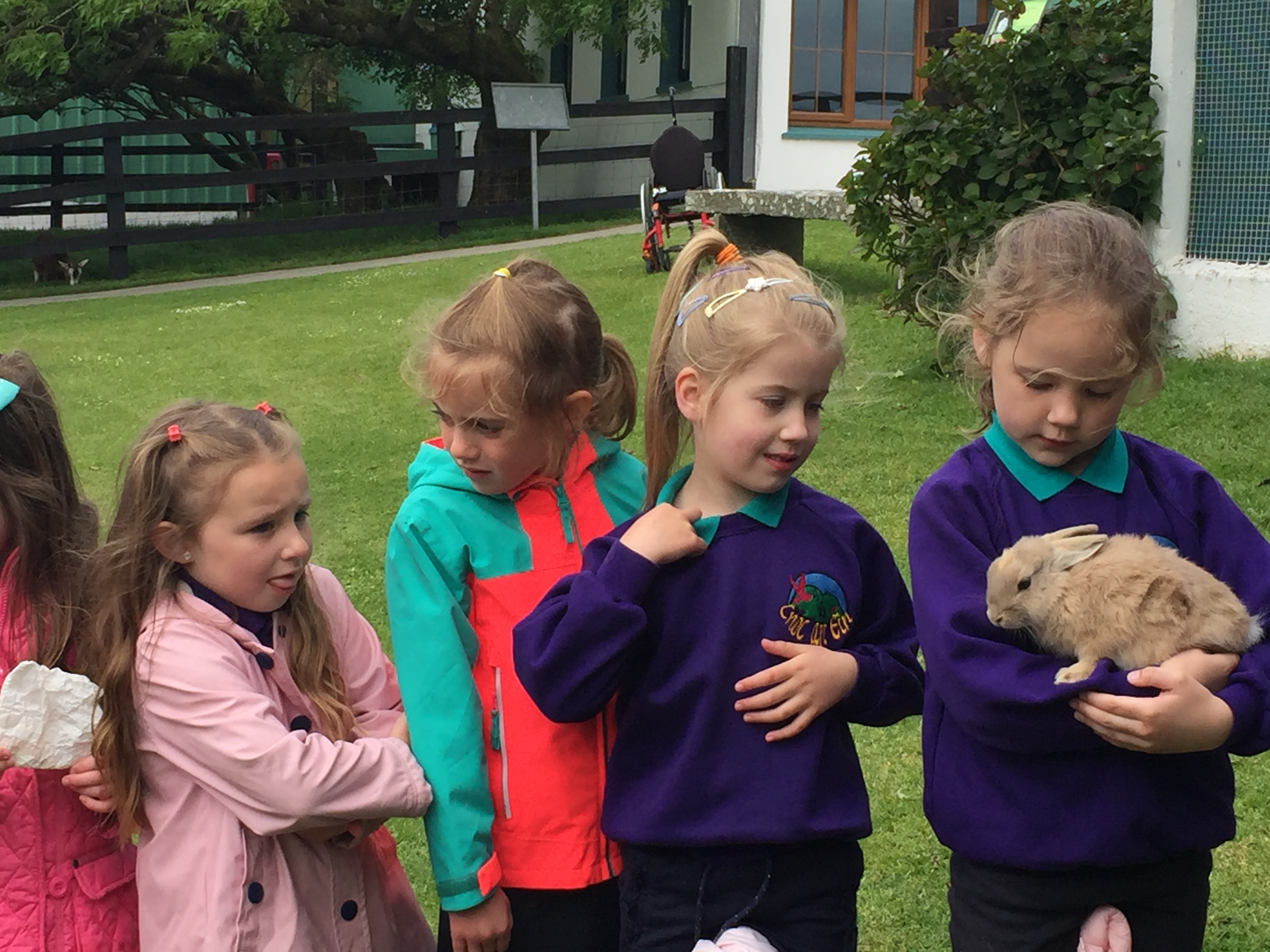 Junior Infant Tour: On Wed June 19th the junior infants went on a school tour to the Burren Nature Sanctuary. We went on a bus and when we got there we met the leaders who showed us into the lunch room where we ate lunch. Then Edel’s group played in the inside play area and Mary’s group played outside. We played with sand and on the swings. We then went to feed the animals such as goats, rabbits, guinea pigs and onepig. Then we went on a nature trail and we met the carpenter who makes the furniture and the Tooth Fairy Elf. Then we had to run around until we found we found the fairy fort. Then we went back and the Tooth Fairy Elf showed us purple flowers and she made us be busy bees on the way back. Afterwards we went to the playground and then we went home.