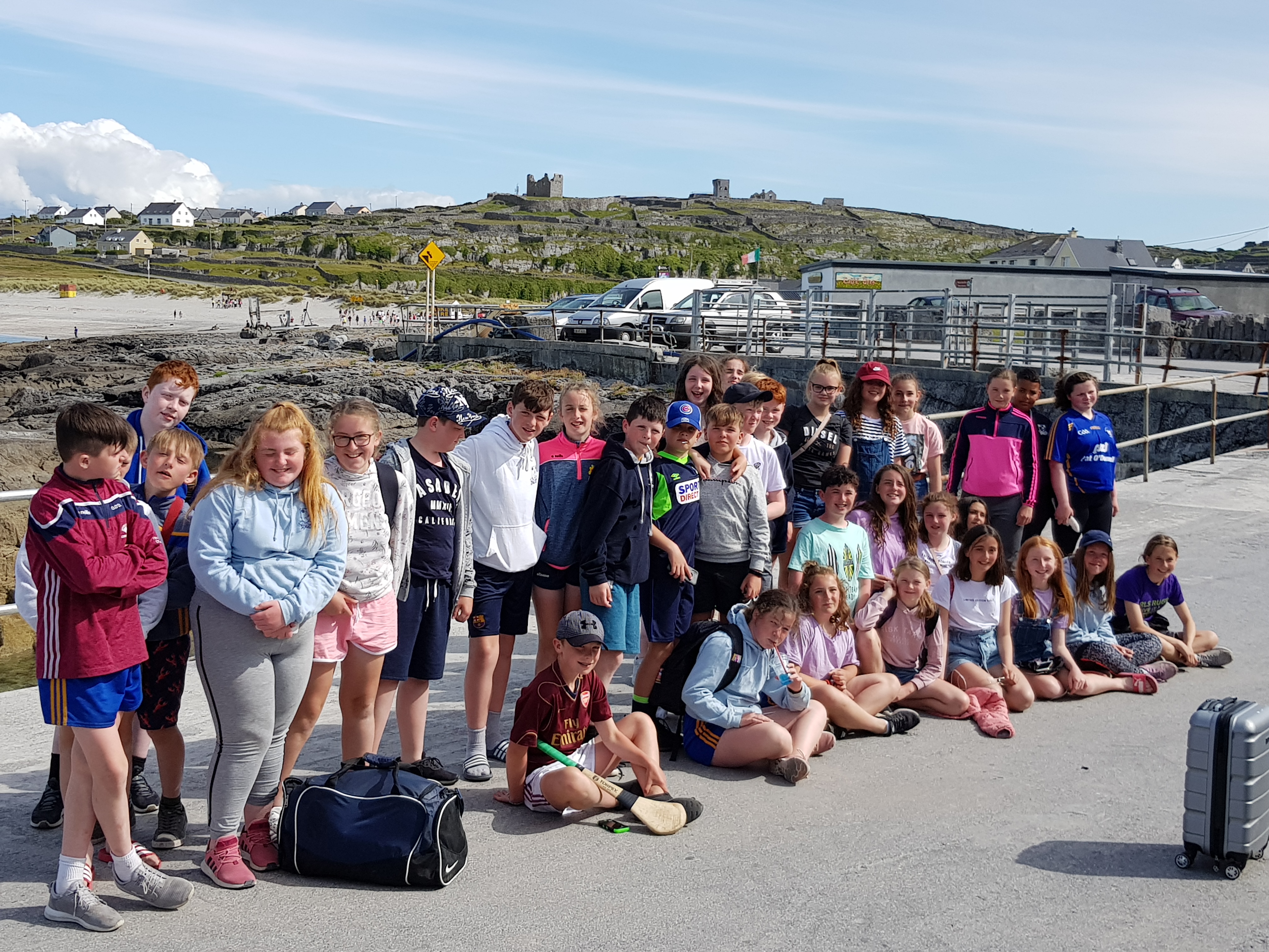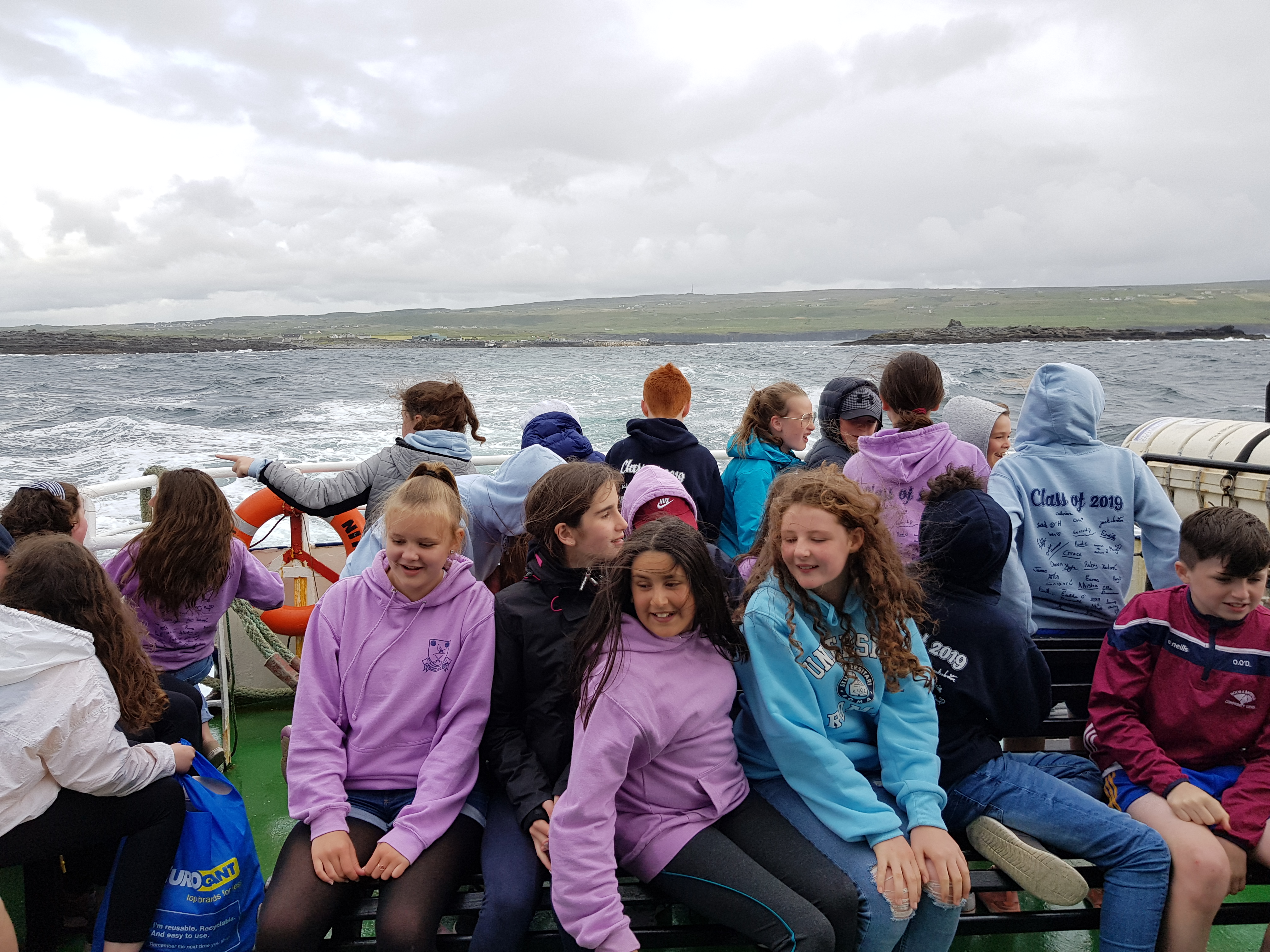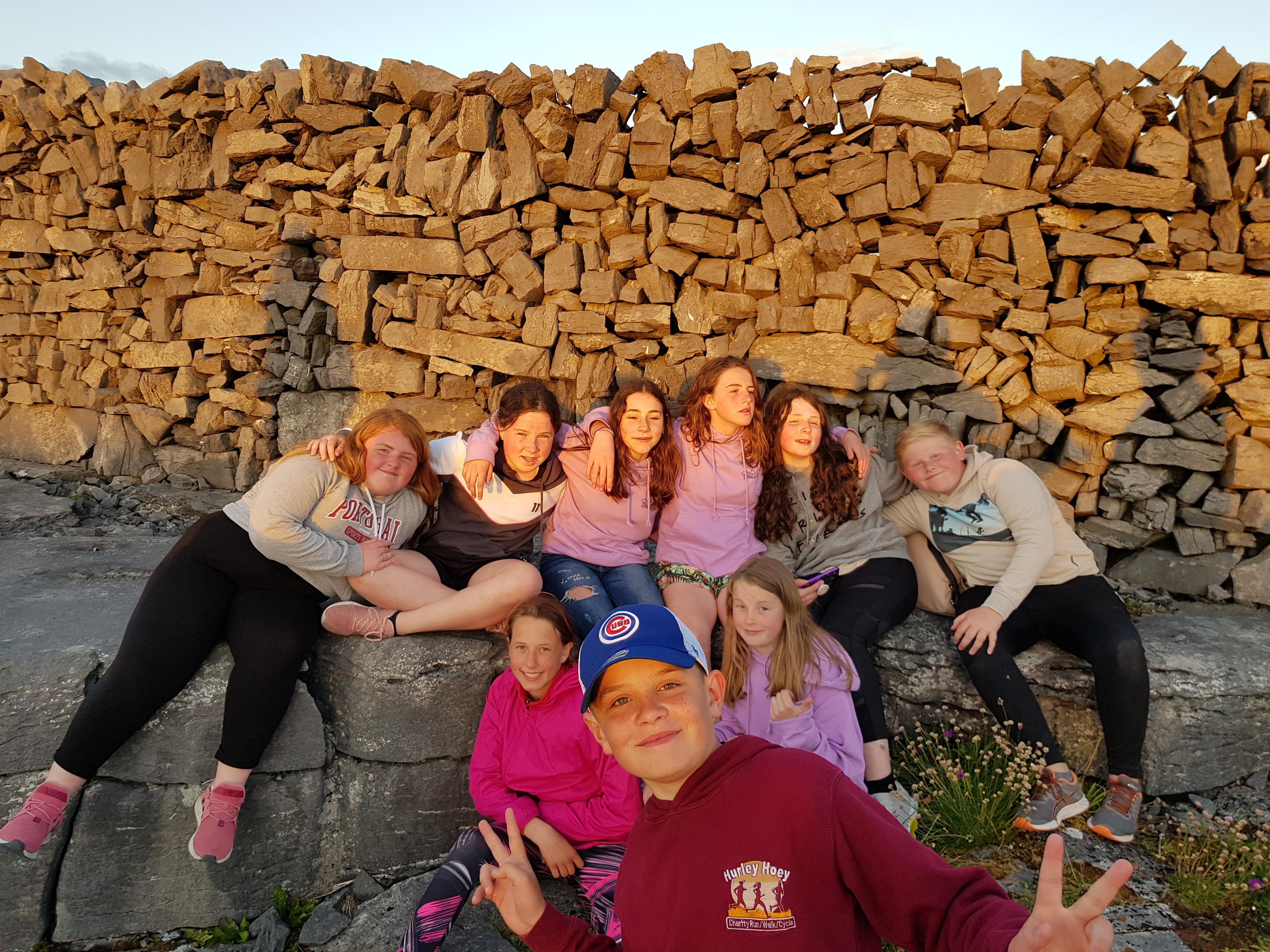 On Wed June 19th 6th class went to Inis Oírr for two nights. When we arrived we went to the hostel and got settled in. Then we were allowed to explore the island. That night we went to a ceile where we danced with people from the Irish College. It was a really wet night so after the ceile we went to bed. We had an early start the next morning. We got up at 6.30 because we didn’t have our phones and we didn’t realise it was that early. We had a lazy breakfast, went for a walk and then went swimming. We also went swimming later that day. The whole class also went to the playground. That night we went for a walk and had a bonfire and hot chocolate!! On the Fri we went swimming and explored the island some more. We also got a ride on the Wanderly Wagon around the island and food at TighRuairís. It was then time to go back to the hostel and head for the ferry. It was an unforgettable experience!!