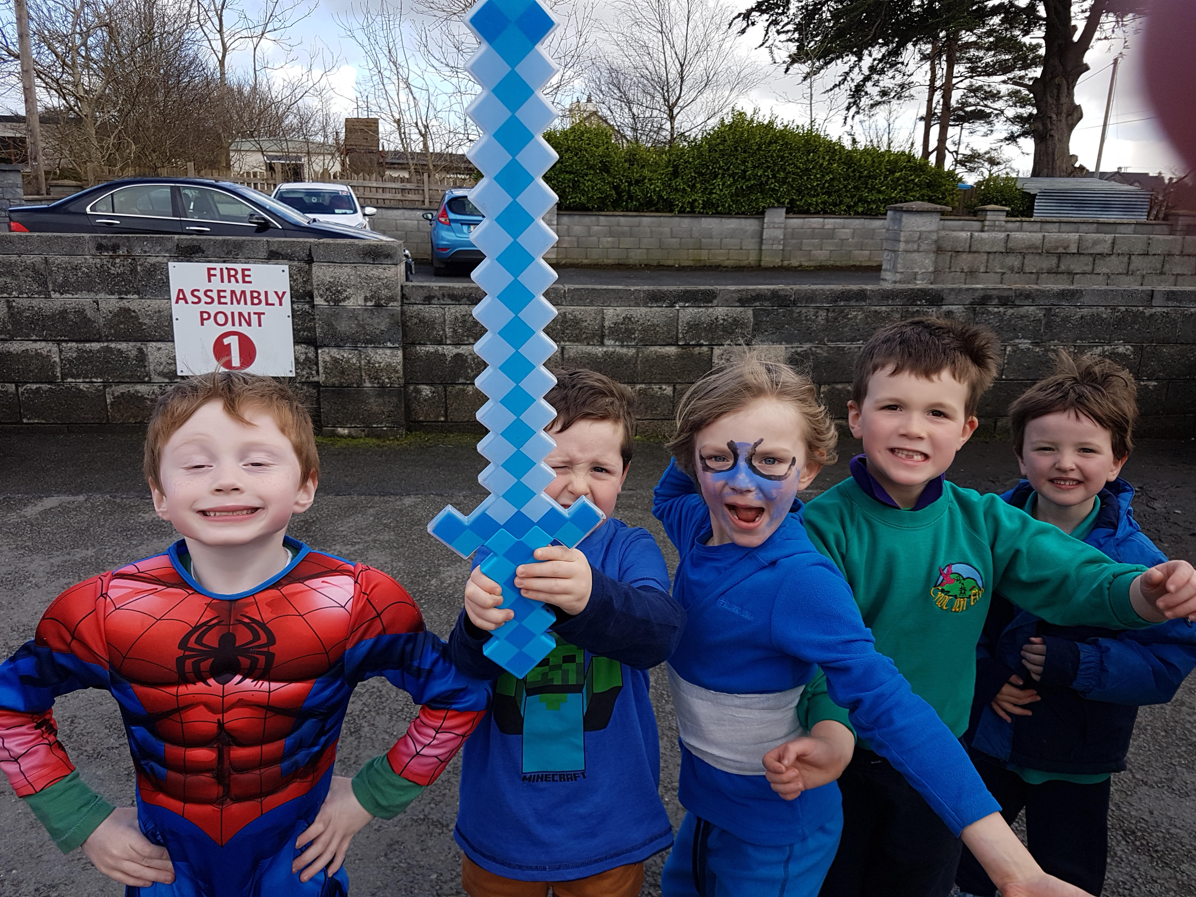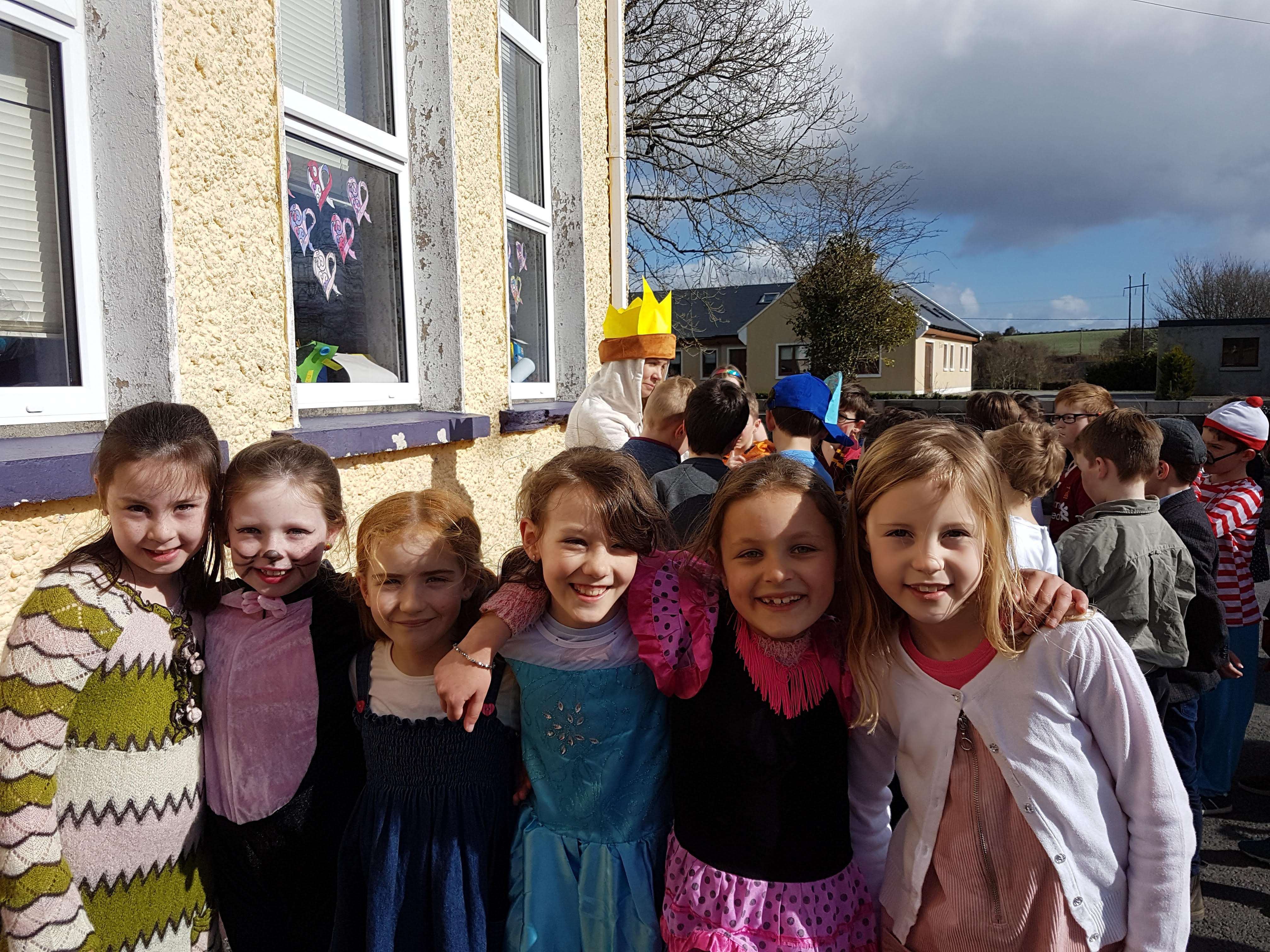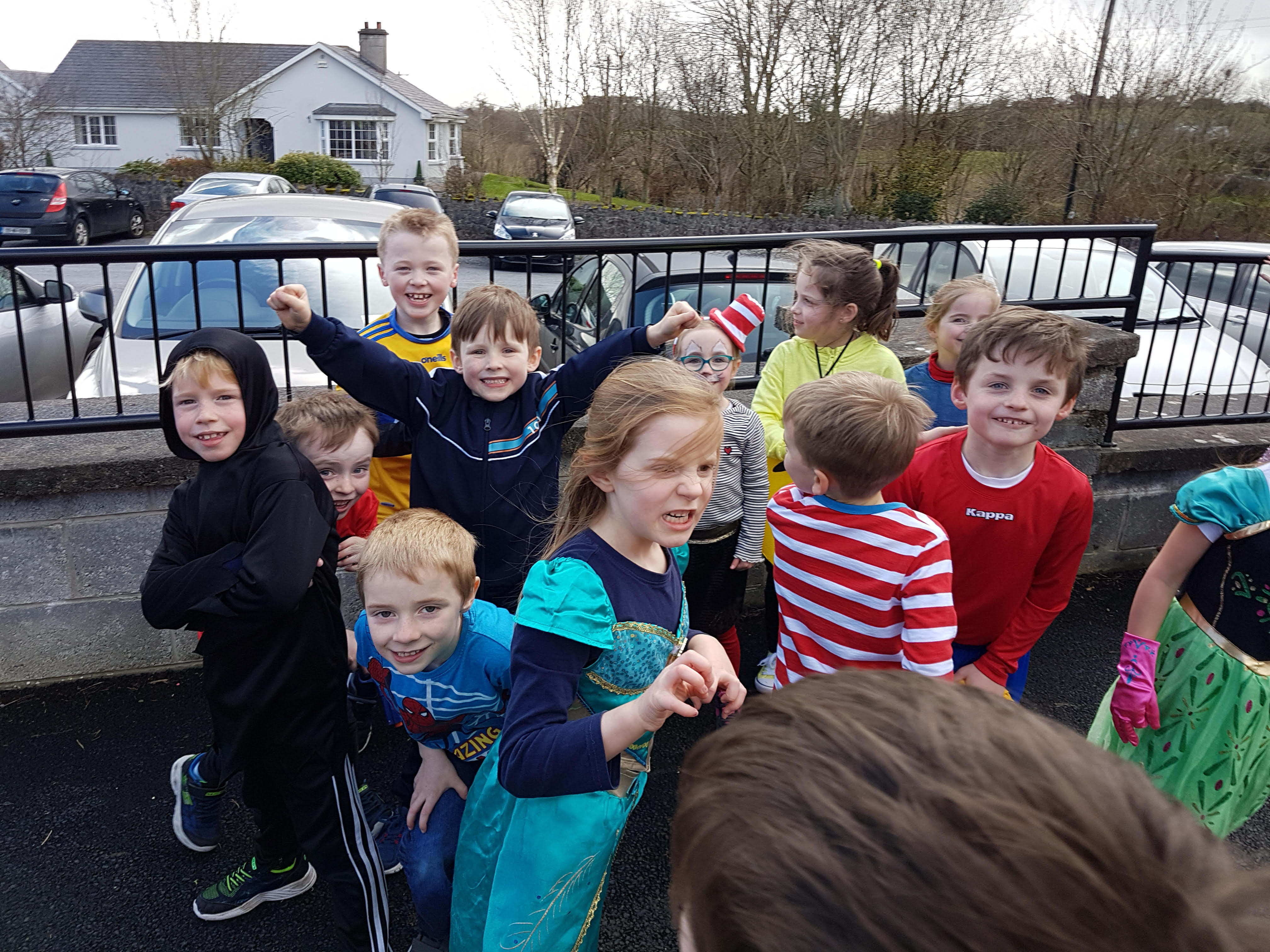 On the 6th of March 2020, Knockanean N.S celebrated World Book Day. Even though World Book Day was on the 5th of March. Everyone dressed up as characters from books and movies. Some of the teachers also dressed up including Mr. Curran who was the BFG, Amy who was the Mad Hatter, Ciara was the Tin Man, Lisa was Mr. Bump, Mr.O’ Reilly who was Pi, Fiona and Shona were both Minnie Mouse and Clarie who was Max from Out of the Wild Things . Each class got their picture taken. This year in every class there was an outstanding number of great costumes however only 3 to 4 people in each class will receive a prize. The teachers will have a hard time picking winners from each class.