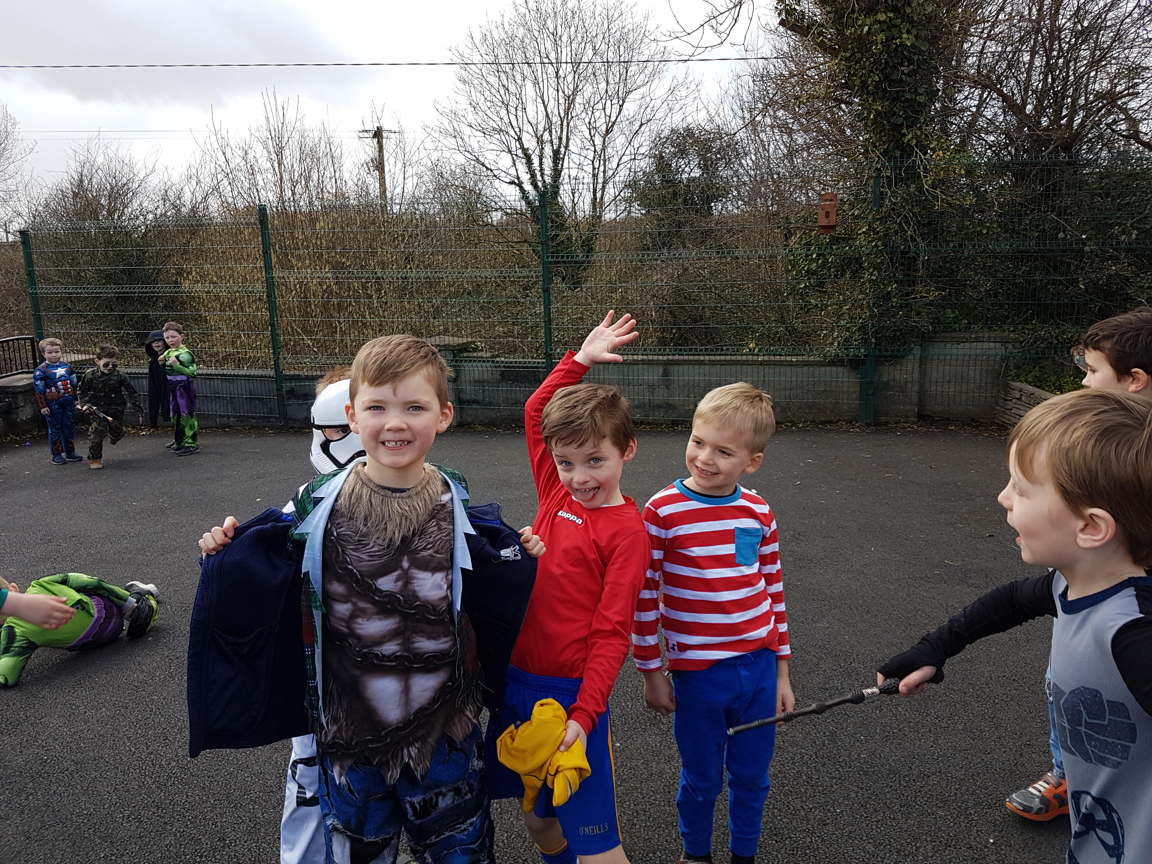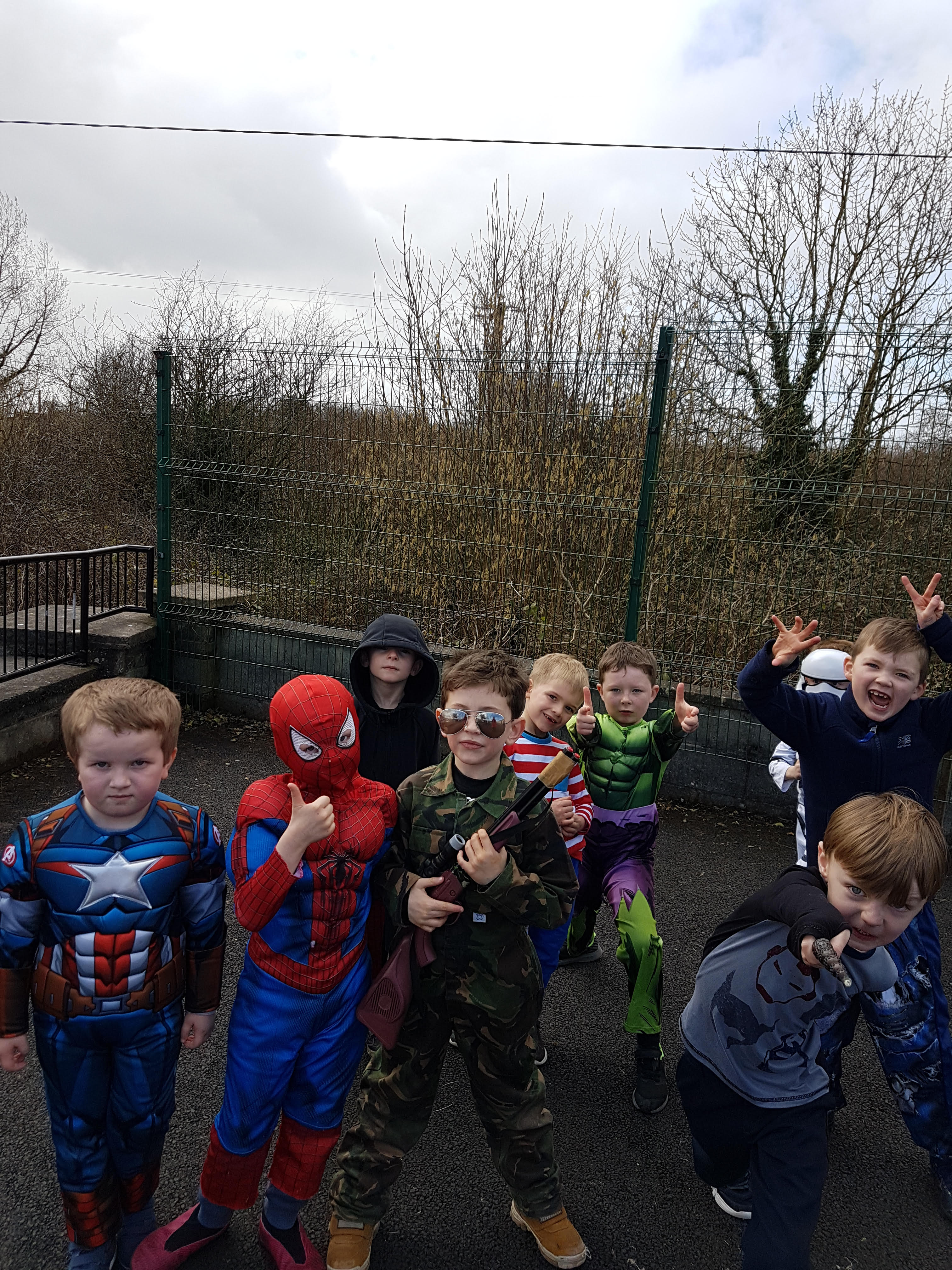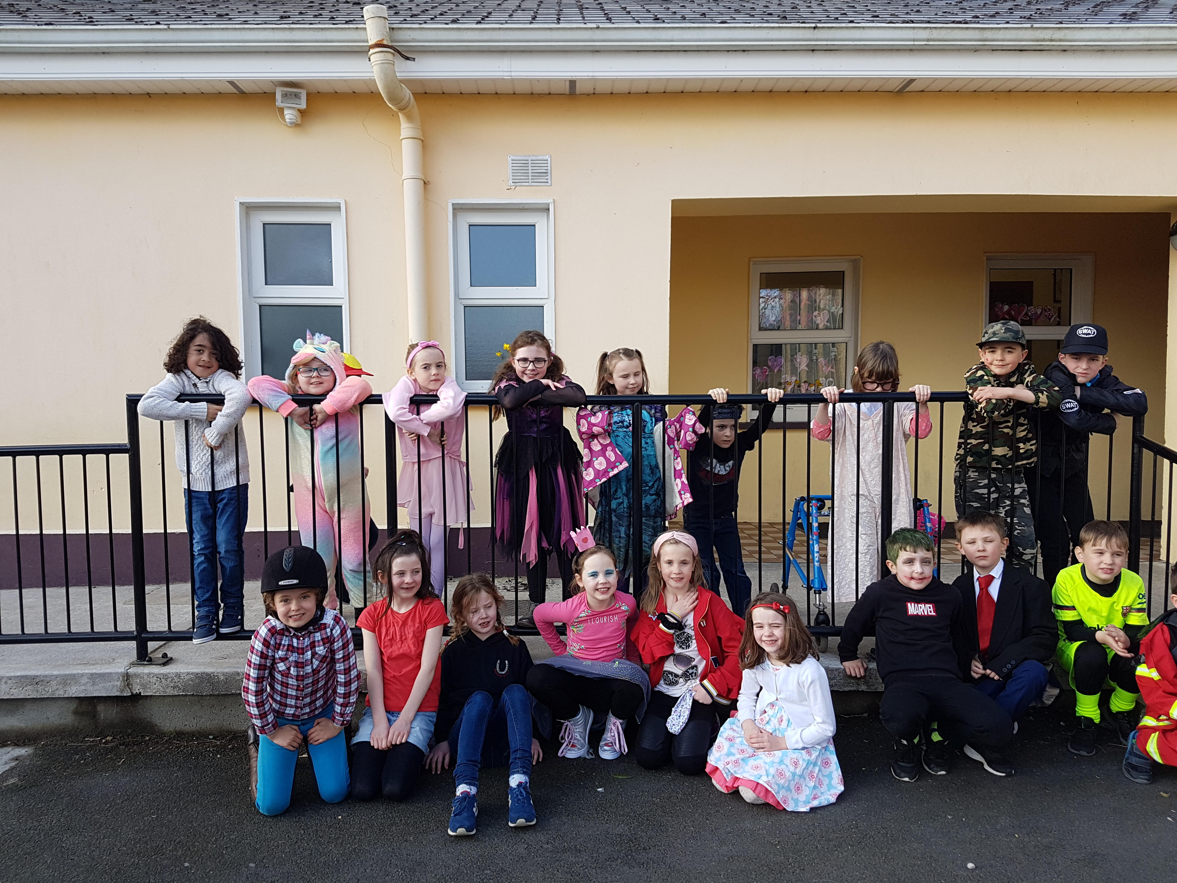 On the 6th of March 2020, Knockanean N.S celebrated World Book Day. Even though World Book Day was on the 5th of March. Everyone dressed up as characters from books and movies. Some of the teachers also dressed up including Mr. Curran who was the BFG, Amy who was the Mad Hatter, Ciara was the Tin Man, Lisa was Mr. Bump, Mr.O’ Reilly who was Pi, Fiona and Shona were both Minnie Mouse and Clarie who was Max from Out of the Wild Things . Each class got their picture taken. This year in every class there was an outstanding number of great costumes however only 3 to 4 people in each class will receive a prize. The teachers will have a hard time picking winners from each class.