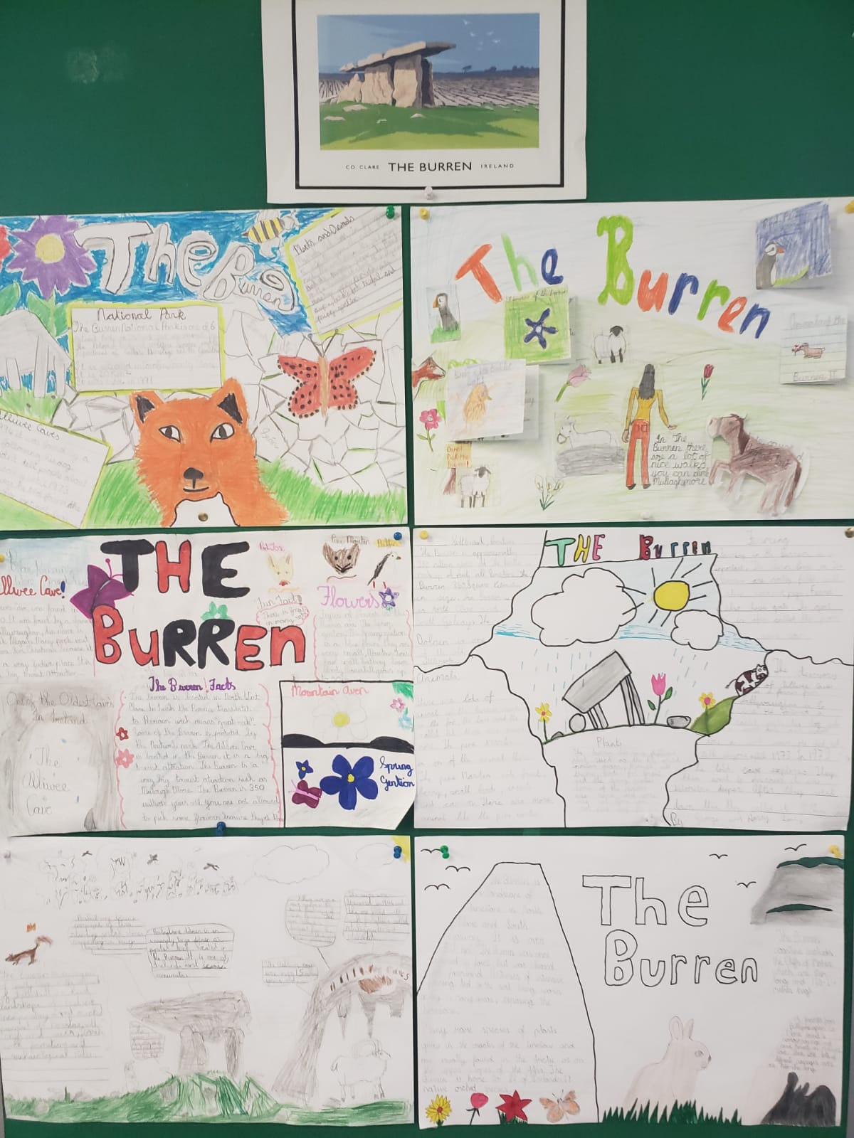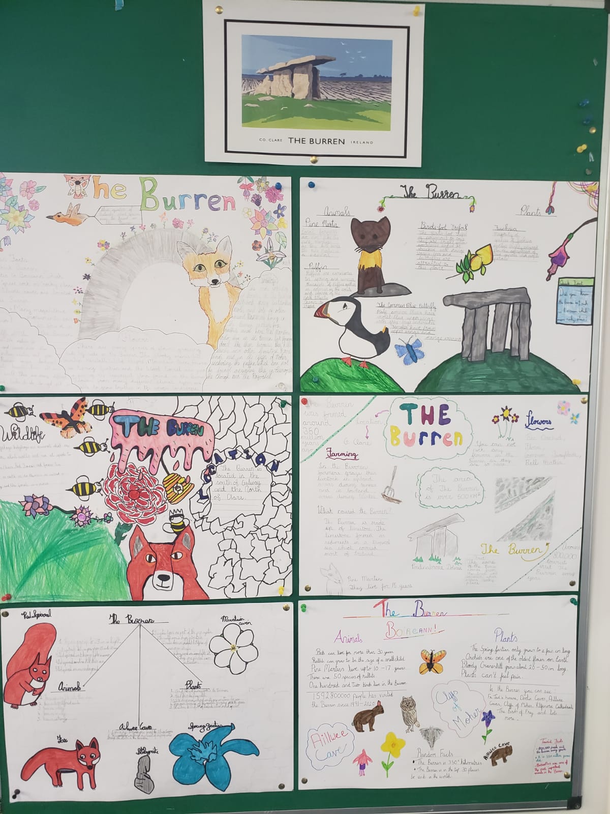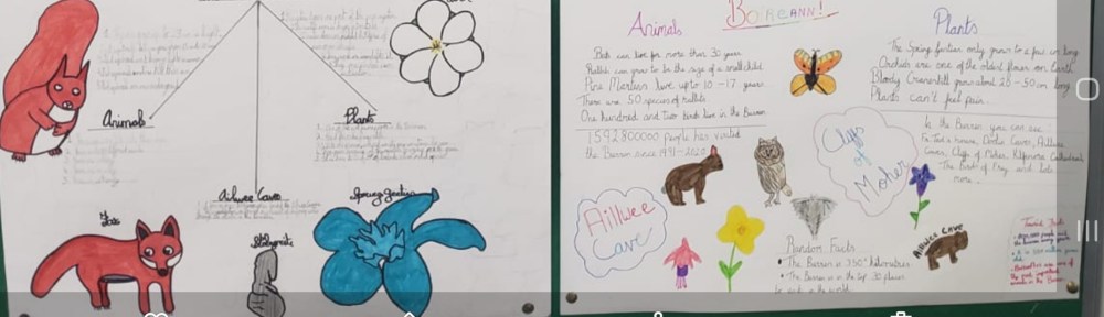 Fifth class took a close look at the unique landscape of the Burren in County Clare. This gem on our doorstep is the home for a diverse range of plants and animals. The children looked at the spring gentian, mountain avens and bloody cranesbill to the foxes, stoats and goats that have made the Burren their home. With the possibility of movement within our county, we can once again enjoy this precious natural resource.
