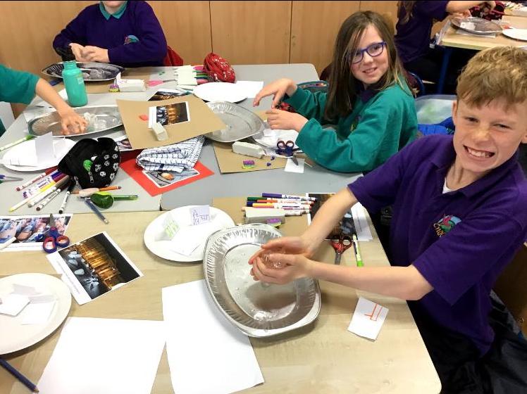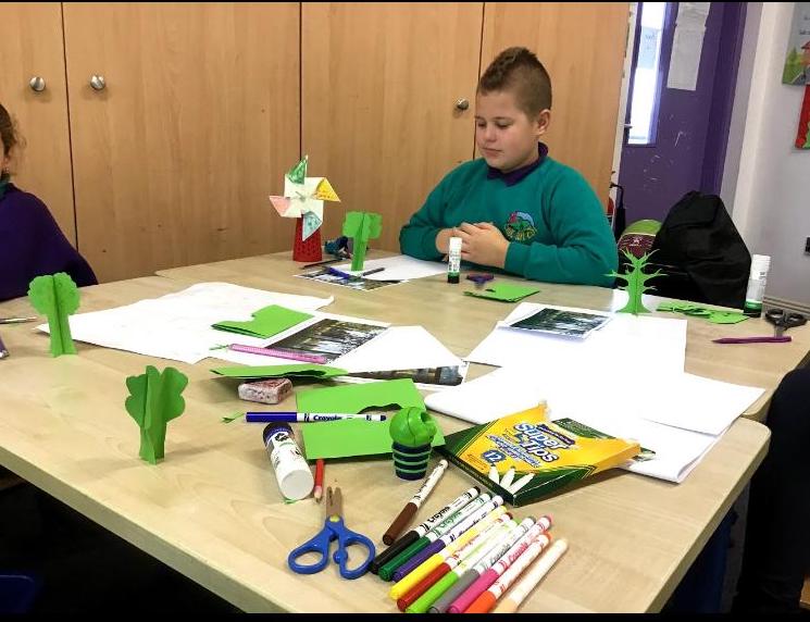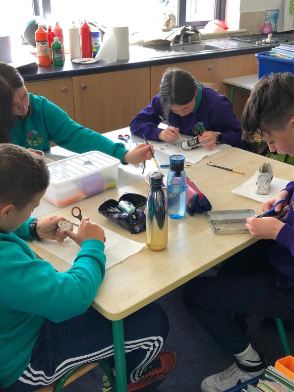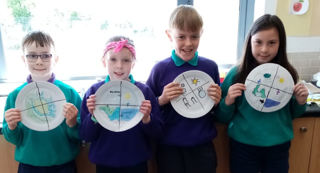 Fourth class were involved in a Caps programme this year. The overall goal of the CAPS programme is to build climate action knowledge through creative, critical, and innovative thinking about the causes and effects of climate change. Environmental artist and teacher Evelyn Sorohan gave a number of workshops remotely through zoom. Again the children are learning to take responsibility for their world as their attitudes and actions matter.