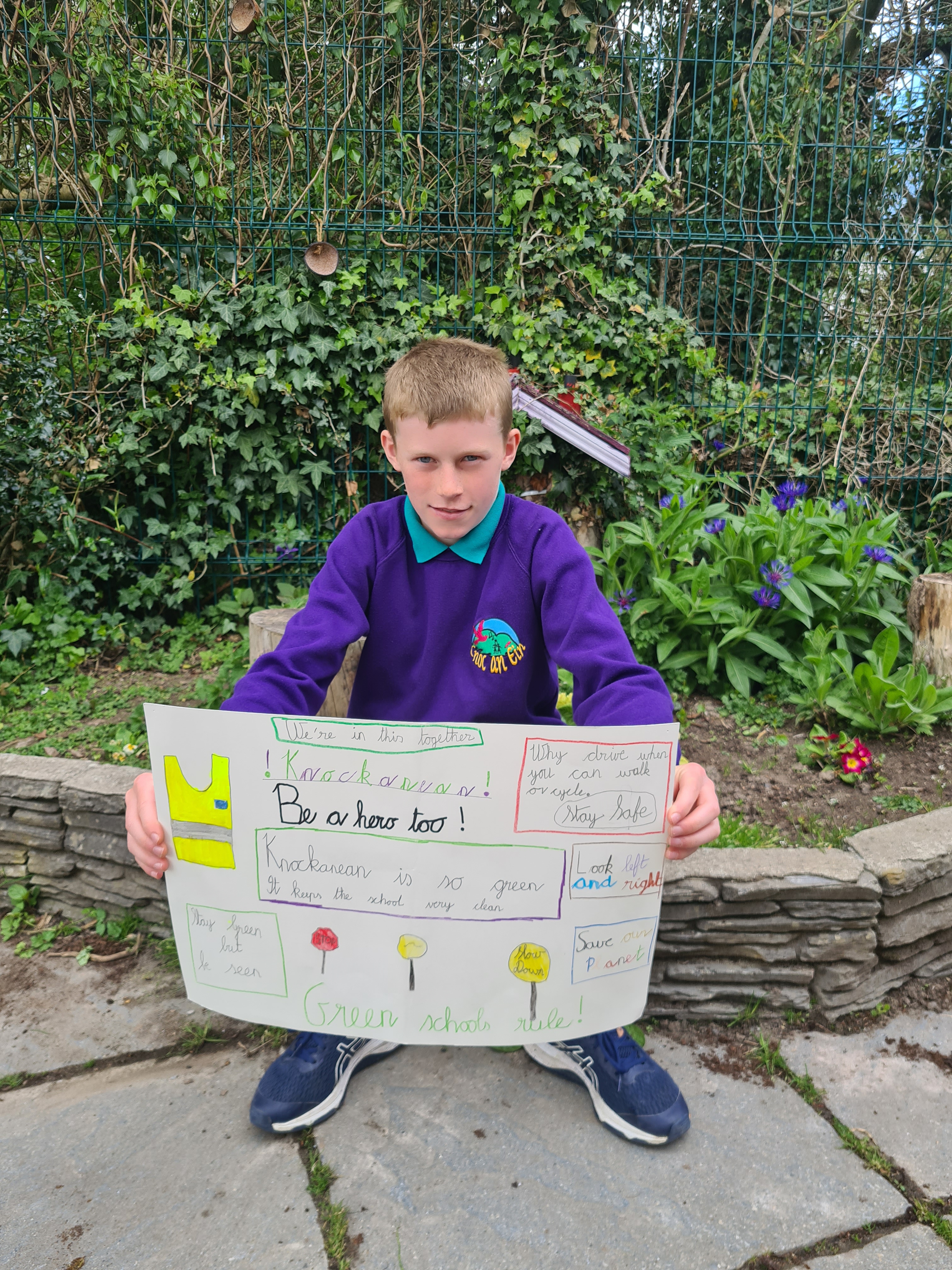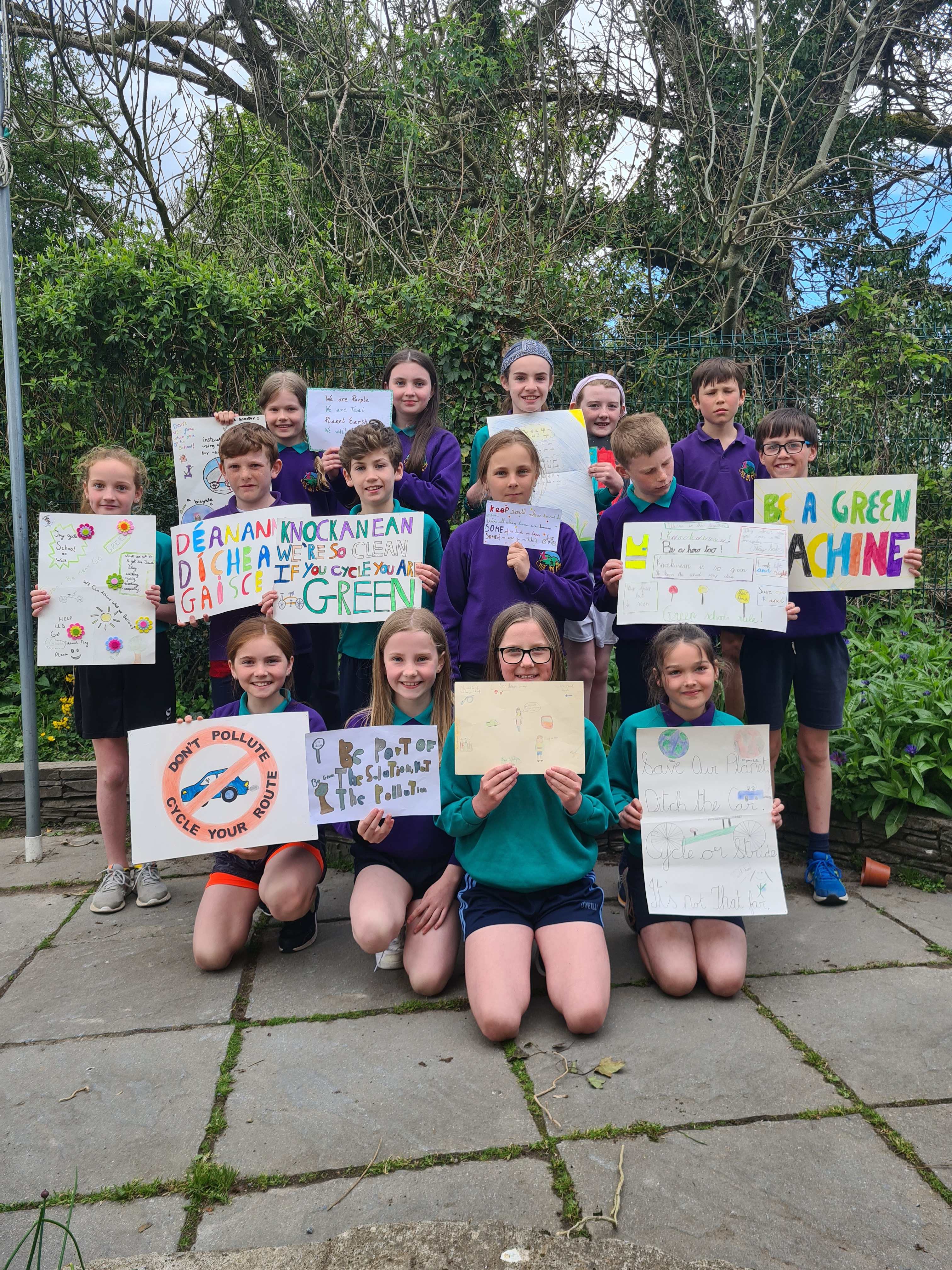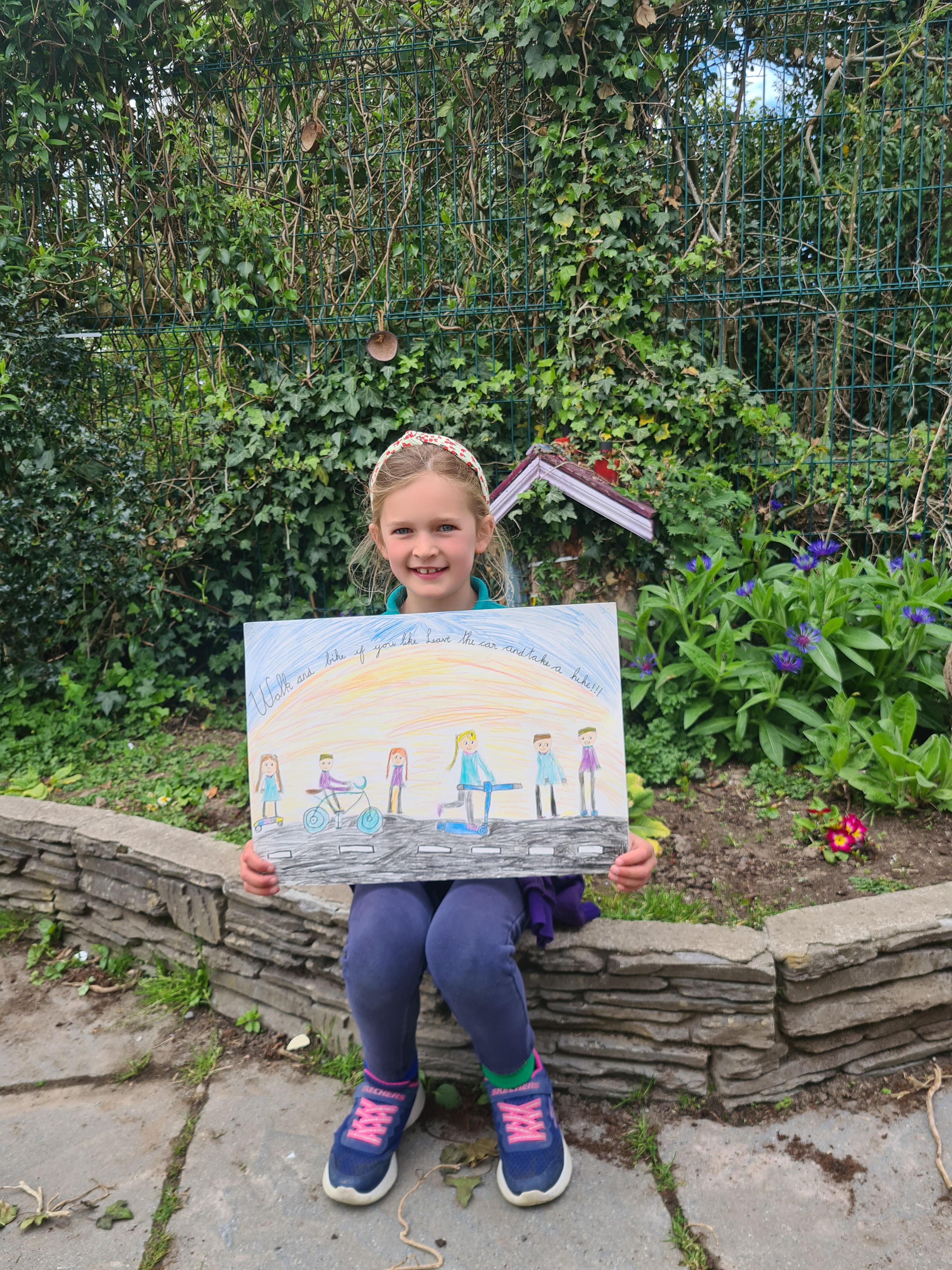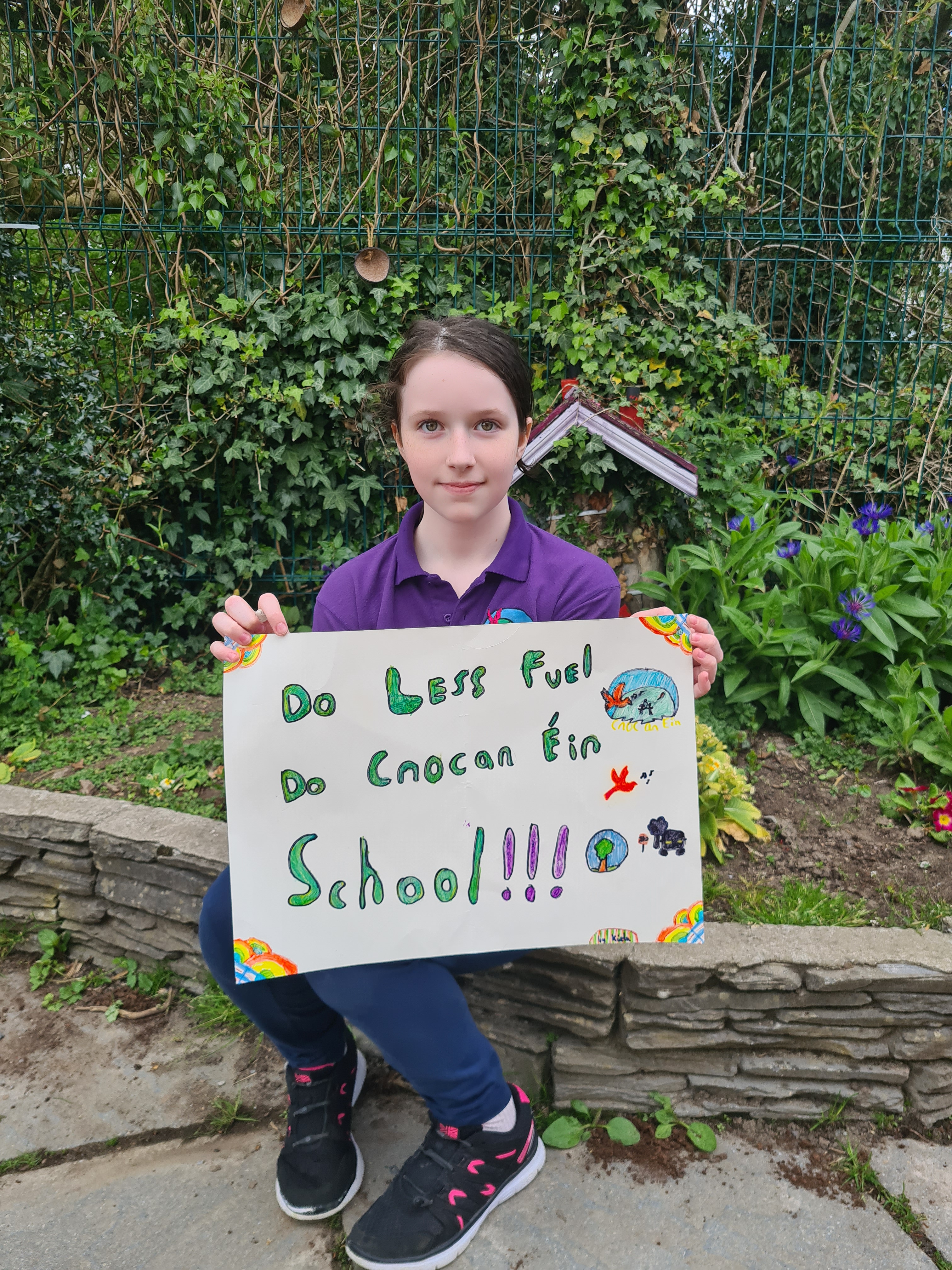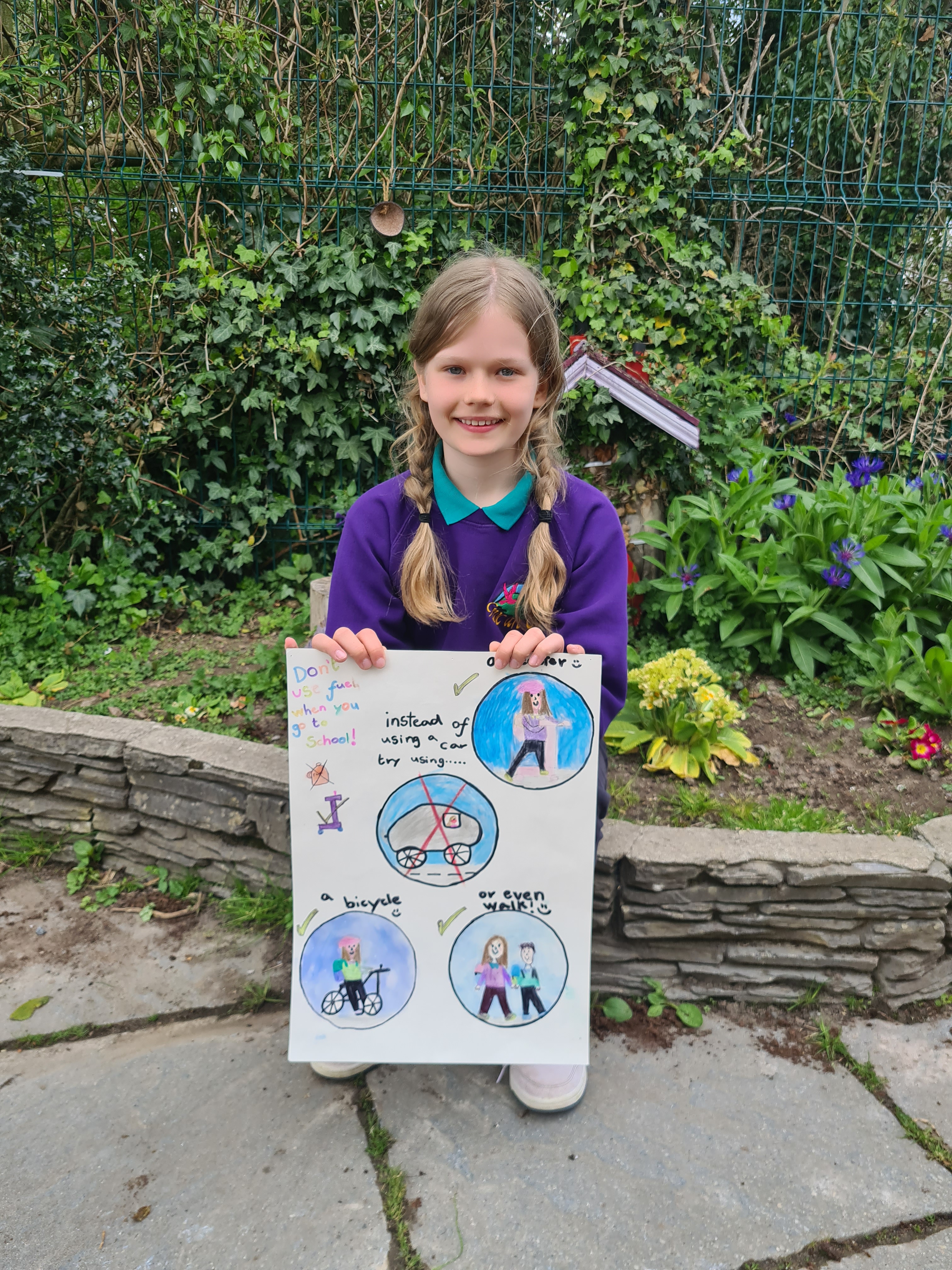 Another idea organised by the Green Schools committee was the poster and slogan competition. The committee invited all the children to come up with a catchy slogan, poem, song or rap and design a poster. The children were given a number of weeks before the closing date of 16th April. There was a huge response to the competition. Below you will see the wonderful posters created by the children and some of the winning entries. The winning slogans are being used in a Travel Song.