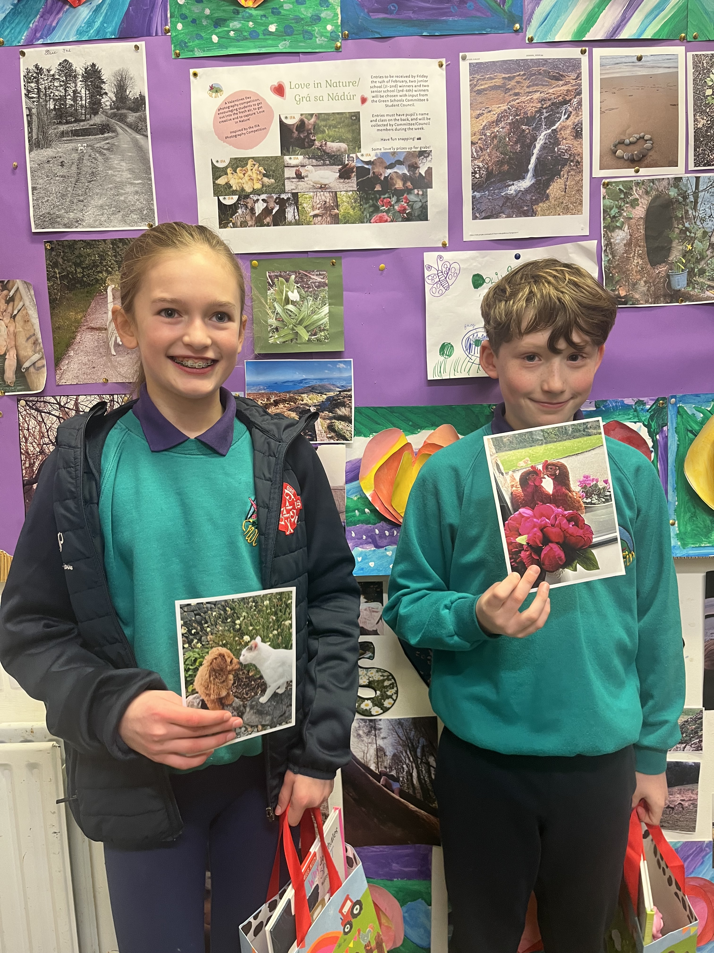 To celebrate Valentine’s Day in school, the Green Schools Committee and Student Council organised a photography competition. This competition, called ‘Love in Nature’ encouraged all students to find love in nature and to capture it in a photograph. There were so many great entries, of animals, plants, people and more! The Committee and Council then chose four winners, which was a very tricky task. The junior school winners were Rua Ryan and Clara O’Brien (first class), and the senior school winners were Teddy Courtney (fourth class) and Beibhinn Curran (fifth class).