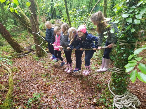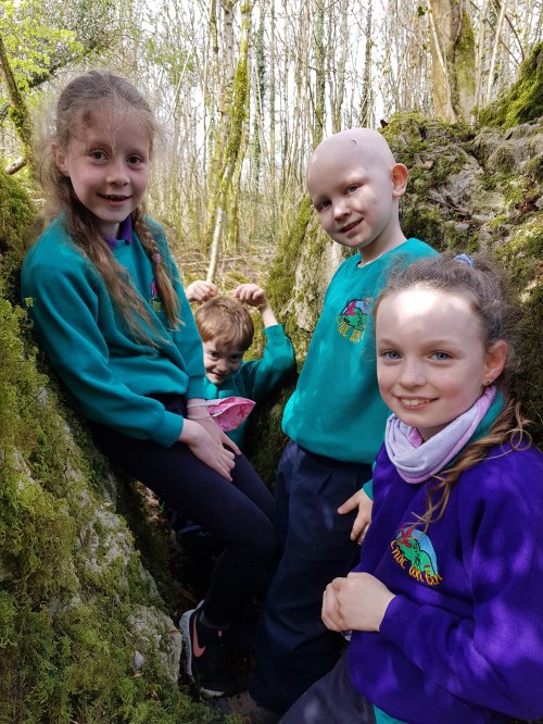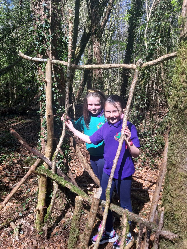 This year the first classes have been taking part in a Creative Cluster. This involves working together with two other Ennis based schools, the C.B.S and St. Annes. Unfortunately, due to Covid the essence of the project which is building friendships and relationships with other schools has not been able to take place. Despite the setbacks, we have been very lucky to take part in a Forest School Experience as part of our biodiversity project. The children spend an hour and a half each week working in the forest in Lees Road, learning about the biodiversity of the woodlands and learning new skills in this beautiful woodland setting. The school is facilitated by Veronica McGuire and Gráinne Vaughan who set up the Happy Out Forest School in 2017. Each week they introduce the children to different forest activities where they learn to develop new skills beneath the canopy of the trees.