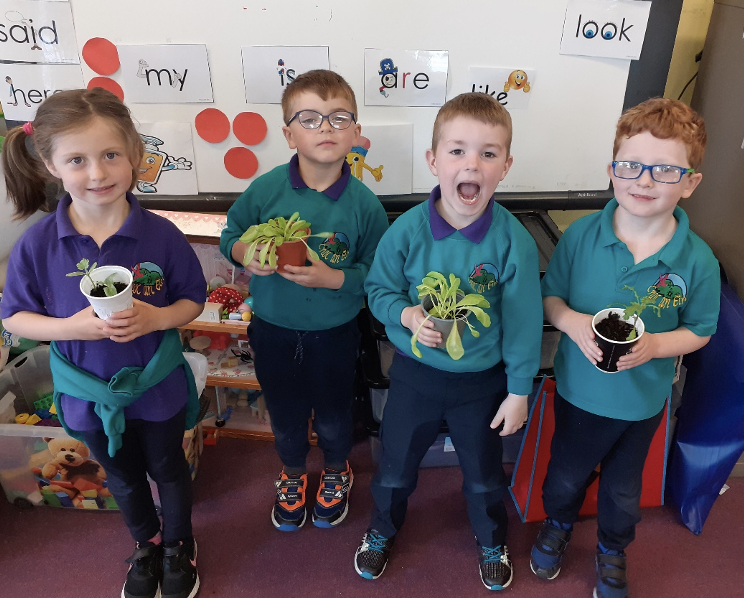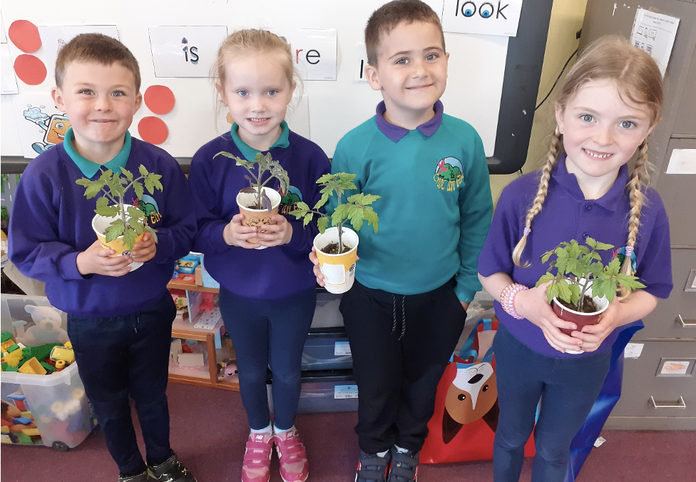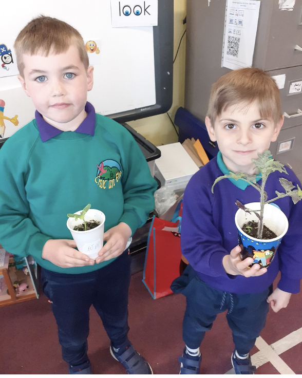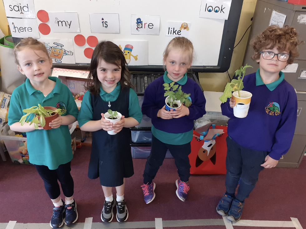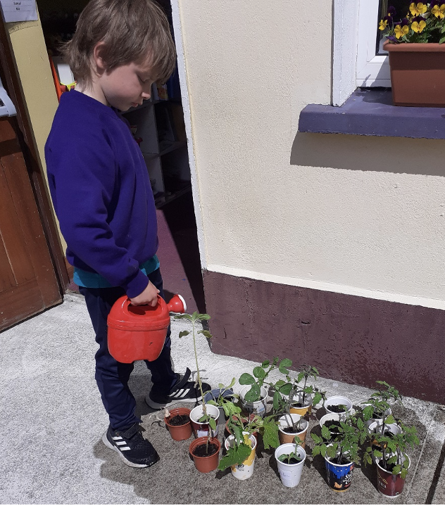 The junior infants are proving to have green fingers already! They planted sunflower seeds and watched them grow. They have taken them home now to care for them. Some have already been planted in the garden to bring a splash of yellow during the summer. They also planted strawberries, tomatoes, broad beans, watermelon and cucumber. We have a little cottage garden in the making!