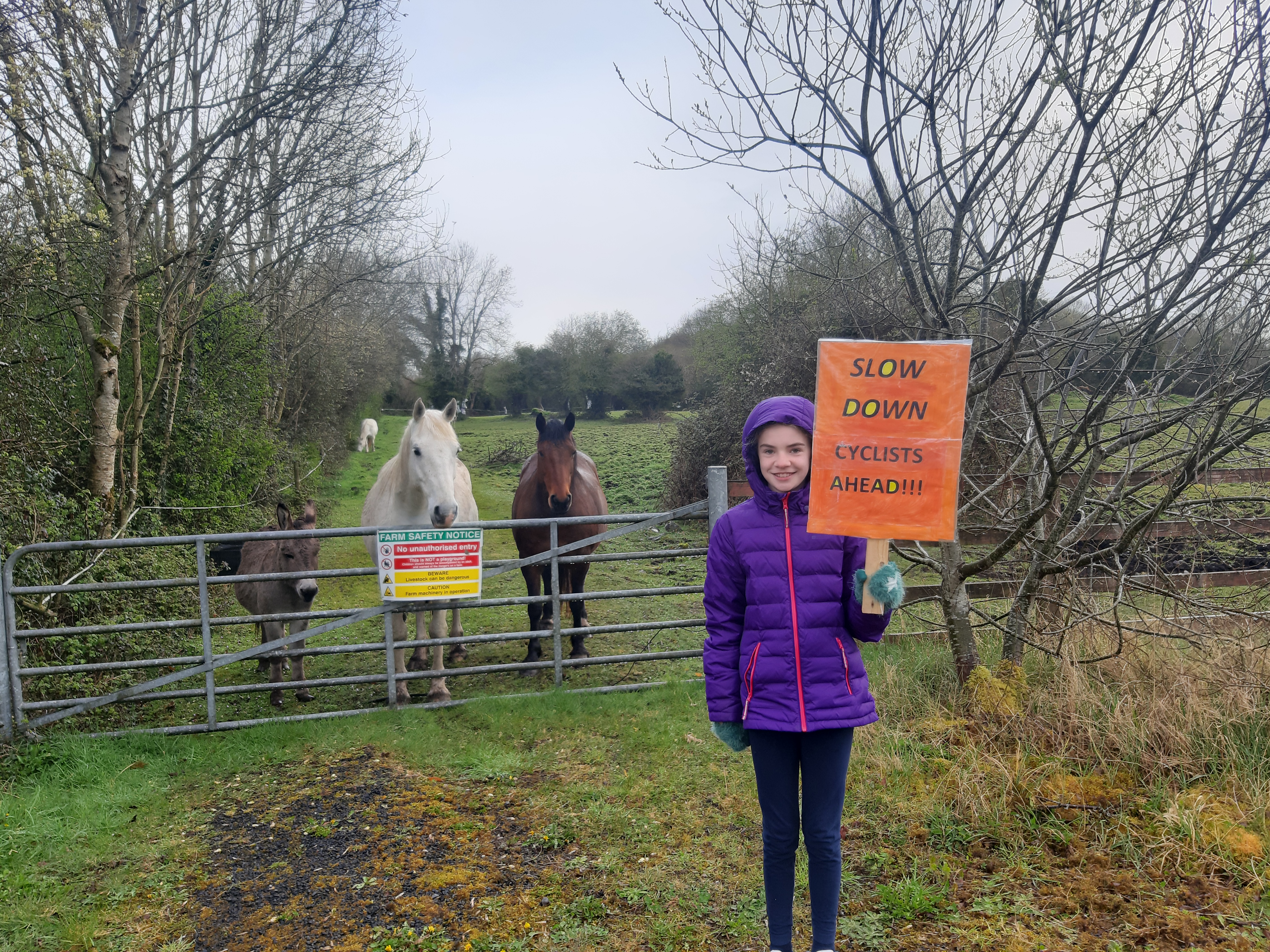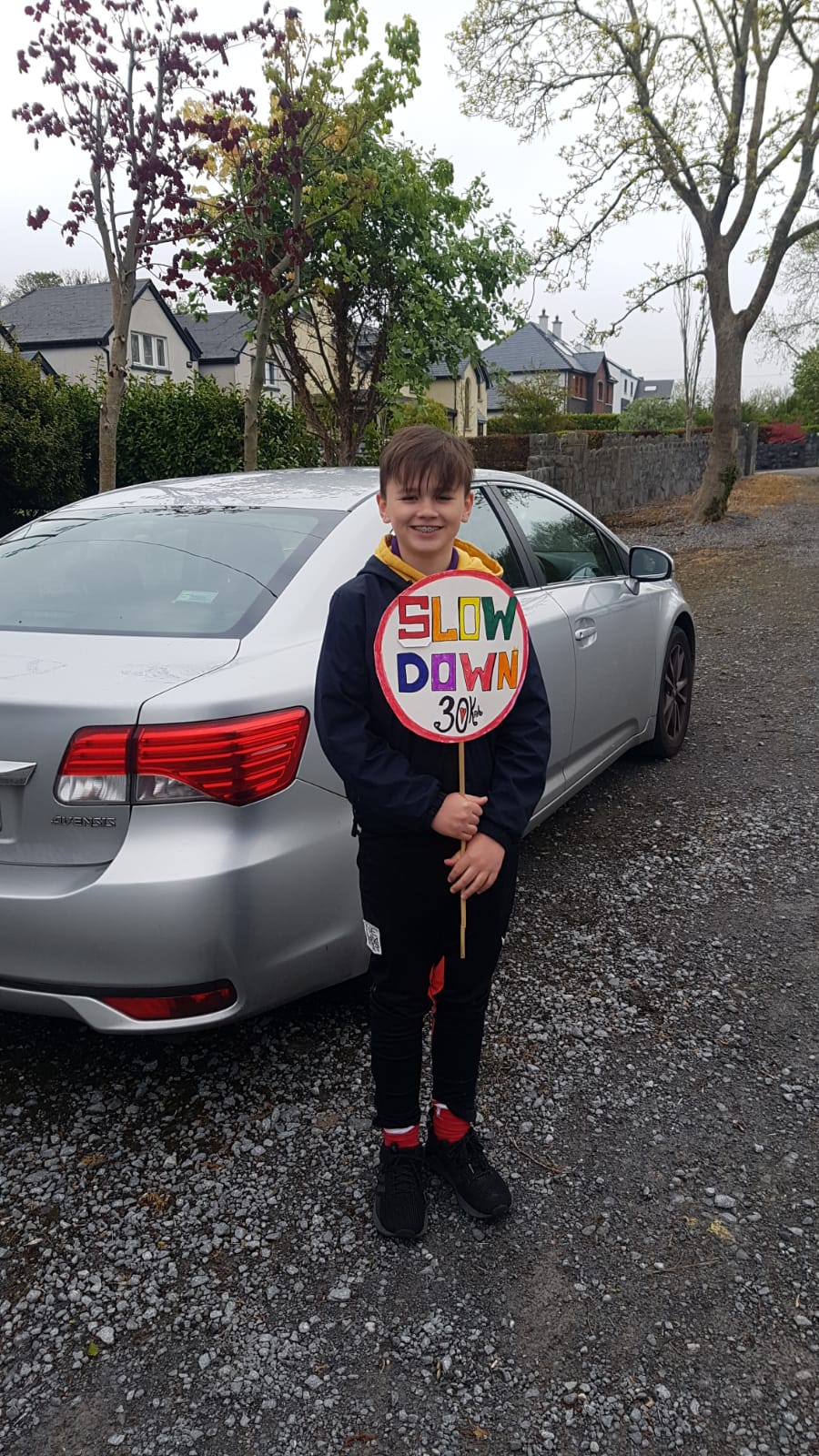 The Green Schools Committee met up to discuss their ideas for the next few months. They recognised this increase in the numbers walking and cycling to school and it was decided that the safety of the children was an important focus. It was suggested that a Traffic Calming Campaign was necessary. The committee wanted to remind drivers that there were now more children using our roads and pathways and that the traffic needed to slow down. And so began the campaign.