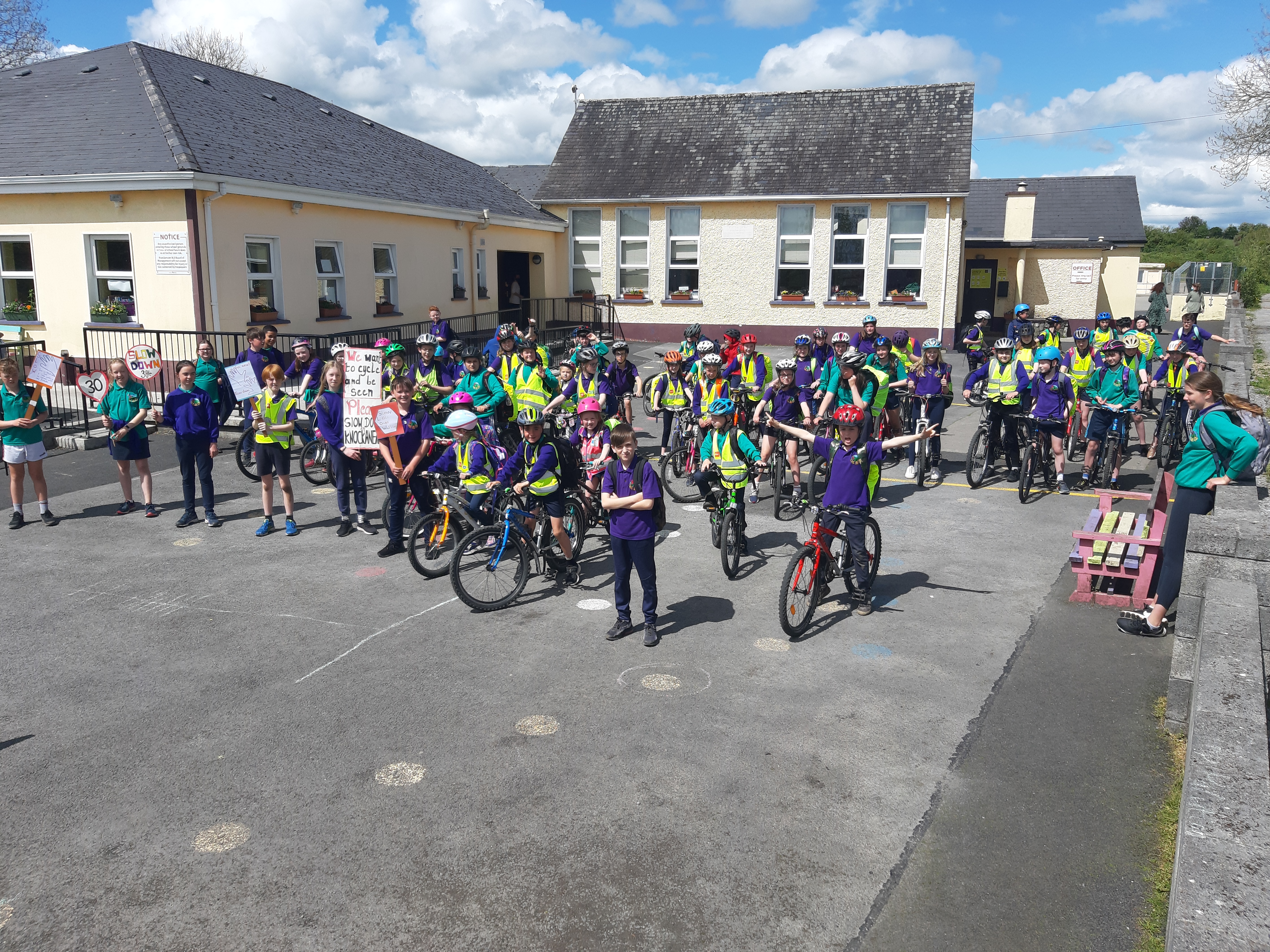 The campaign has been a successful one. More and more children are cycling and walking to school. It was decided to conduct another survey on the 12th April to compare with our 2019 survey. It was discovered that over the week from 1st to 6th class, 16% of the children walked to school, 17% cycled and 11% car – pooled with friends and 56% came by car with parents. It was such a wonderful change for the better.