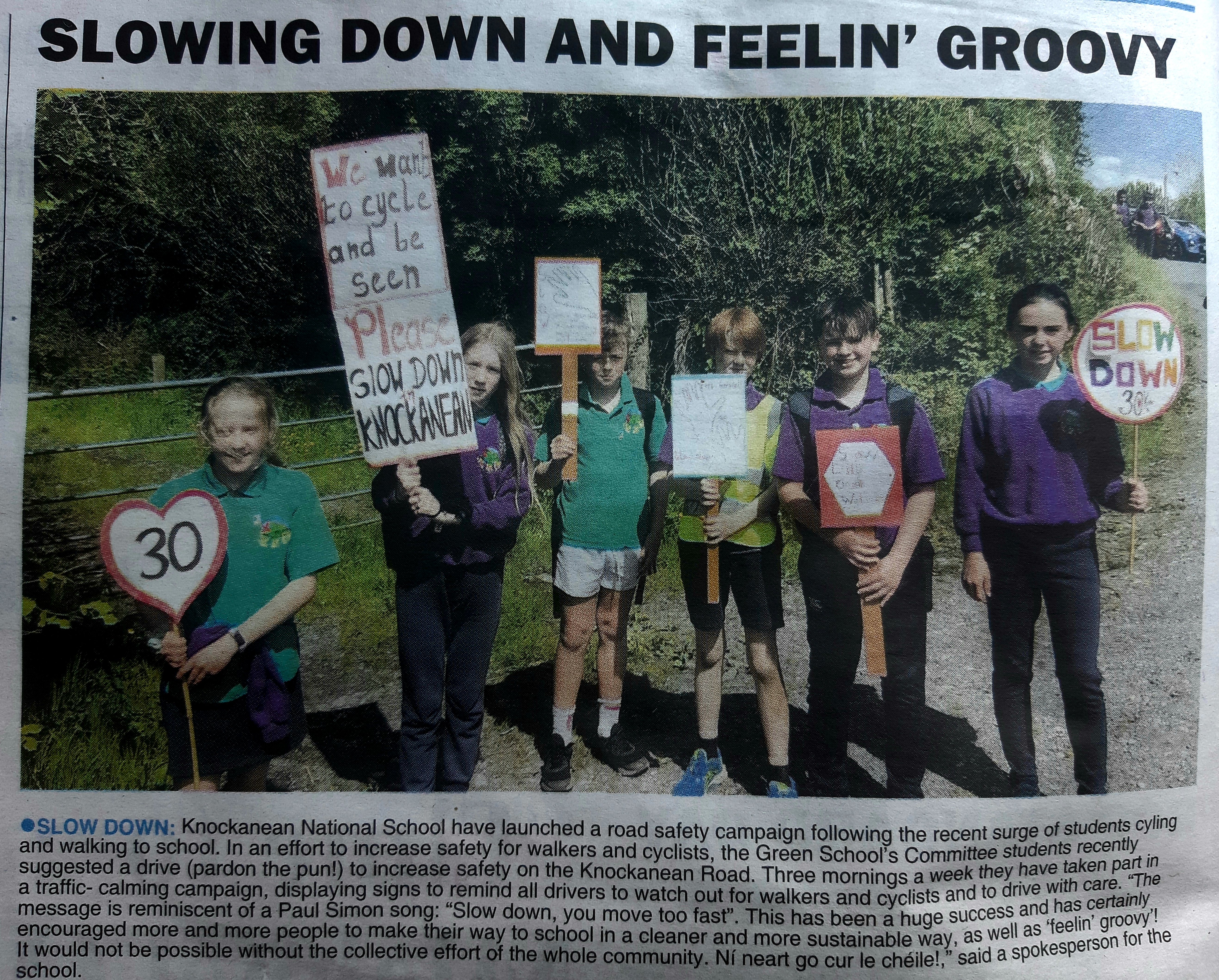 The Clare Echo published an article on the Traffic Calming Campaign. There was a need for change in line with a familiar Paul Simon song ‘Slow down you move too fast’.