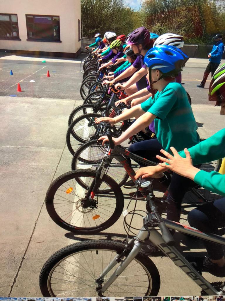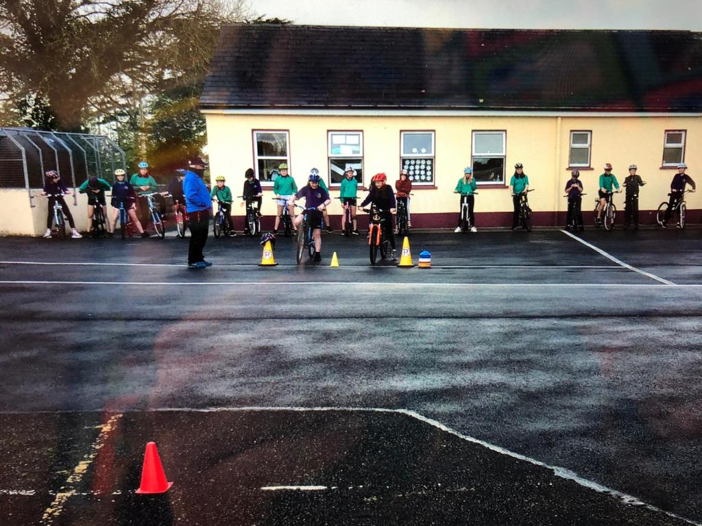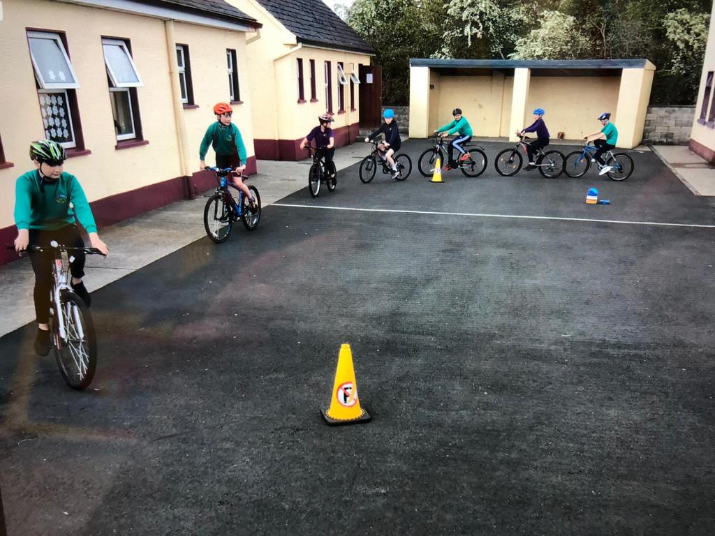 This week and last week, sixth class did a cycle safety course. The instructors Richard and Leroy taught us how to be aware and safe on the road. They taught us to do an emergency brake fast and to do proper indications. We did this course in the space of two weeks. Richard and Leroy are trying to teach every school in Clare to cycle safely.