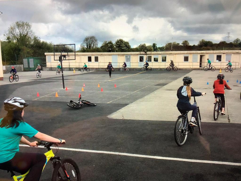 We did this course because many kids in our school have started to cycle. We are trying to get the Green Schools travel flag. One of our drills involved using the left and right hand signal, and turning your head to look behind. At the end of the day everyone enjoyed doing the training.