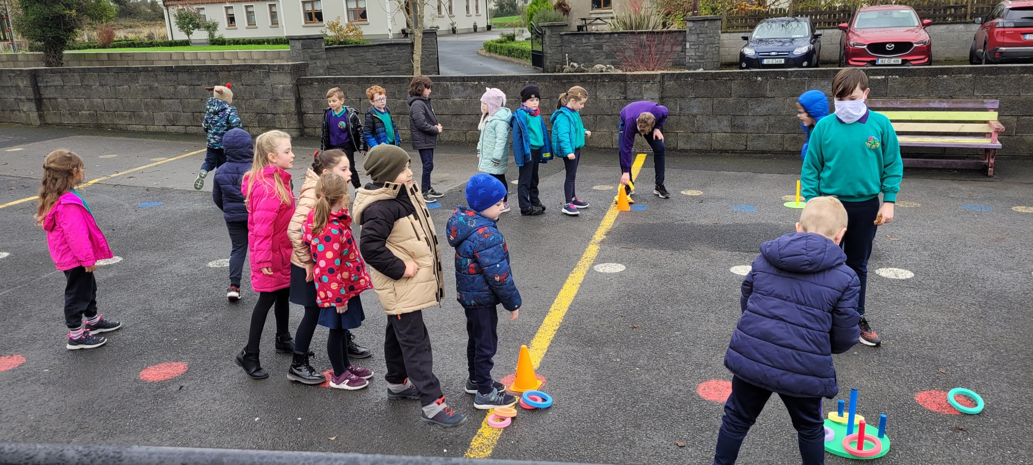 Every Friday we set up and teach Juniors, Seniors and 1st class, builders and bulldozers, life saver tag, ring toss, relay races and lots more. It’s a lot of fun to play with them and to teach them new games. The younger classes are really enjoying this and we can see them getting better from week to week. We hope the weather continues to be good so we can do this every Friday