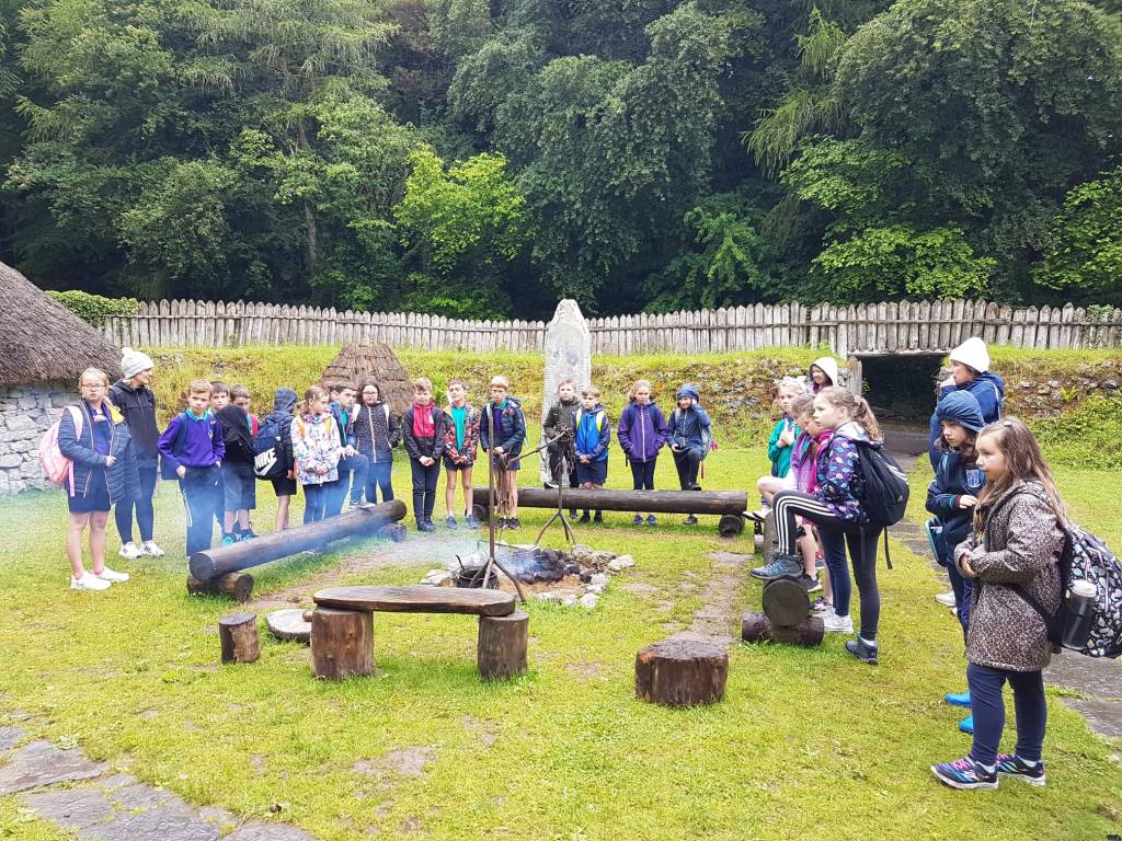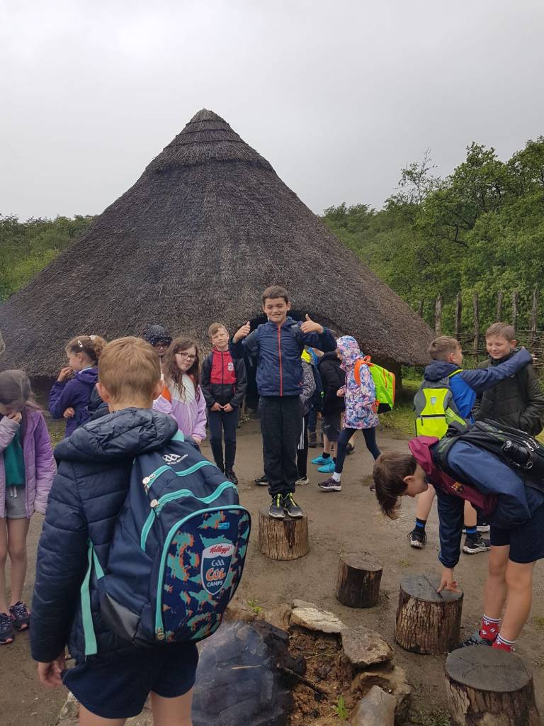 On June 9th we went on our tour to Cragganowen. In Cragganowen we saw donkeys, goats and boars. We went inside huts. It was really dark and there was a hole in the roof. There were stools inside the huts to sit on. There was also wet straw on the floor. We also saw the boat used by St Brendan on his voyage to America. We also saw the Fulacht Fia which was used to cook food. We ate our lunch, got back on the bus and went to The Planet. Here we played laser tag and bowling. We had a really great time on our tour.