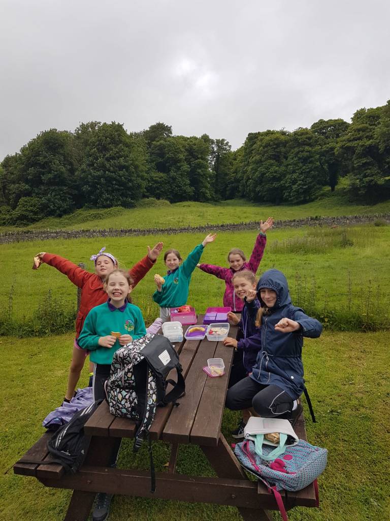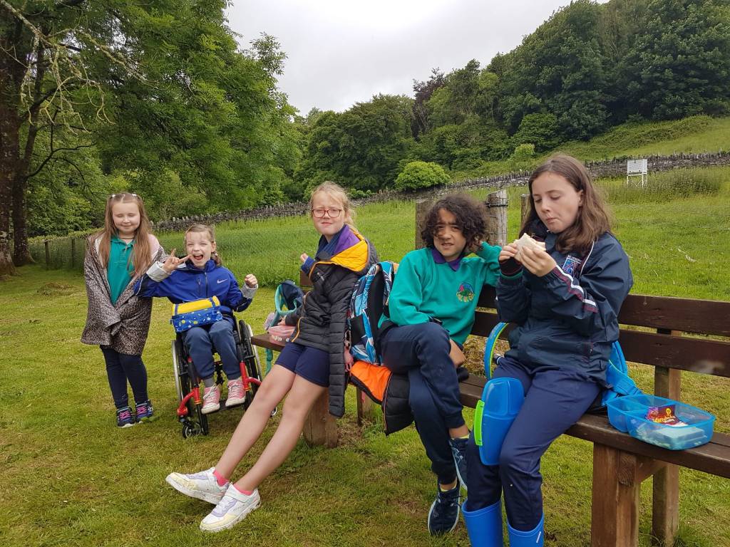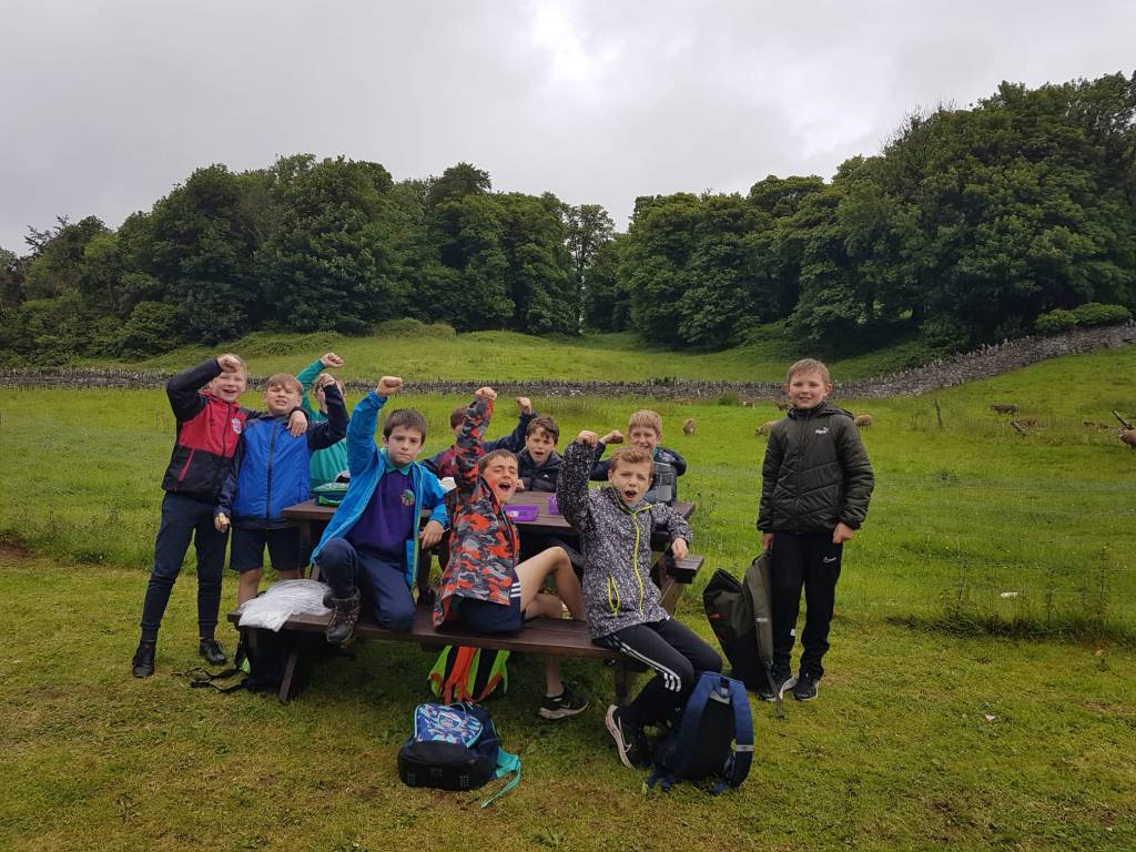thought that Mullaghmore looked like a giant cinnamon bun from far away. When we got there we walked along a track and saw loads of different wildflowers like the bloody cranesbill, the dog rose, orchids and even saw two little frogs. When we got onto Mullaghmore we befriended two local dogs, we named them Peg and Eddie. We think they could have been the unofficial guides of the mountain so we were glad of their company and their guidance. When we got half way to the top we stopped for a snack and a quick rest. After this the climb got steeper and our legs were getting very tired and sore. We eventually got to the top and we started cheering everyone on once they got there, it was good fun. We had our lunch at the top and then decided to do a bit of rock climbing for fun. Saoirse then encouraged us to have a “Mindful Moment”, so we closed our eyes and listened to all the different sounds on the mountain. We opened our eyes and took in all the beautiful views. It looked like there was a few different types of weather on all sides of the mountain. We even saw Father Ted’s house and Michelle played the theme tune for us too. We took a different route coming down, and it seemed way faster to us. We got back on the bus and went for ice-cream before coming back to school. Overall it was a great day and we can’t wait to go up again and hopefully bump into Peg and Eddie again.