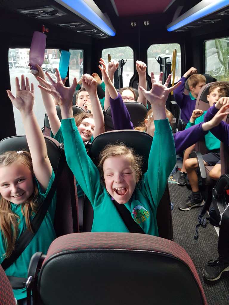 We went to Lee’s road on school tour. We all went there on a big white and black bus. It was so much fun. We brought our lunch and some treats with us in our bags, we were so excited. When we got to Lee’s road we played lots of games with the parachute, played soccer and went to the playground. We also went for a long walk in the woods, we saw birds, a bumblebee, and lots of dogs, and we think even maybe saw bear tracks. We went on the wooden playground too and even played in a house made of sticks. We drove back to school but stopped for ice-creams on the way. We had such a fun time that some of us even fell asleep on the way back to school.