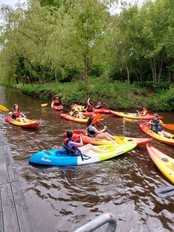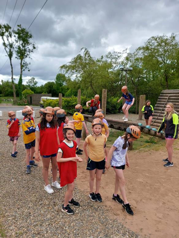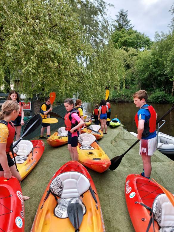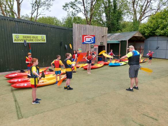 On May 31st we went to Derg Isle Adventure centre. When we get there we got changed. Firstly we went to the obstacle course area. We had to go through tyres, over wooden poles, climb over nets, and jump over and under barriers. After the obstacle course, we did team games, where we had to work in teams of about 8 to solve puzzles and complete tasks. We then put on lifejackets and went kayaking. When we were kayaking the man on the speedboat started to make waves which meant it was more difficult for us and more fun for us. We were able to get out of the kayaks and float on the water. In between the obstacle course and the kayaking we had our lunch. Some people also chose to do stand-up paddling. We had a really good day!