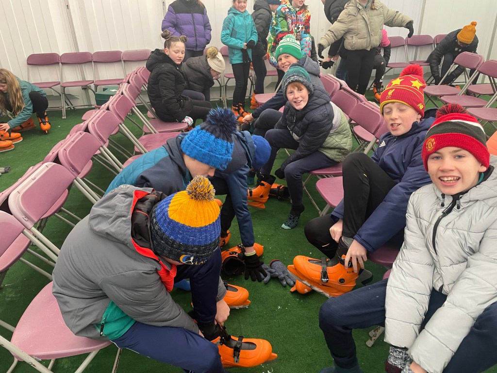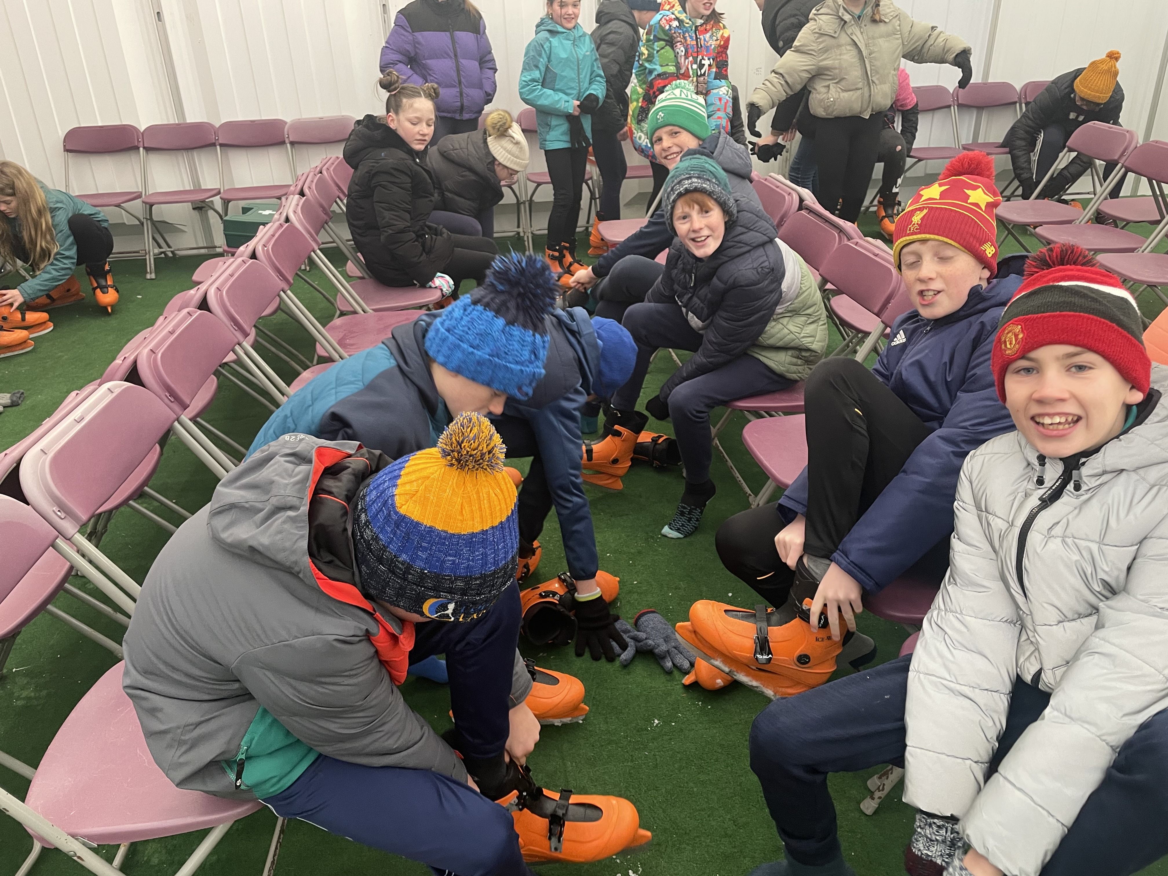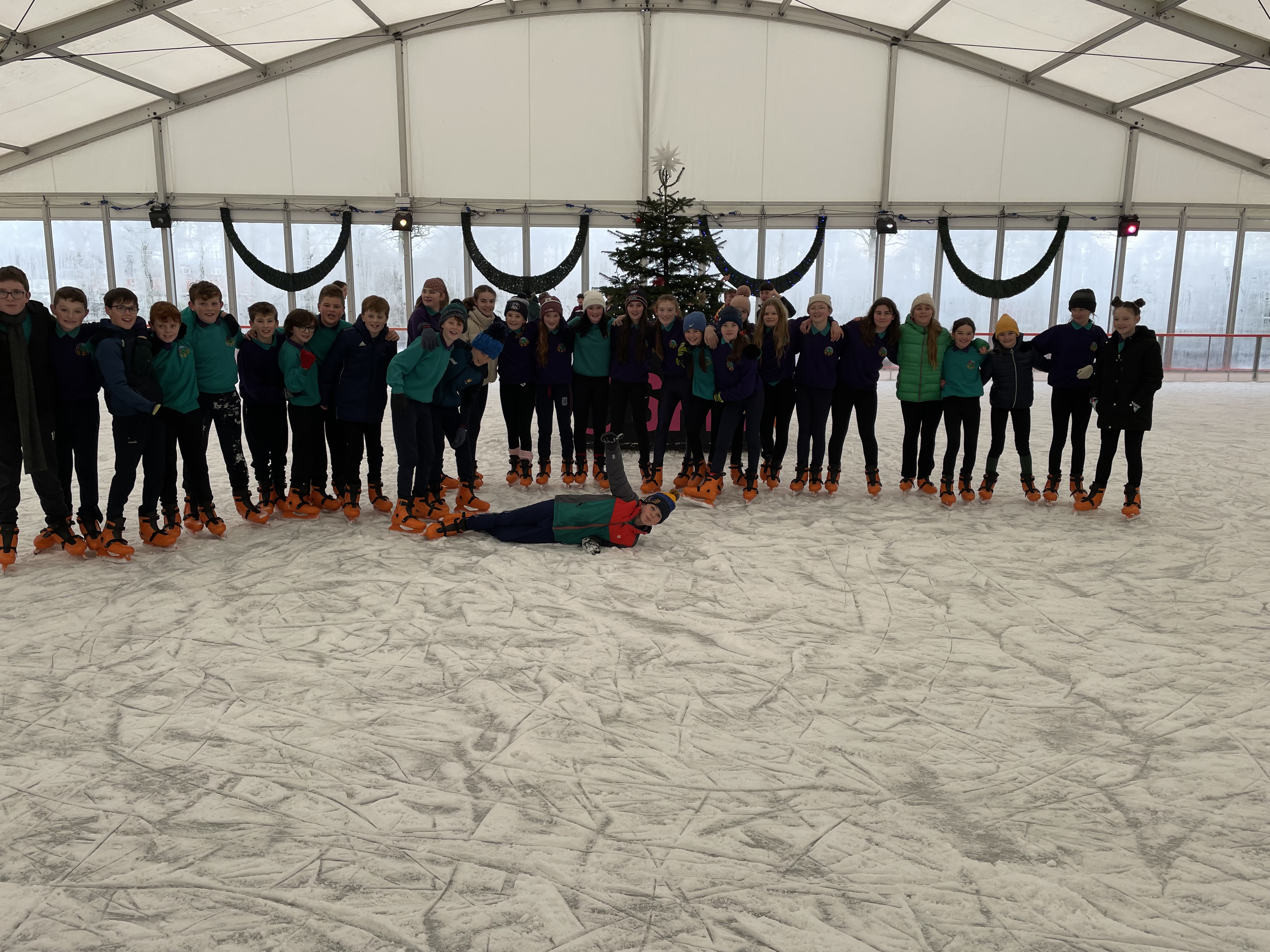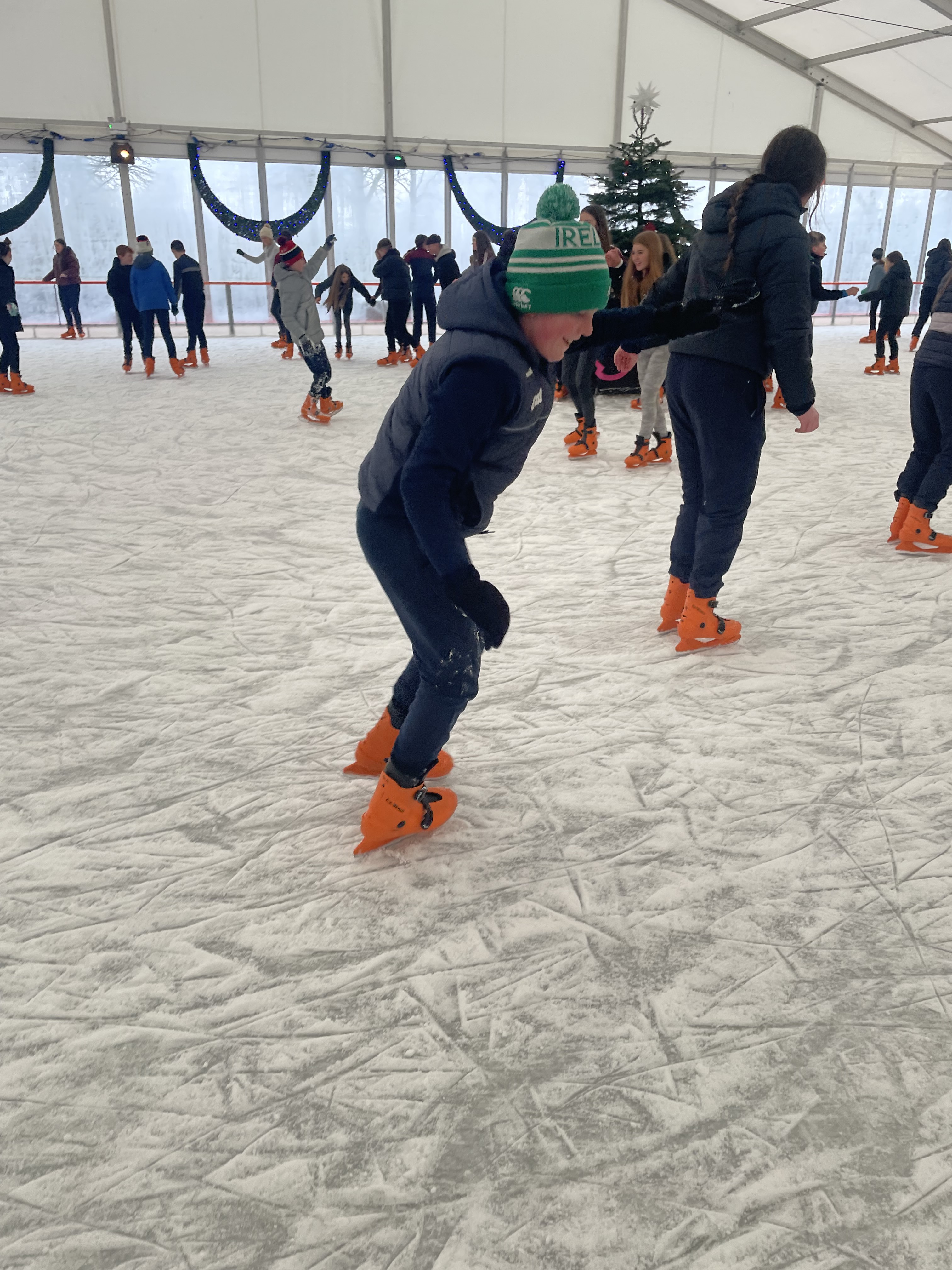 Ice Skating: On 13th Dec 6th class went ice skating in Limerick. We left at 9.45 am and arrived at 10.30 am. We got there early so we could have a snack before we put on our slates. When we first went on the ice it was very slippy! It was also quite cold, so we wrapped up in warm clothes. We were allowed on the ice rink for an hour before we had a snack and headed back on the bus. Most of us fell a few times, but we got back up again. We had lots of fun! On the way home we were surprised with a visit to Newmarket on Fergus playground. We played hide and seek in the playground. We really enjoyed our day out.