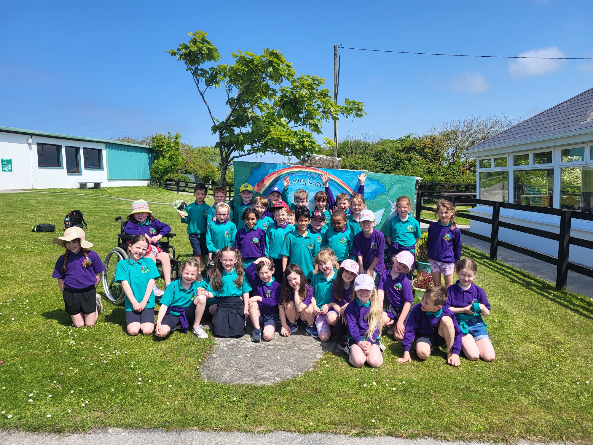On Thursday the 23rd of June Sixth Class went on their school trip to Inis Oirr. We had been looking forward to it for ages. We all met at Doolin Pier at 10 o clock in the morning and got on the boat, checking in at the hostel on the island at 10.30. Mr Curran, Mary, Mr O Reilly, Edel, Colm and Ewelina all came with us. The weather was beautiful on the first day and we were allowed our own bit of freedom initially to explore around where we were staying. Then we went swimming at the beach, it was good fun but that water was freezing. Mr Curran, Mr O Reilly and Colm were brave and jumped in too, much to our surprise. That night Saoirse cooked us a delicious chicken curry and afterwards, we went to a céilí at the Irish College. We were dancing for about an hour and all the instructions were in Irish, so we had great fun speaking Irish to each other. We walked down to the Plassy Shipwreck at about 11pm, built a bonfire and had yummy smores. After that, we went back to the hostel, but we could barely sleep with excitement as it was like being on the biggest sleepover ever with all of our friends.