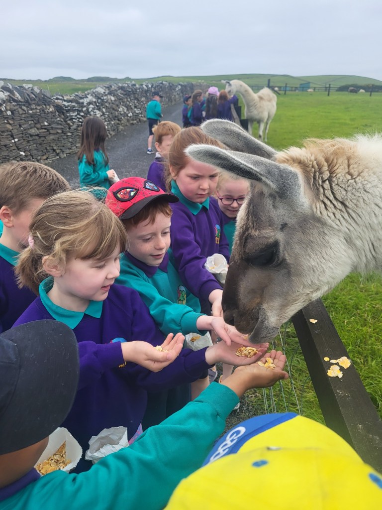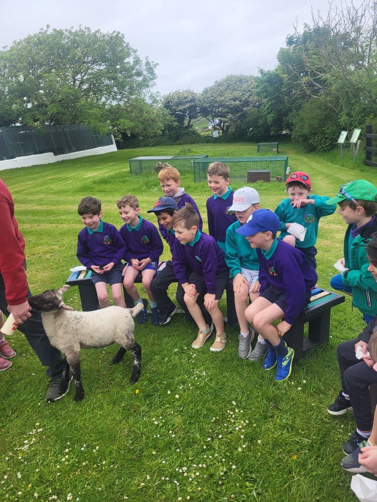 On Wednesday the 24th of May senior infants went on their school tour to Moher Hill Farm. We left first thing in the morning on the bus. We were so excited. When we arrived there we met a man who gave us food to feed the animals. We all got one bag of animal food each.