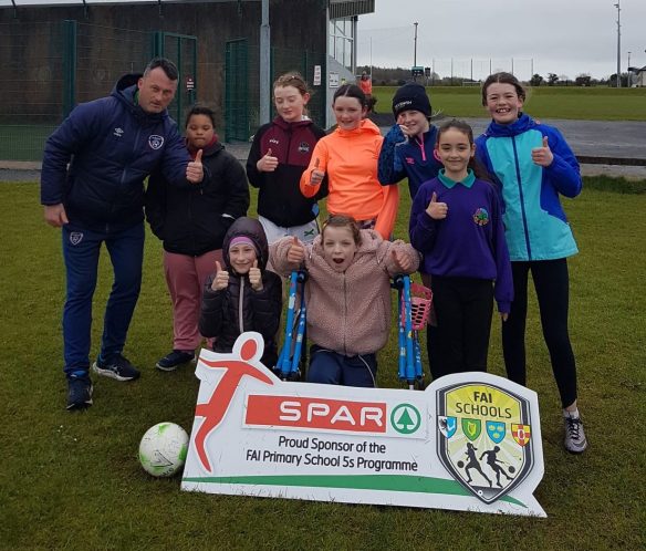 On Mon April 4th classes from 3rd to 6th went to Gurteen for a blitz. Colm made up teams of 5 or 6 mixed between all the classes from 3rd to 6th. There were girl’s teams and boy’s teams. The teams were divided into groups and each team played the other once in the group stages. The four teams that had the most points got through to the semi-final and then the winners played the final. Denis Hynes from the FAI was there for the full day. O’ Keeffes kindly sponsored refreshments such as water, crisps, bananas and biscuits and importantly the teachers got coffee! Overall we had a really great day.
